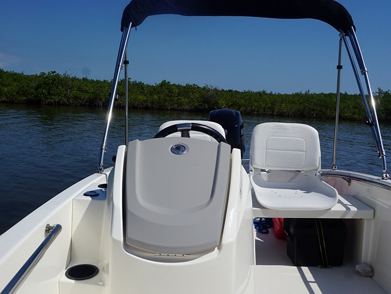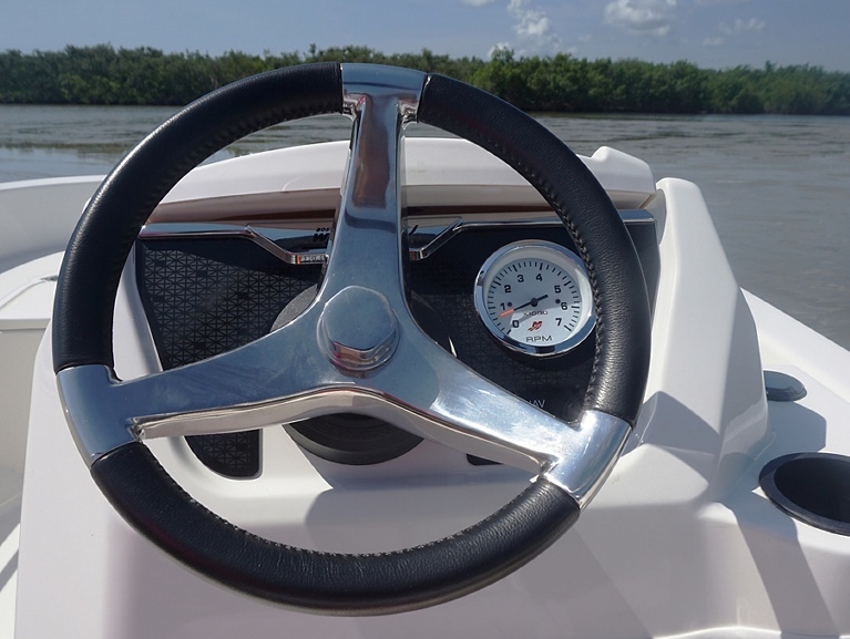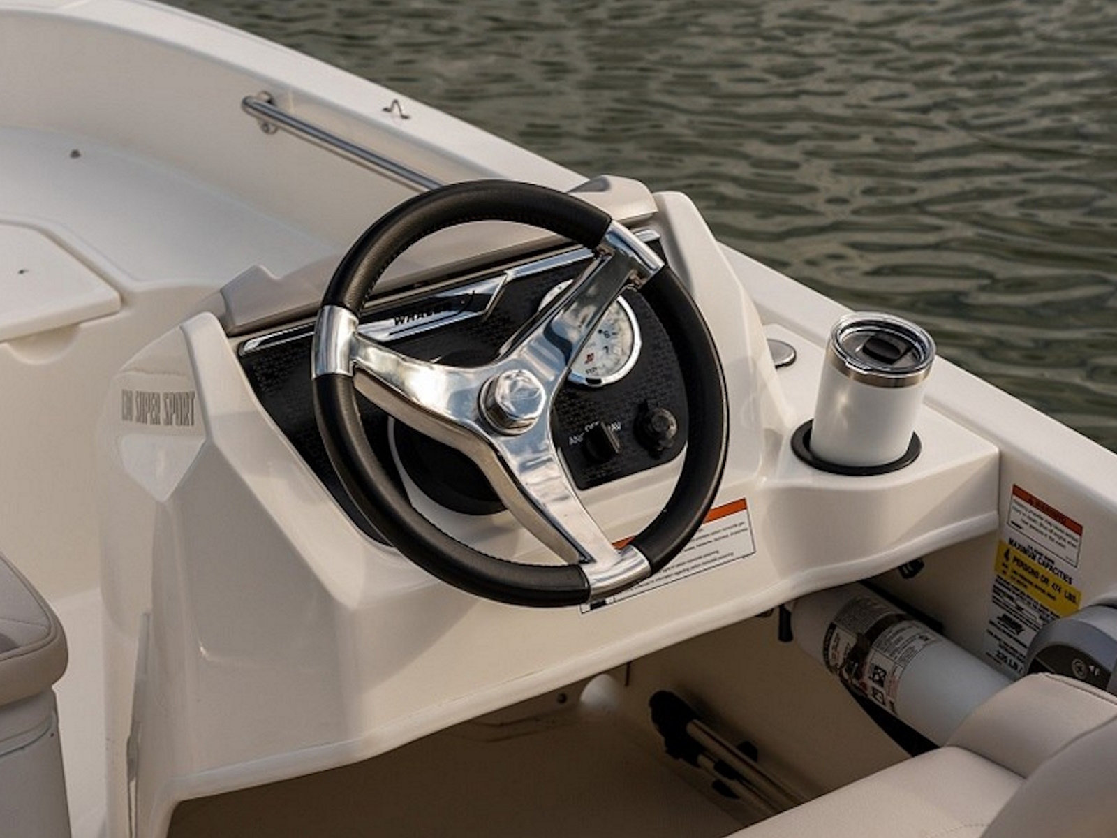 - Stainless-steel side rails, steering wheel, and cleats lend style and durability