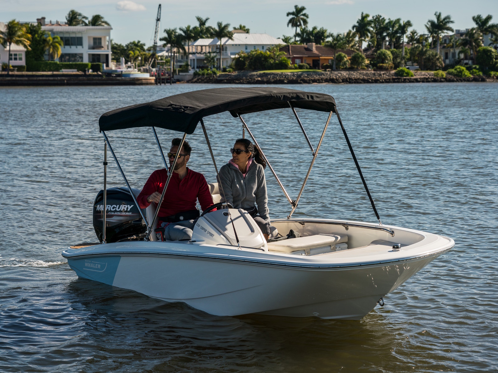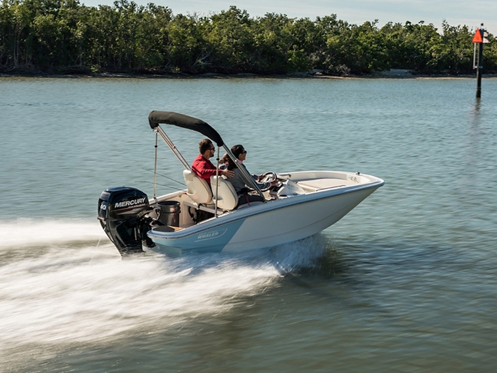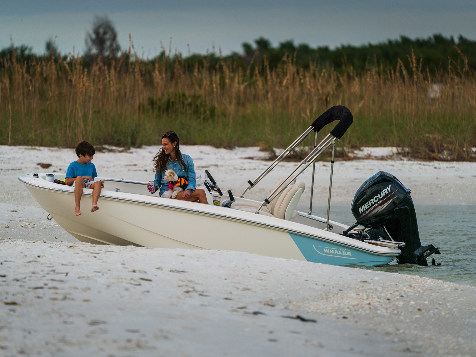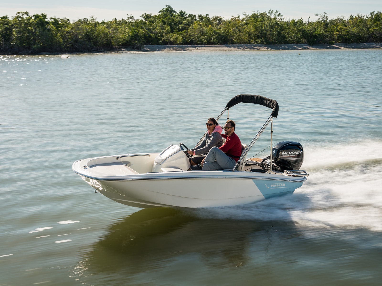 The most compact Whaler is nimble, shallow-drafting, and safe, making it perfect as a canal runner, big boat tender, or inshore fishing boat. This 13-ft. boat is thoughtfully appointed with lockable, water-resistant bow storage, and aft swim platforms. Choose from six seating configurations, add an optional sun top, and enjoy watersports, cruising, fishing, or just relaxing. The low-maintenance, easy-to-own 130 Super Sport boat is reliable, user-friendly and stylish—and above all, lots of fun for everyone.