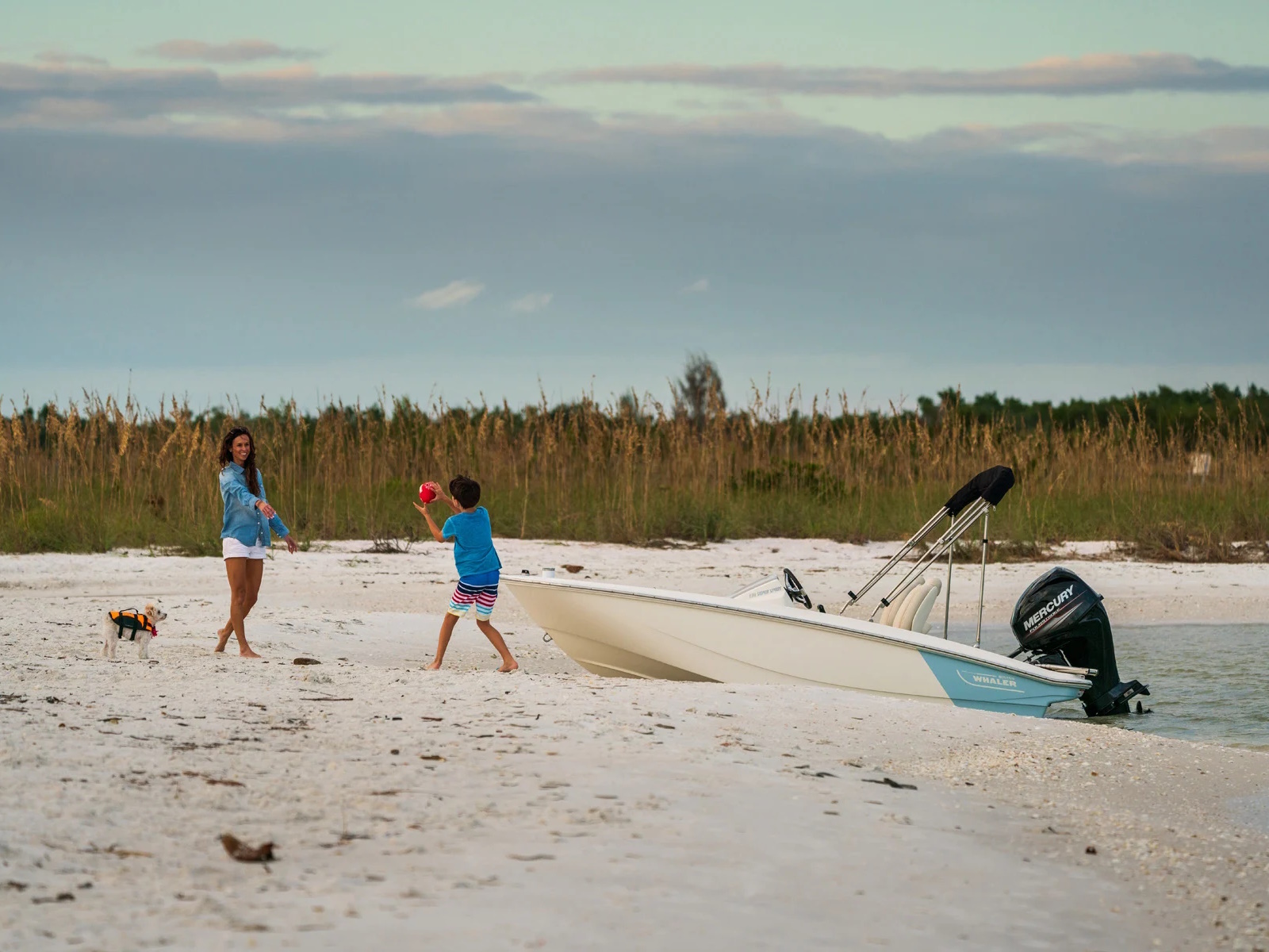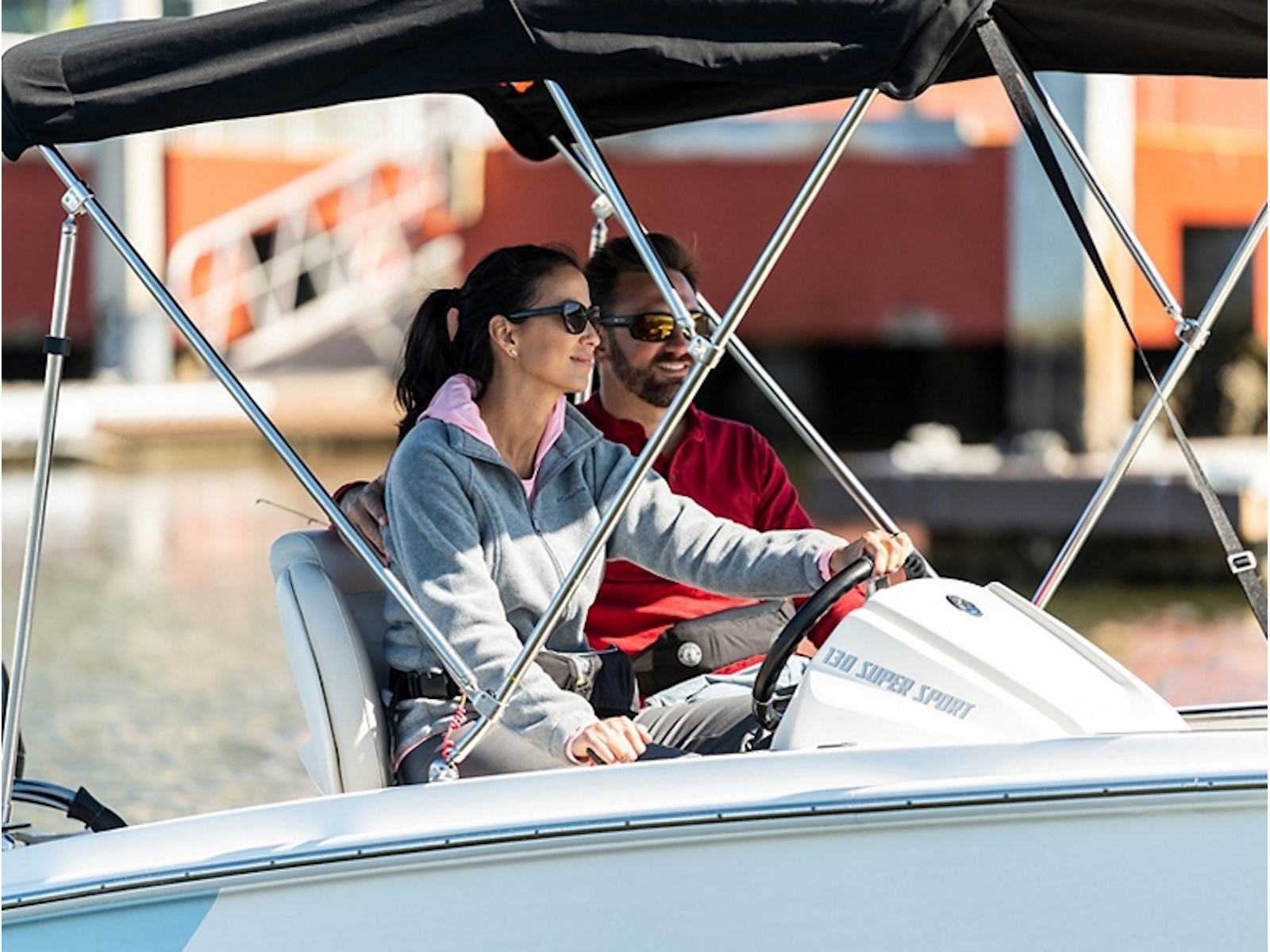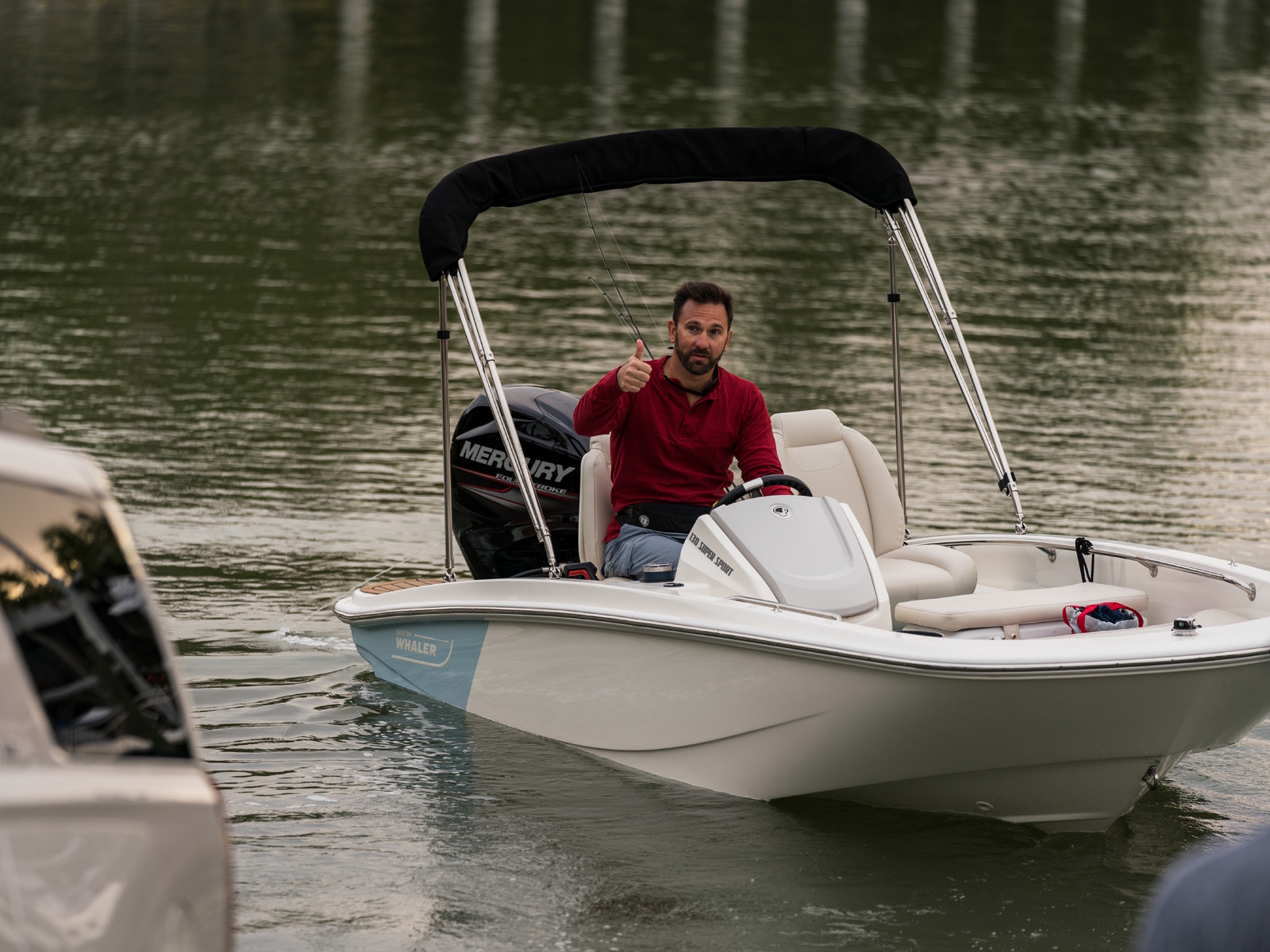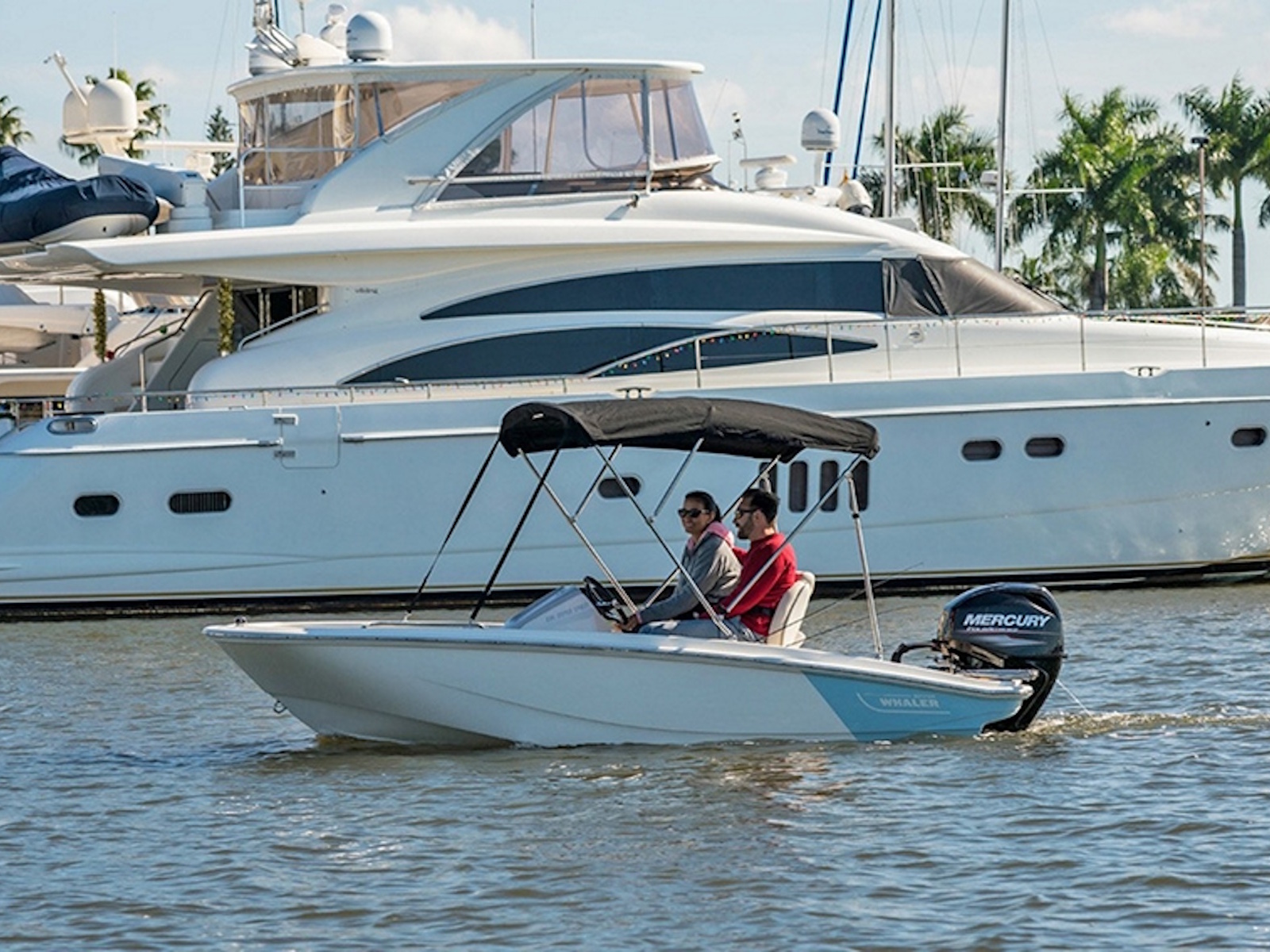 The most compact Whaler is nimble, shallow-drafting, and safe, making it perfect as a canal runner, big boat tender, or inshore fishing boat. This 13-ft. boat is thoughtfully appointed with lockable, water-resistant bow storage, and aft swim platforms. Choose from six seating configurations, add an optional sun top, and enjoy watersports, cruising, fishing, or just relaxing. The low-maintenance, easy-to-own 130 Super Sport boat is reliable, user-friendly and stylish—and above all, lots of fun for everyone.
