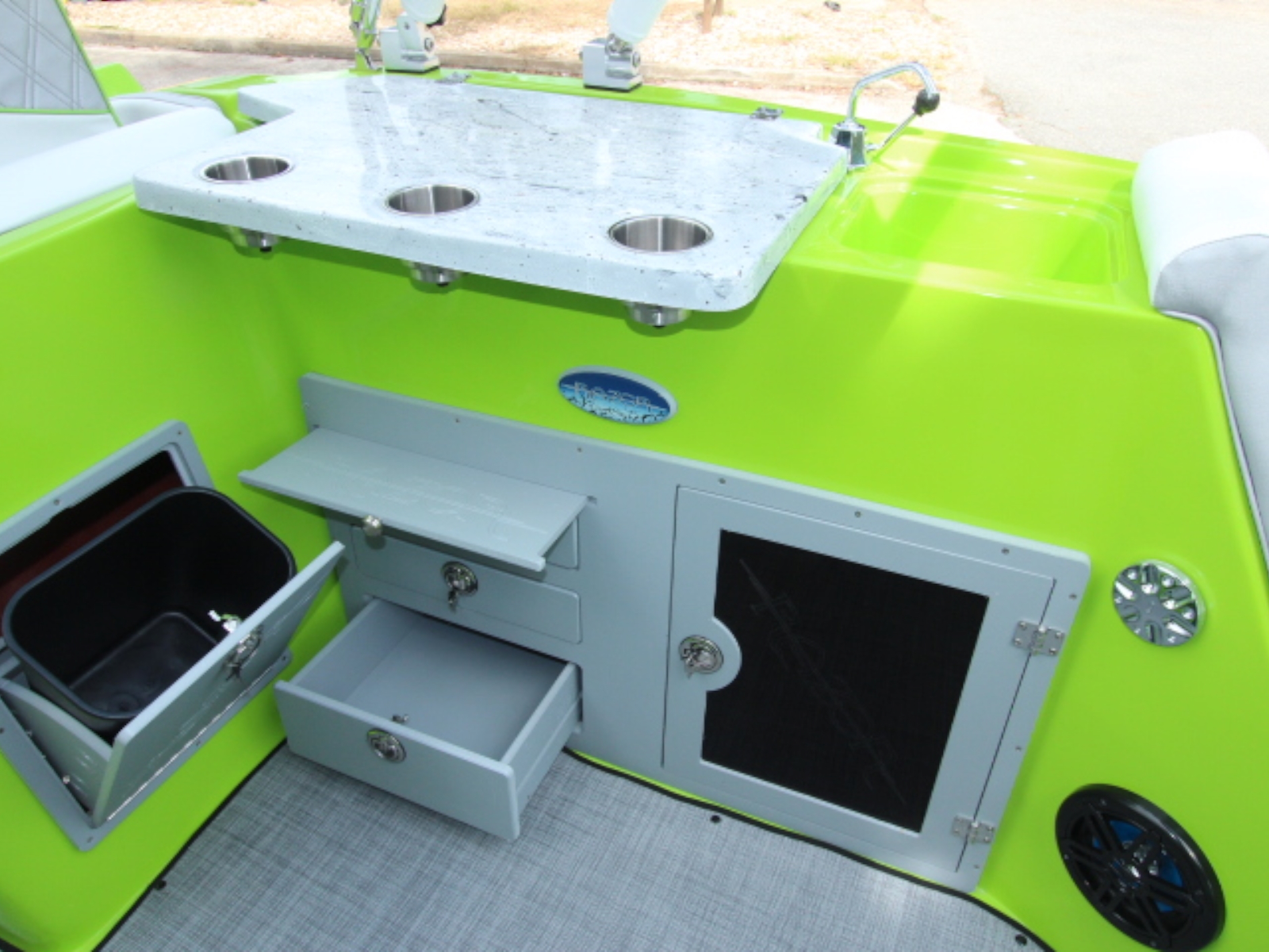 The ultimate deck boat experience, Razors have unique features for fun on the water like kitchens, diving boards, and more!