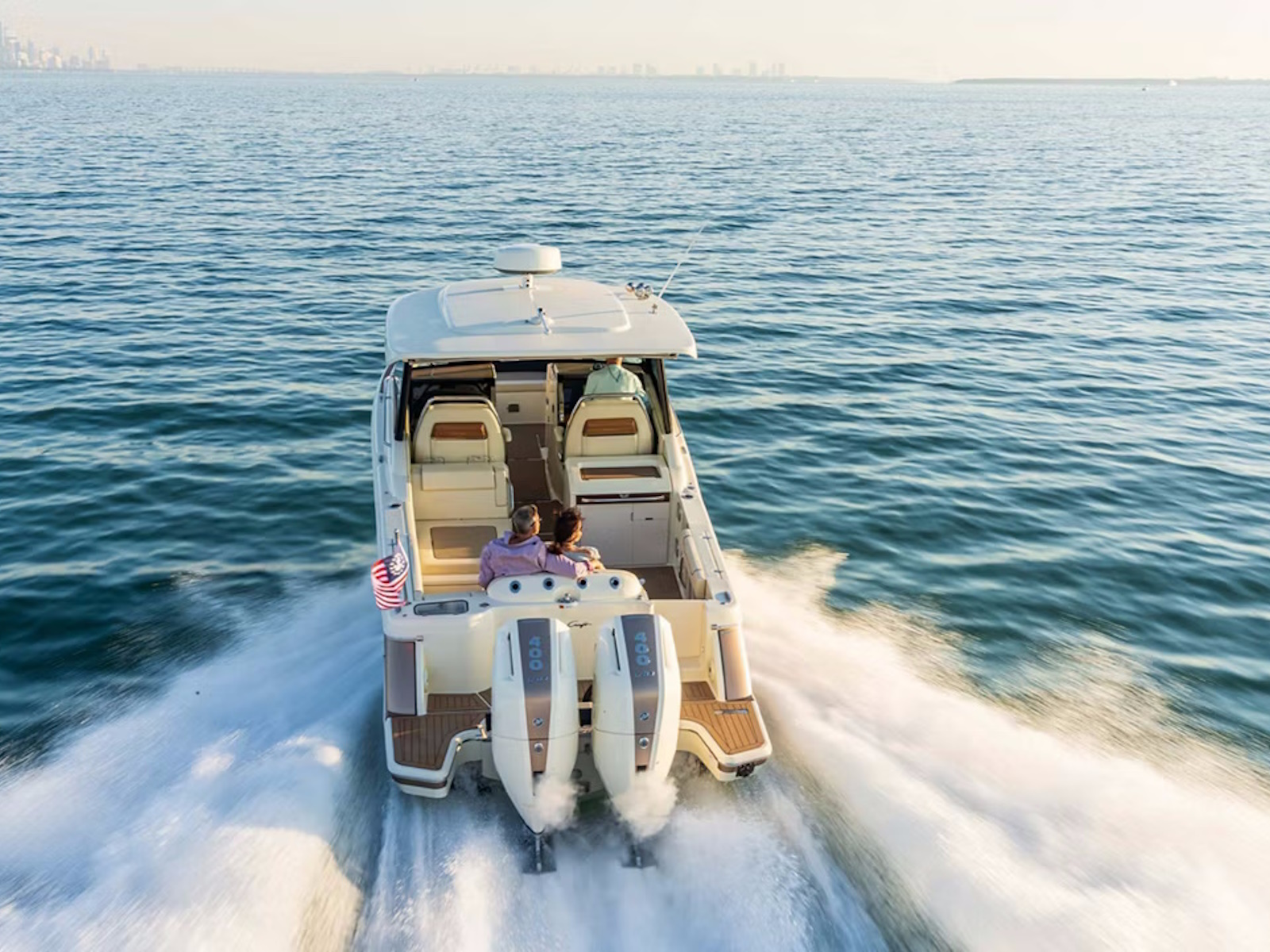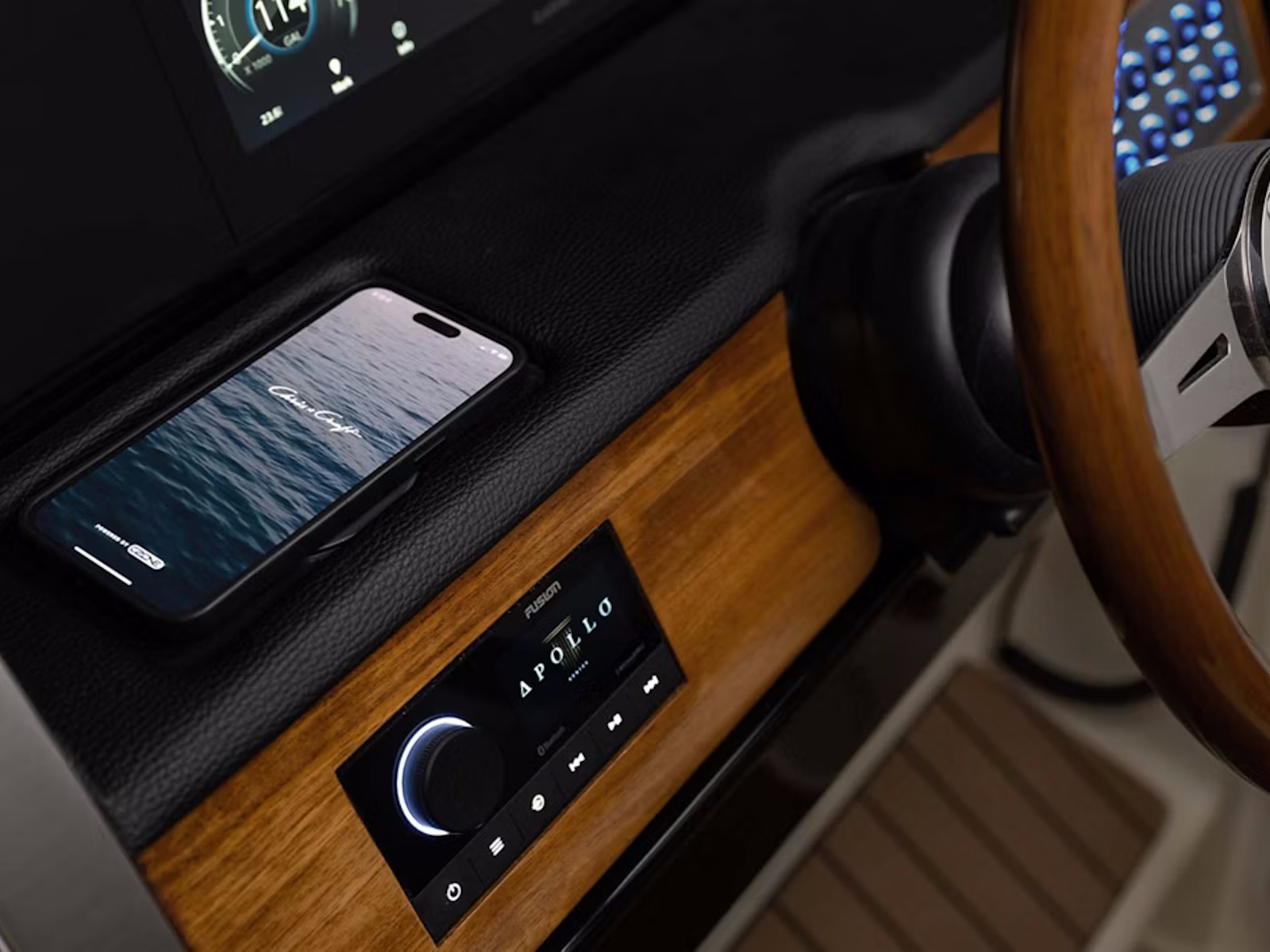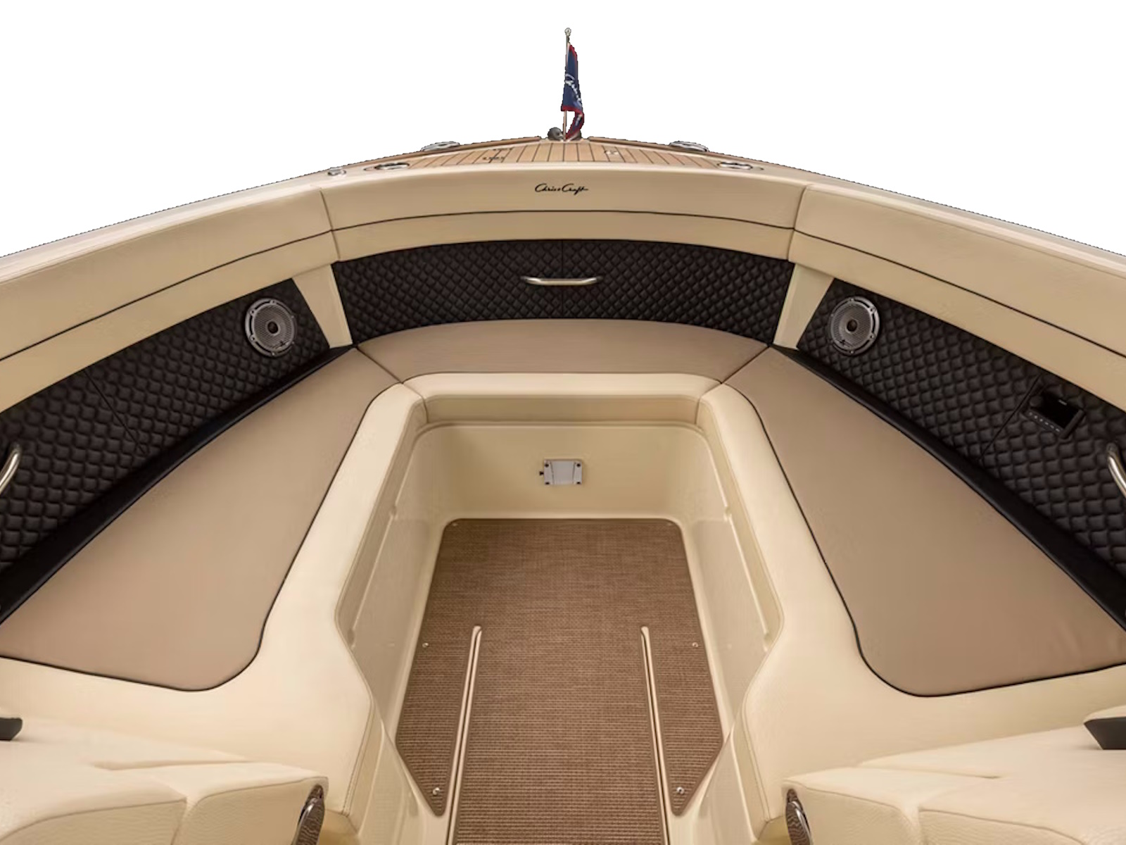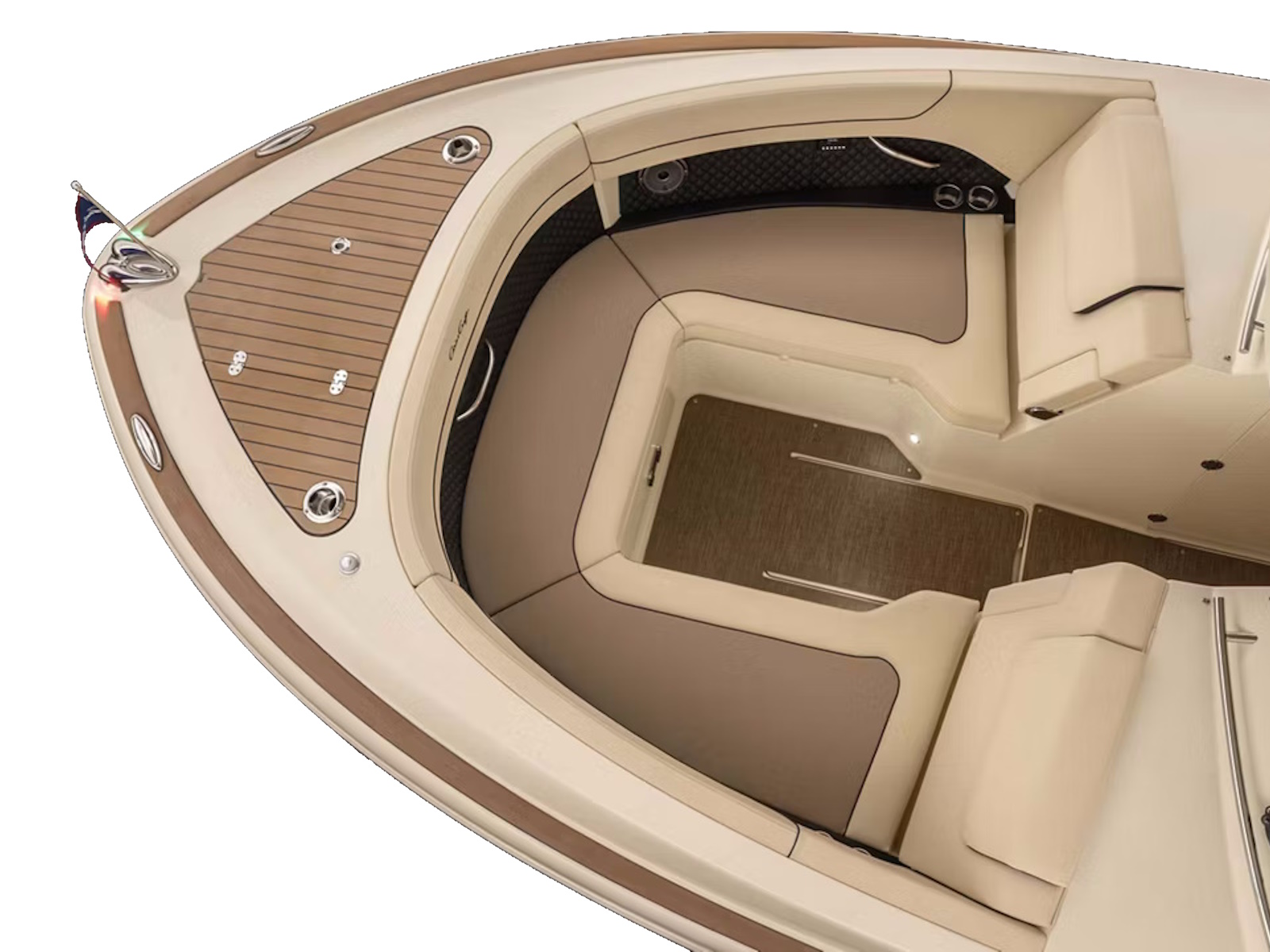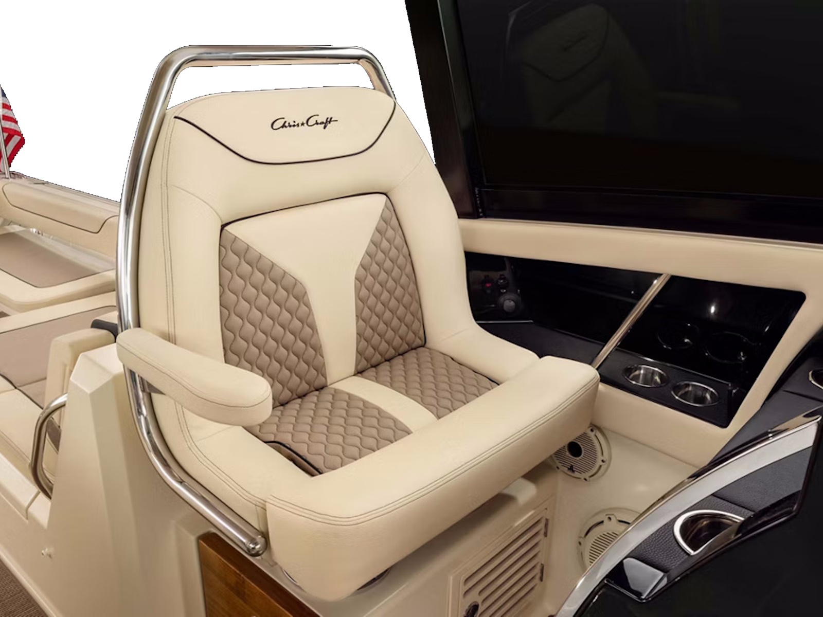 The Calypso 32 blends sophistication and style with the latest marine technology. Classic Chris-Craft styling runs from bow to stern, with stainless steel hardware, custom appointments, and our signature flared bow and deep-v hull. With Seakeeper Ride technology, inductive phone charging, and connectivity to the MyChris-Craft App all standard, this is truly a boat to marvel.