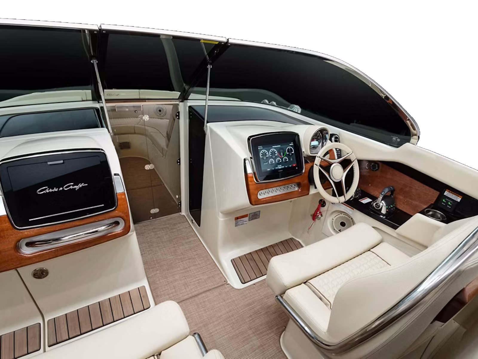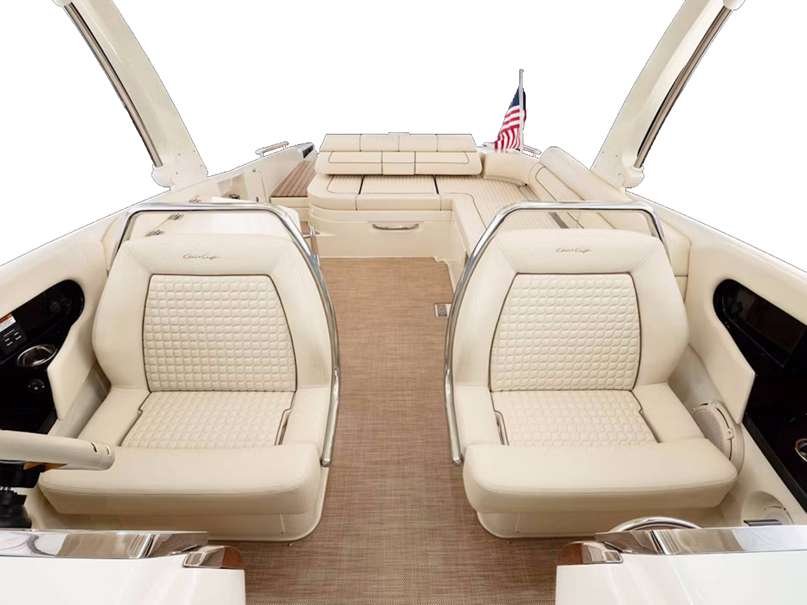 Every piece of Chris-Craft upholstery provides the comfort of thick, high-density, quick-drying foam wrapped in the industry’s finest marine vinyl. From the reclined bow loungers to the roomy captain’s chairs and the convertible aft sunpad, every seat encourages relaxation.