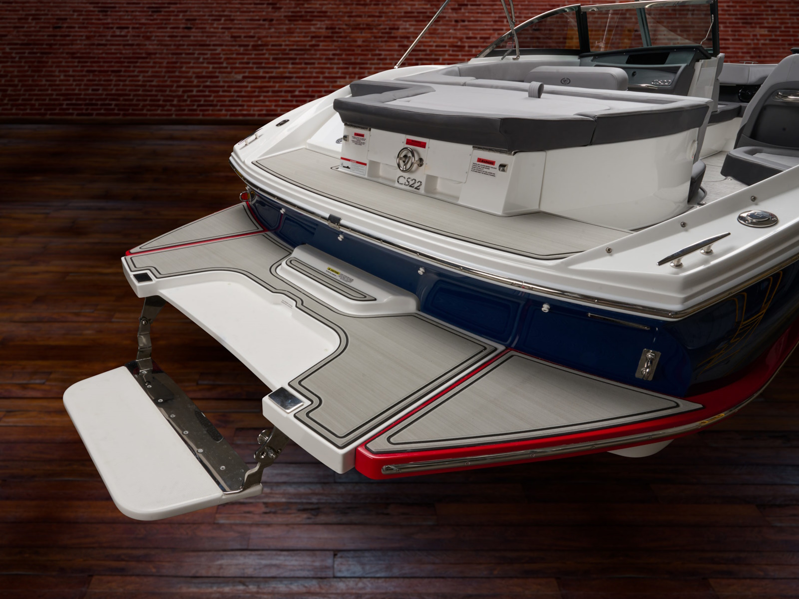The CS22’s low-profile design delivers an unparalleled boating experience. Featuring an island sun lounge, wrap-around swim platform extensions, and a full boarding step, the CS22 delivers head-turning style and exciting performance for a standout ride on the water.