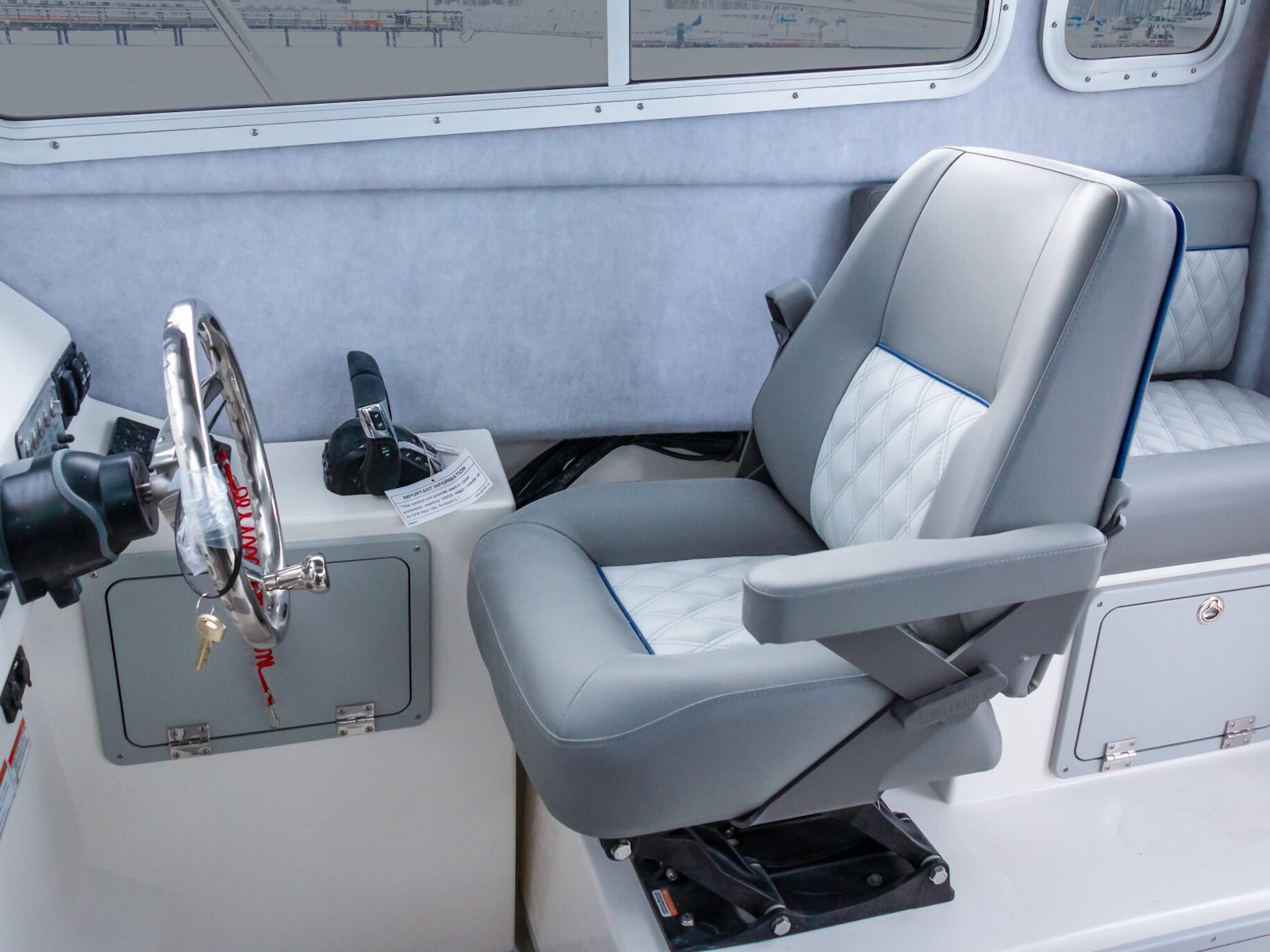 The 250 Admiral offers comfortable fishability for 5 adults and comfortable seating for 5 adults.