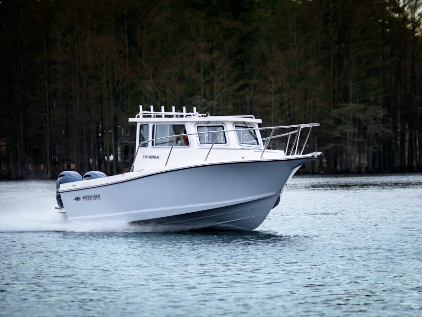The 250 Admiral offers comfortable fishability for 5 adults and comfortable seating for 5 adults.