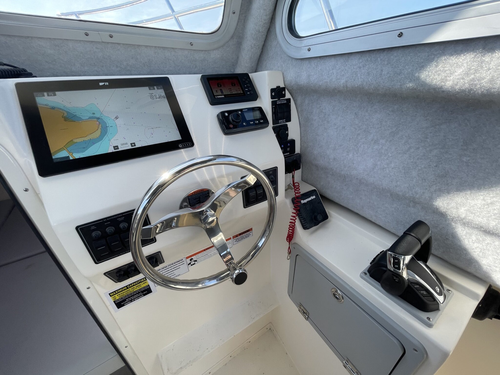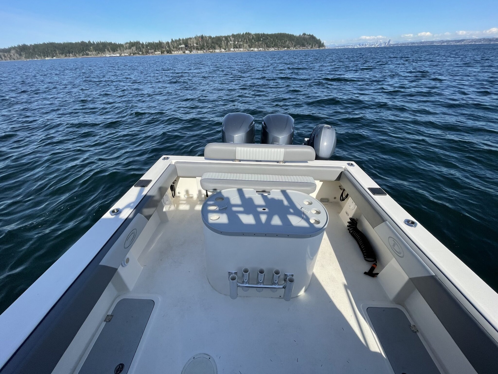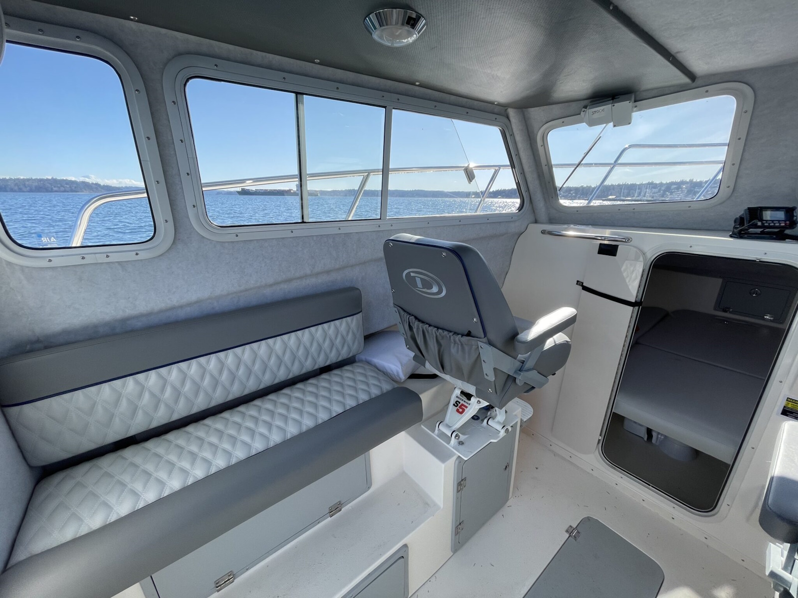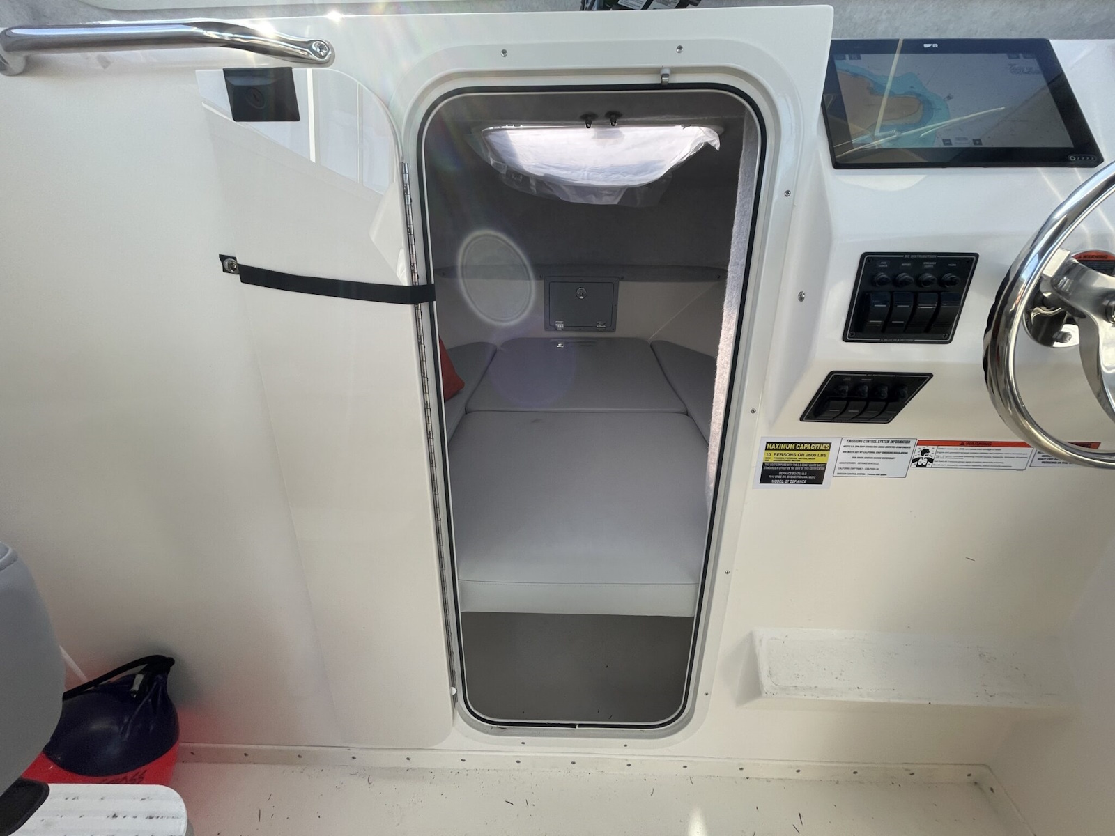 The 270 Admiral comes standard with 3 insulated in-deck fish boxes,enough cabin for an entire crew,and a large V-Berth for a comfortable overnight stay.