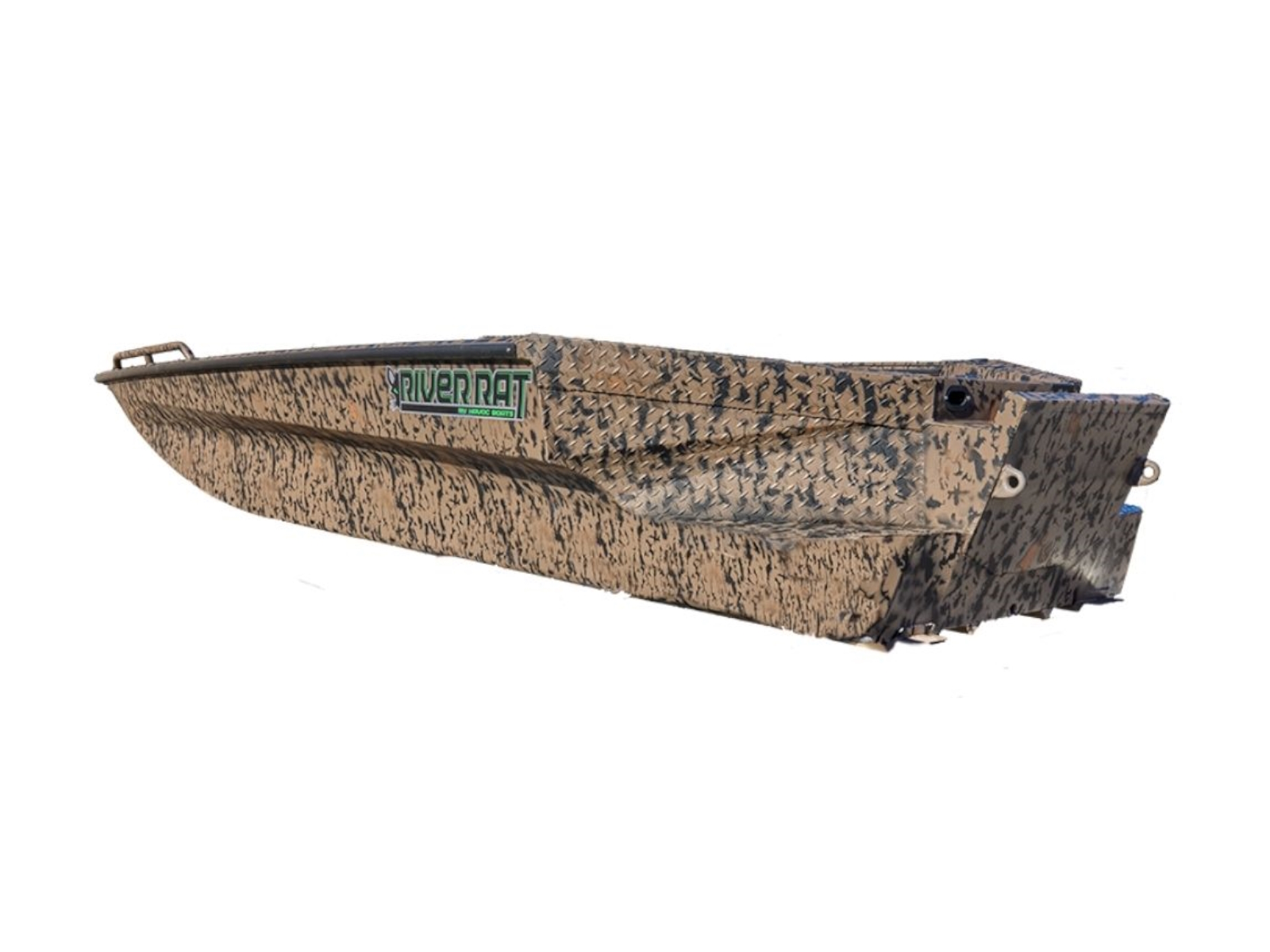 The flat nose River Rat is built for navigating river channels and handling shallow water with ease. The FRRST includes a step transom for better rear flotation and added convenience for stepping in and out of the boat from the water – plus it moves the motor to the outside of the floorplan, giving you more surface on the rear deck to use as a fishing platform. The flat bottom hull is built for a jet motor as well as a prop motor. As you would expect, we’ve considered every detail when it comes to strength and performance. The foundation of the FRRST includes our I-Beam longitudinal ribs for superior support between the keels, diamond-plate aluminum floor, and the overbuilt design goes all the way up to the heavy duty T-Lock gunnel rails. This heavy-duty River Rat is built to handle rock bottom rivers and support larger motor sizes.
