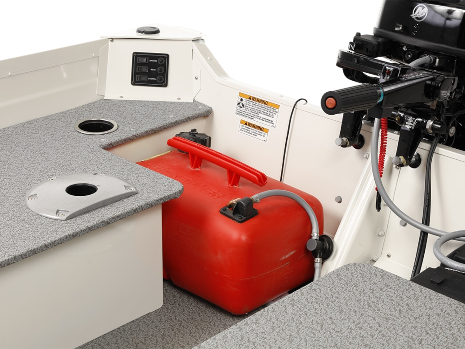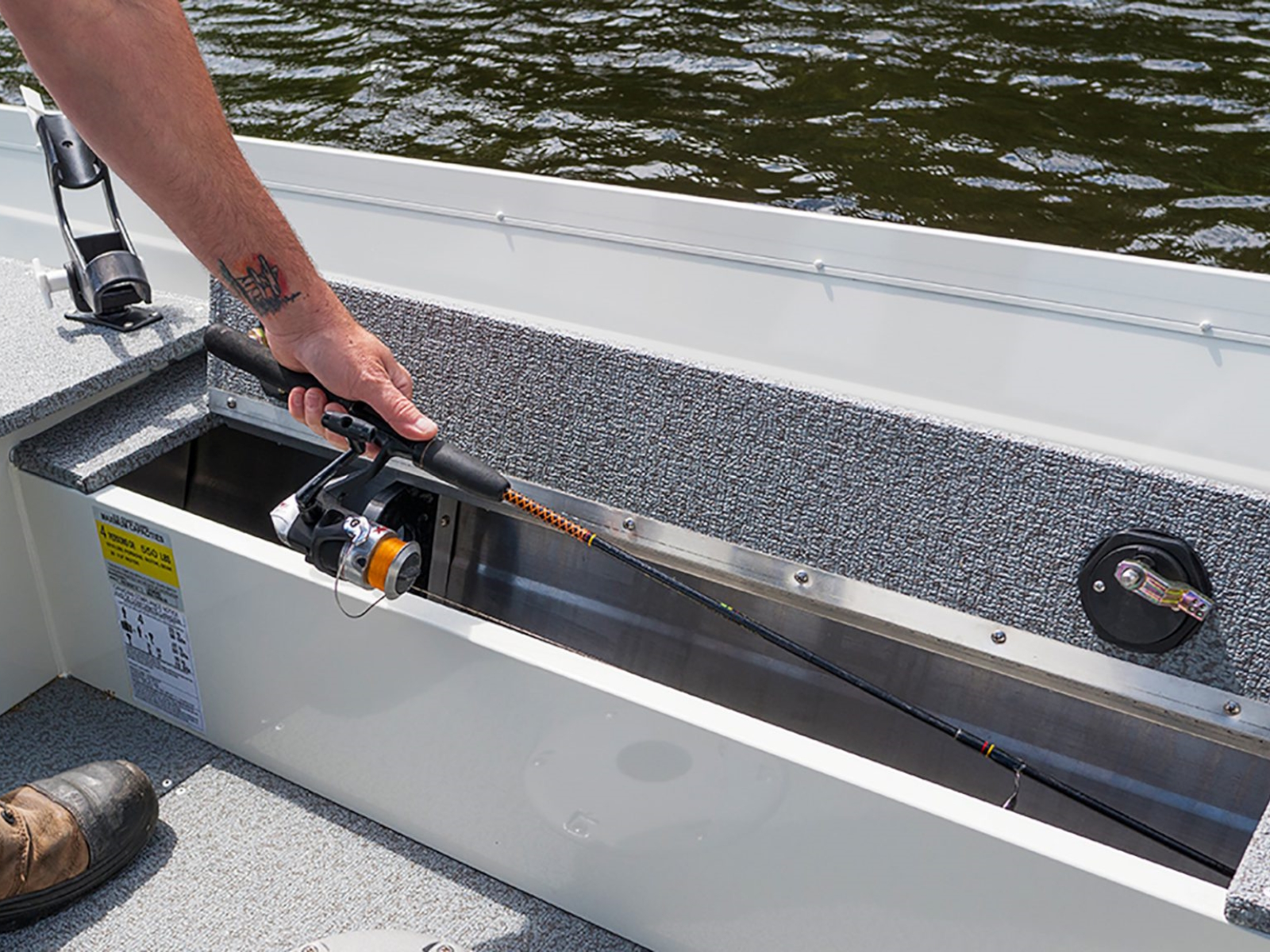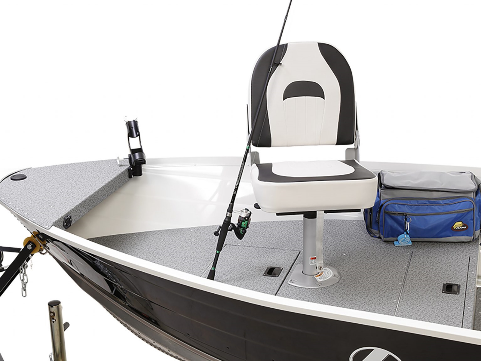 The 14 ProSport has everything you need: a lockable rod box, a big livewell, a huge front casting deck with storage and the vinyl interior makes it easy to keep clean. And, with this boat, you never have to jump over benches again! It makes fishin’ easy.