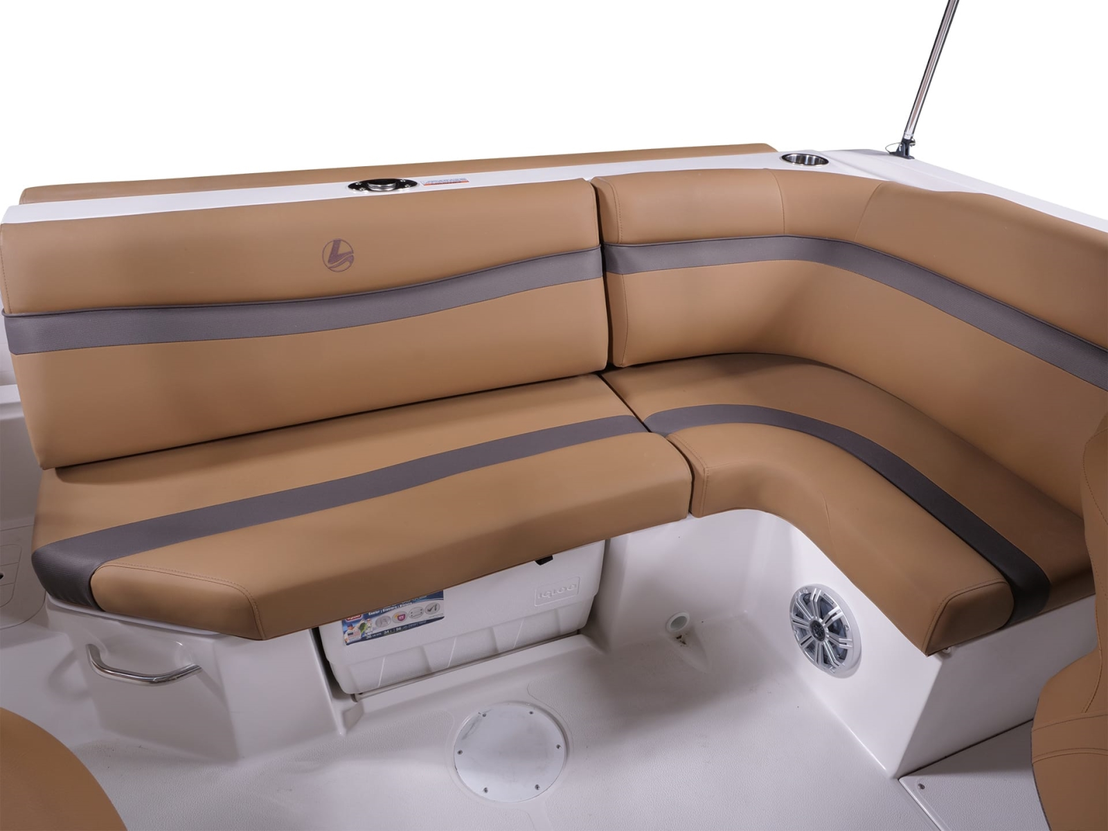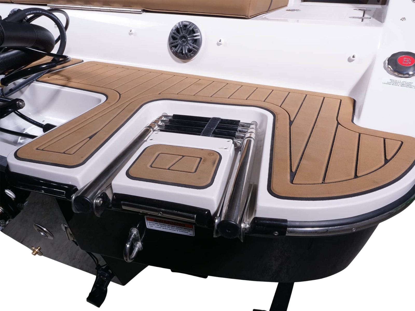 Climb aboard the elegant and sporty Vibe D23. From a premium console, full windshield, bow chaise lounge-style seating and unlimited storage, rear built-in retractable ski pylon, rear sundeck with swim platform and non-skid mats, this elegant yet sporty deck boat promises for an incredible day on the water.
