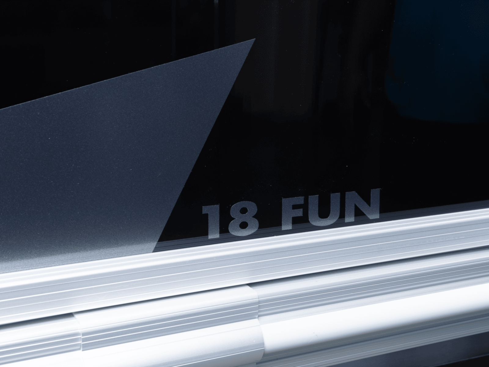 Gain an extra sofa, a starboard side door, bulk storage compartment, and an additional 16 square feet of space with the 18 Fun.