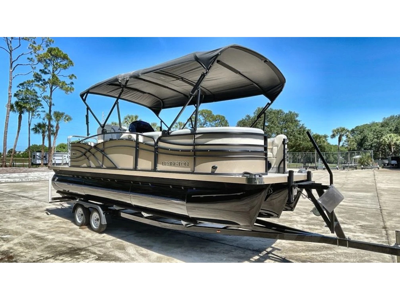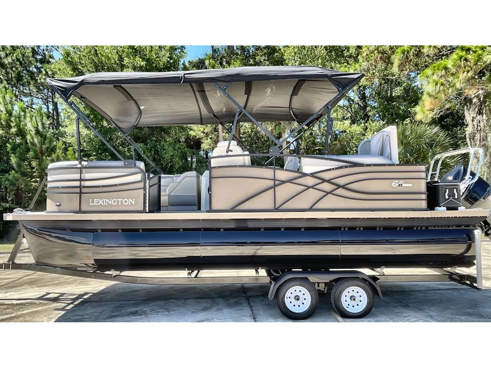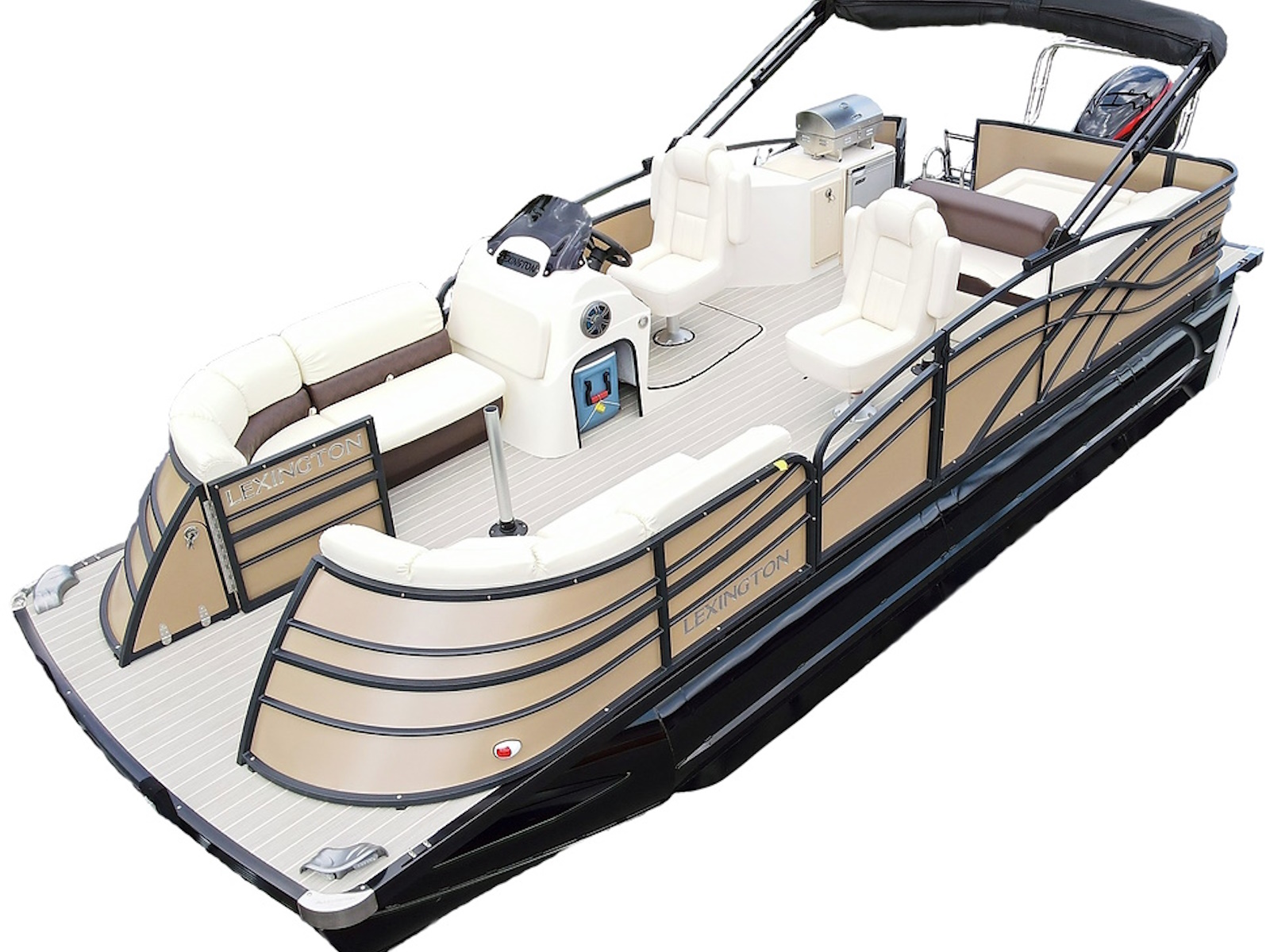 Check out the new 2022 Lexington 621 Super Toon! The all new super toon has 35 inch diameter tubes with dual lifting strakes which makes it faster than typical tri-toons. The huge tubes keep the pontoon higher and dryer than any pontoon on the market today. The 621 Super toon is safer in heavy choppy water, and has a much more substantial ride than a typical Tr-toon!! This 621 Super toon is powered by a 150Hp-200Hp Suzuki, has TWO 10' electric Bimini tops, mooring cover, dual captains chairs, huge ultra-lounge and even a bar with refrigerator! Be the first out on the water with the amazing 621 Lexington Super-Toon today! YOU WILL LOVE IT! This gorgeous vessel is ready for family fun for years to come out on the water, with features including: bow and aft seating with rear sun lounge pad, and under seat storage throughout, onboard grill, co-captain's chair, tables with cup holders, illuminated gauges, Hummingbird GPS, 12v and USB ports, stainless steel swim ladder, ski tow bar, and more- all riding on large diameter High Performance Toons and a Suzuki outboard motor! When you want the best experience in pontoon boating available, you want a Lexington 6 series Pontoon Boat, like the 621! Your family will love relaxing, cruising, and fishing with this vessel. It’s luxurious at an unbeatable price point. Experience all this boat has to offer, like hydraulic steering, premium upholstery and sea weave marine flooring, a high end F/G console, stereo, and so much more, all riding on High Performance 35″ diameter tubes with lifting strakes. For the greatest pontoon boating experience you could ever want, choose the Lexington 621.