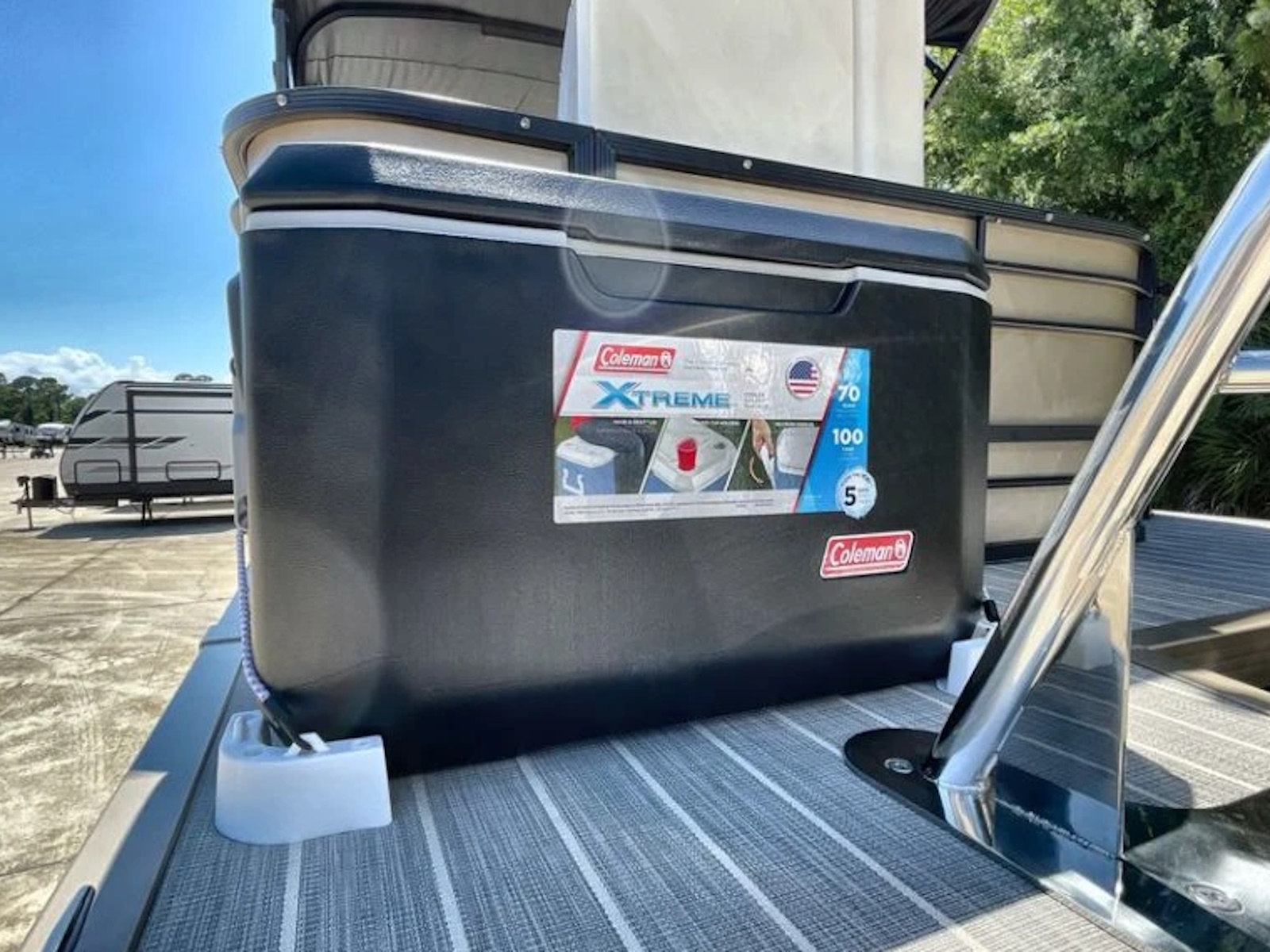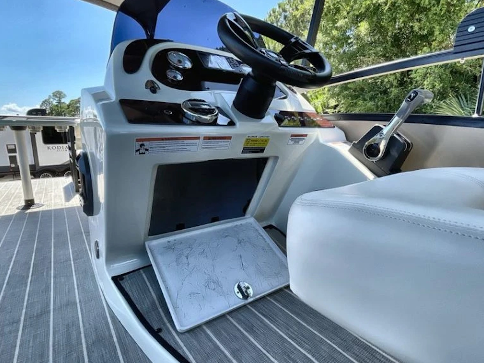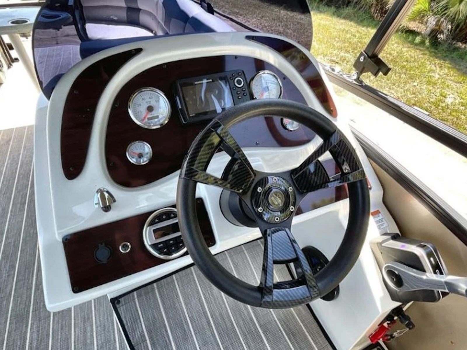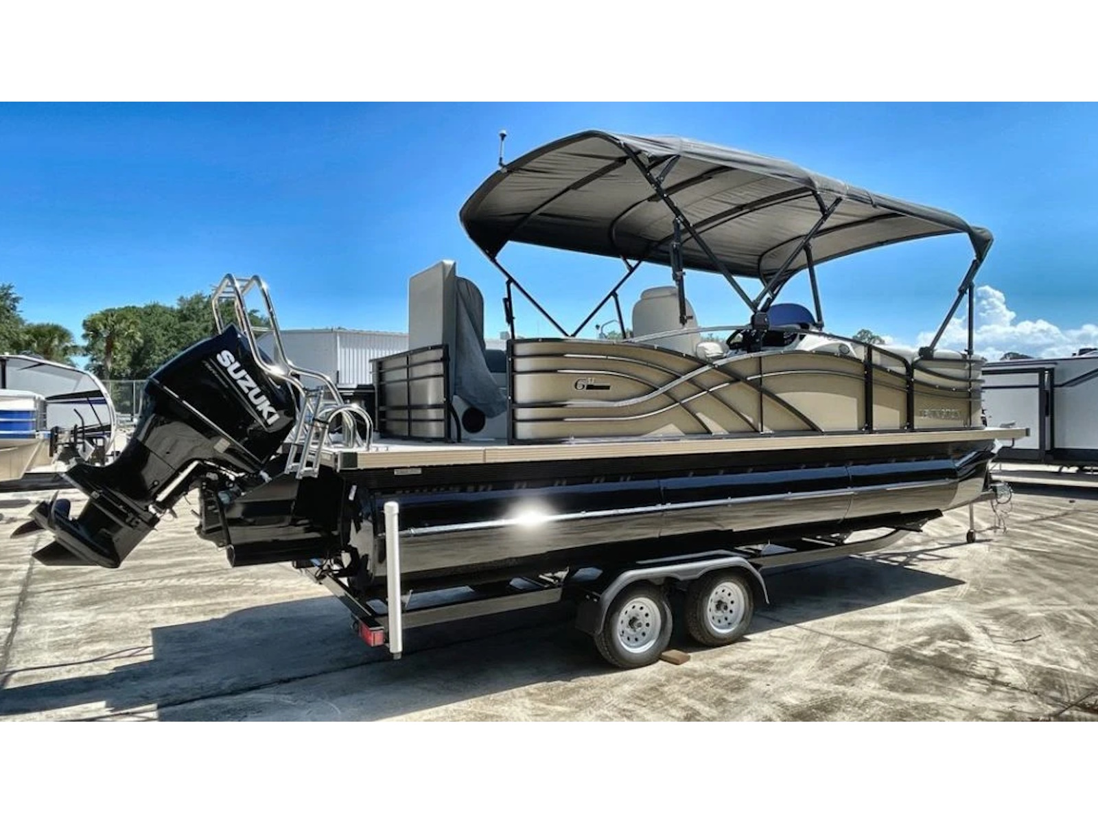 Check out the new 2022 Lexington 621 Super Toon! The all new super toon has 35 inch diameter tubes with dual lifting strakes which makes it faster than typical tri-toons. The huge tubes keep the pontoon higher and dryer than any pontoon on the market today. The 621 Super toon is safer in heavy choppy water, and has a much more substantial ride than a typical Tr-toon!! This 621 Super toon is powered by a 150Hp-200Hp Suzuki, has TWO 10' electric Bimini tops, mooring cover, dual captains chairs, huge ultra-lounge and even a bar with refrigerator! Be the first out on the water with the amazing 621 Lexington Super-Toon today! YOU WILL LOVE IT! This gorgeous vessel is ready for family fun for years to come out on the water, with features including: bow and aft seating with rear sun lounge pad, and under seat storage throughout, onboard grill, co-captain's chair, tables with cup holders, illuminated gauges, Hummingbird GPS, 12v and USB ports, stainless steel swim ladder, ski tow bar, and more- all riding on large diameter High Performance Toons and a Suzuki outboard motor! When you want the best experience in pontoon boating available, you want a Lexington 6 series Pontoon Boat, like the 621! Your family will love relaxing, cruising, and fishing with this vessel. It’s luxurious at an unbeatable price point. Experience all this boat has to offer, like hydraulic steering, premium upholstery and sea weave marine flooring, a high end F/G console, stereo, and so much more, all riding on High Performance 35″ diameter tubes with lifting strakes. For the greatest pontoon boating experience you could ever want, choose the Lexington 621.