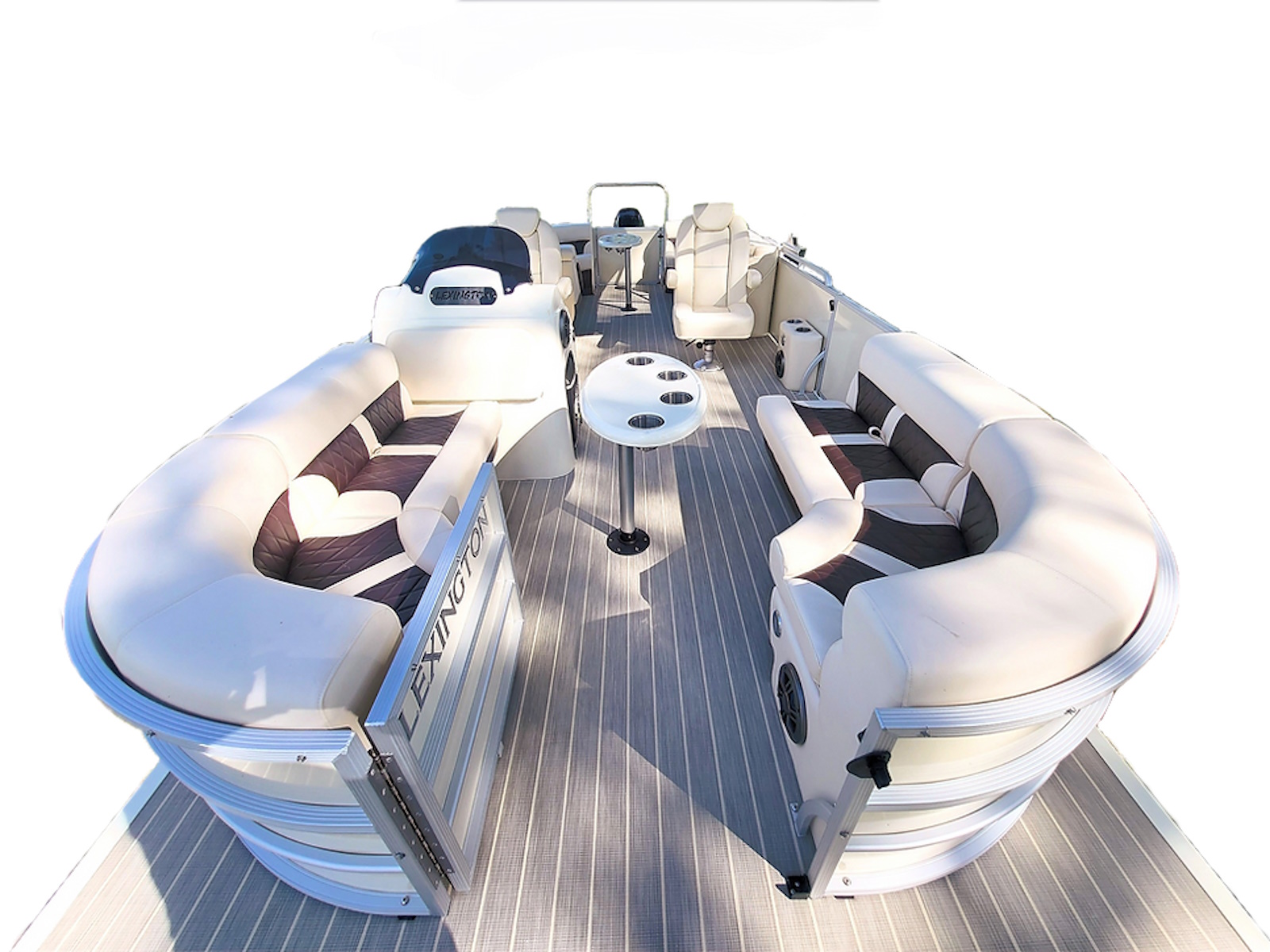 Check out the new 2022 Lexington 621 Super Toon! The all new super toon has 35 inch diameter tubes with dual lifting strakes which makes it faster than typical tri-toons. The huge tubes keep the pontoon higher and dryer than any pontoon on the market today. The 621 Super toon is safer in heavy choppy water, and has a much more substantial ride than a typical Tr-toon!! This 621 Super toon is powered by a 150Hp-200Hp Suzuki, has TWO 10' electric Bimini tops, mooring cover, dual captains chairs, huge ultra-lounge and even a bar with refrigerator! Be the first out on the water with the amazing 621 Lexington Super-Toon today! YOU WILL LOVE IT! This gorgeous vessel is ready for family fun for years to come out on the water, with features including: bow and aft seating with rear sun lounge pad, and under seat storage throughout, onboard grill, co-captain's chair, tables with cup holders, illuminated gauges, Hummingbird GPS, 12v and USB ports, stainless steel swim ladder, ski tow bar, and more- all riding on large diameter High Performance Toons and a Suzuki outboard motor! When you want the best experience in pontoon boating available, you want a Lexington 6 series Pontoon Boat, like the 621! Your family will love relaxing, cruising, and fishing with this vessel. It’s luxurious at an unbeatable price point. Experience all this boat has to offer, like hydraulic steering, premium upholstery and sea weave marine flooring, a high end F/G console, stereo, and so much more, all riding on High Performance 35″ diameter tubes with lifting strakes. For the greatest pontoon boating experience you could ever want, choose the Lexington 621.