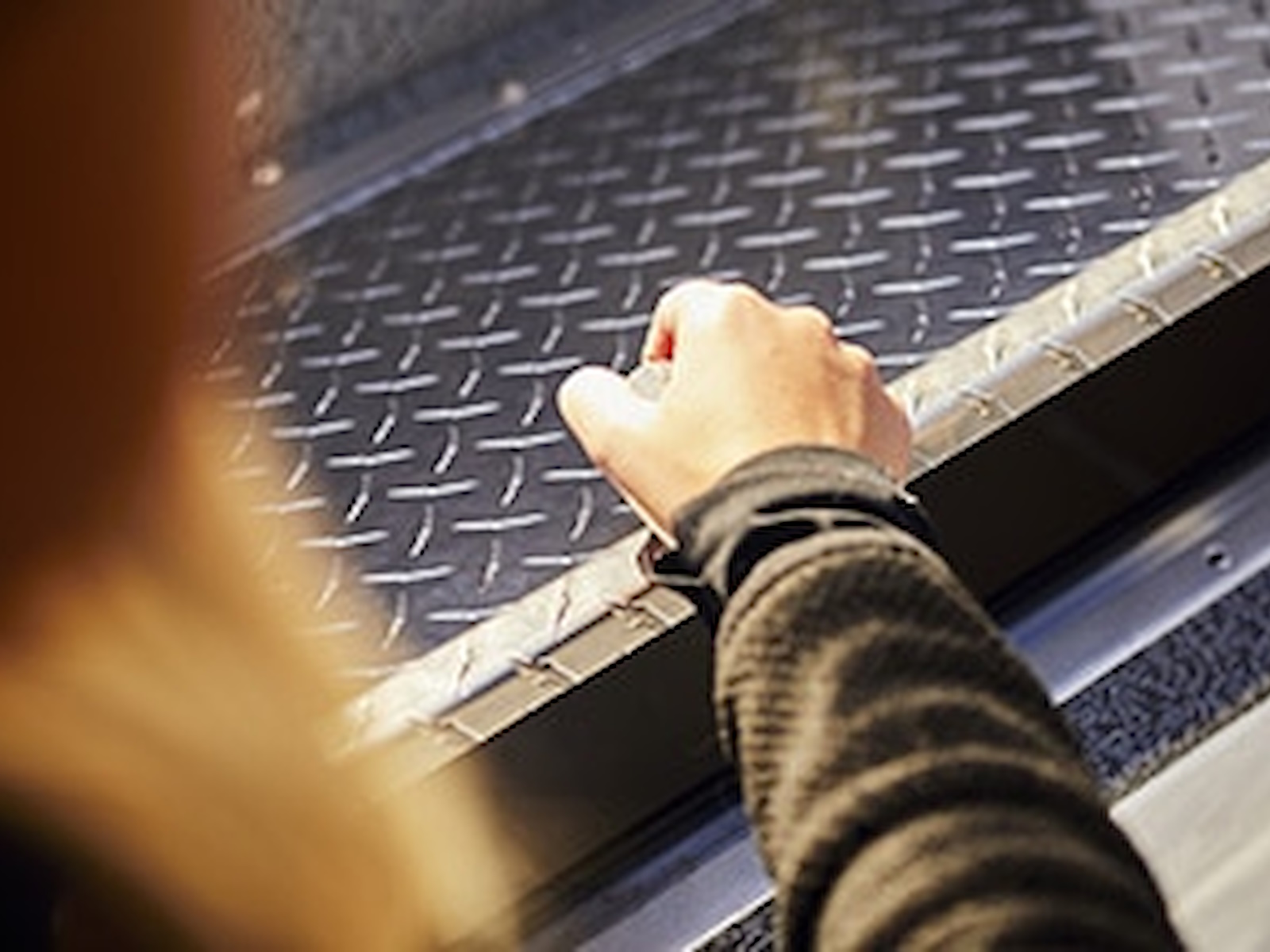 - Gray carpeted side walls and side storage trays