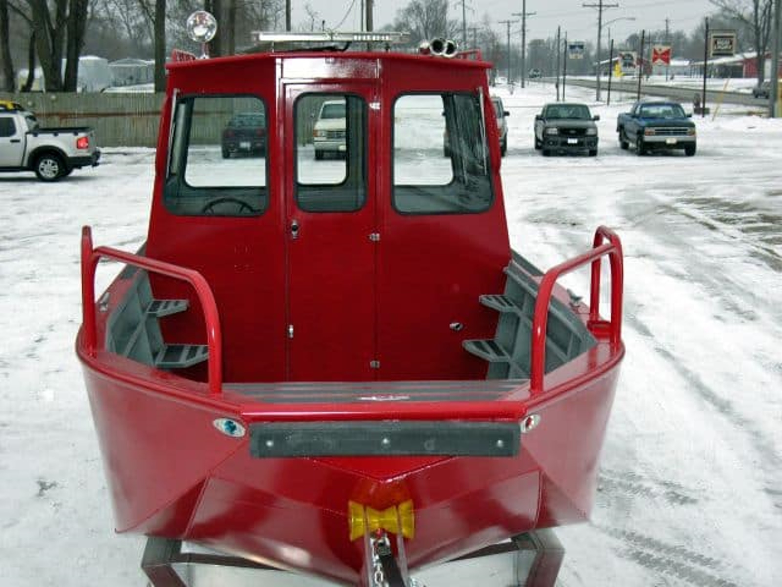 - Option: 6' x 6'6" insulated cabin/ with lockable doors/sliding windows and screens/ 3000 BTU LP heater/dual trumpet horn/search light/motor guard