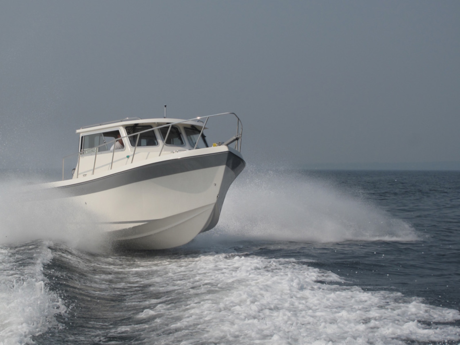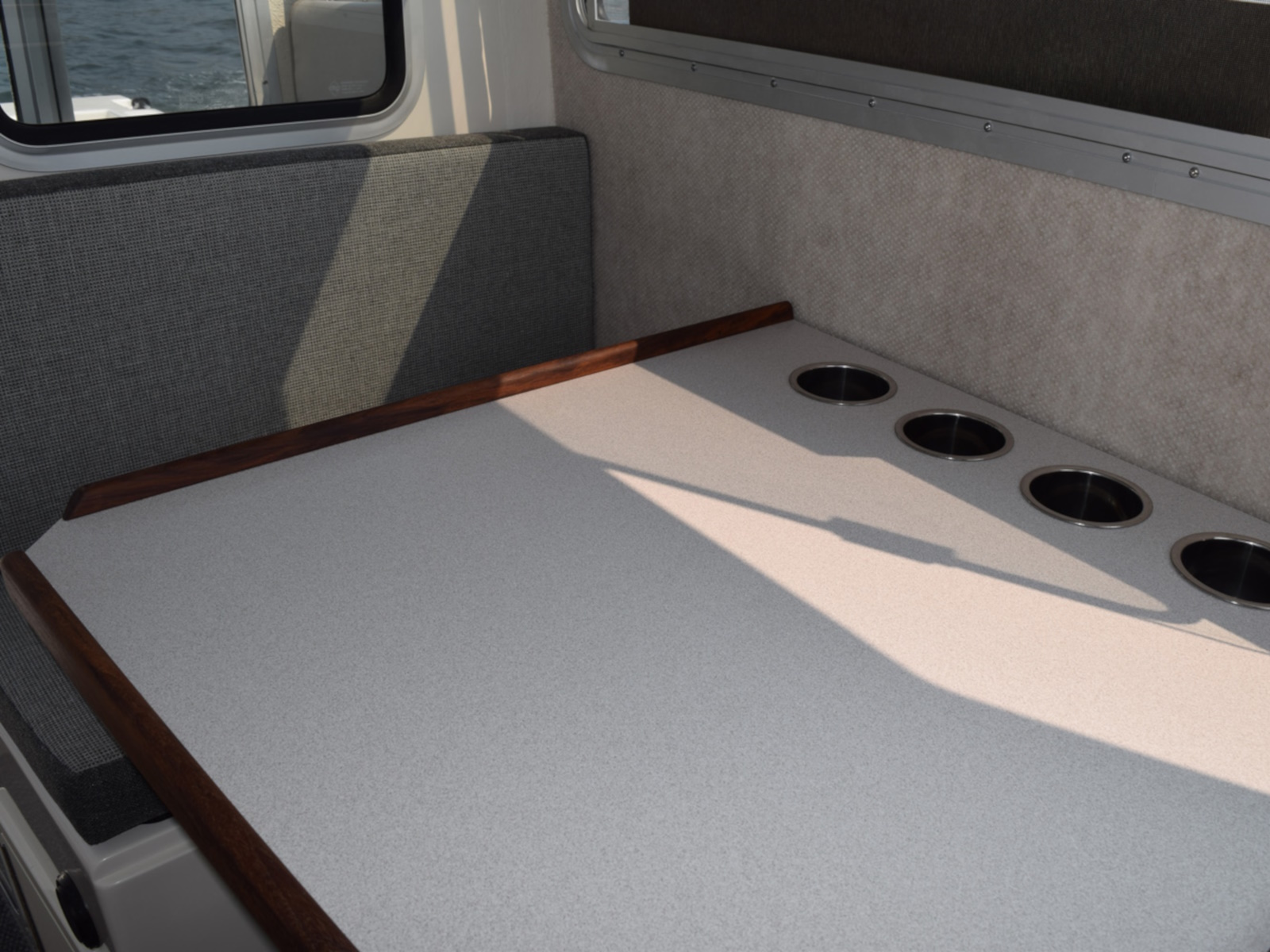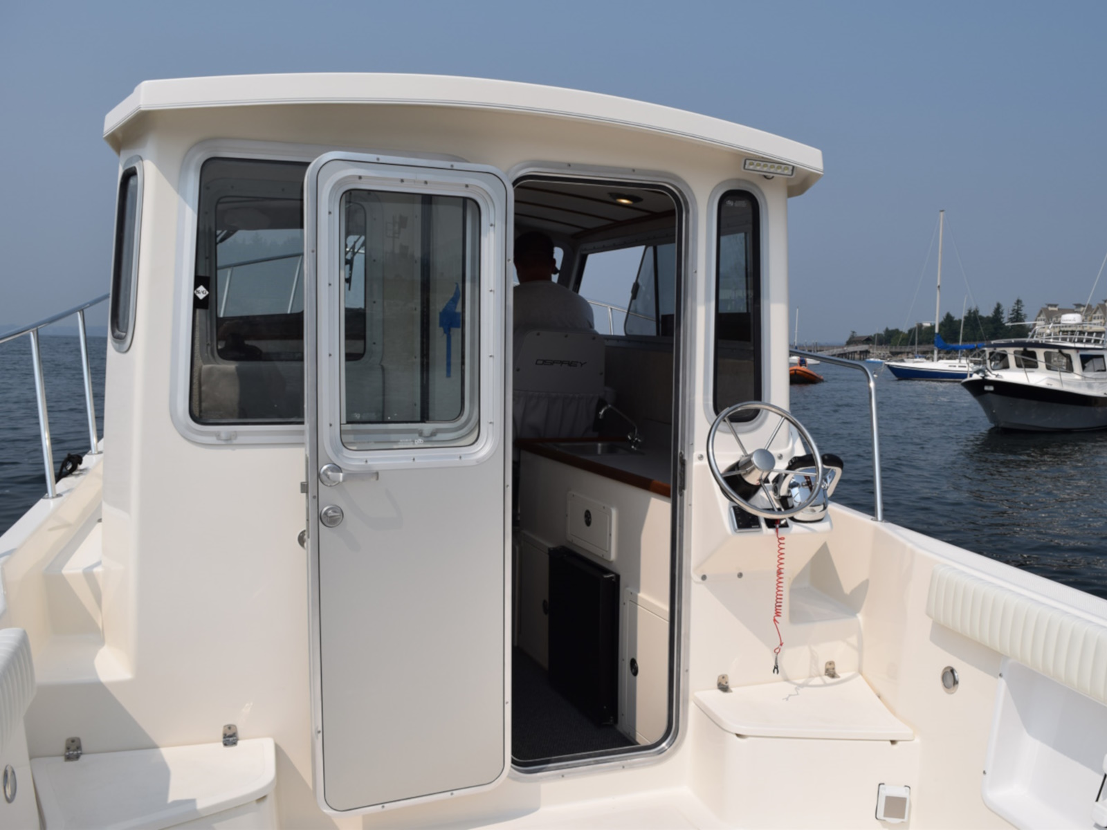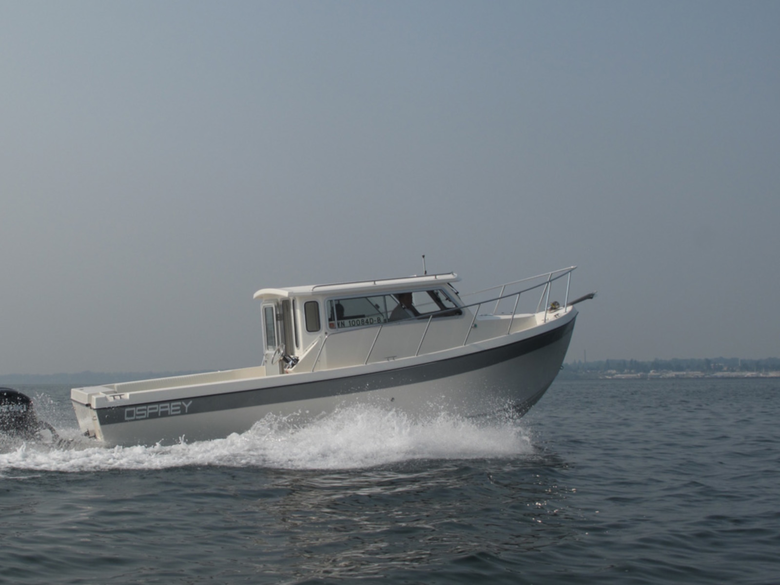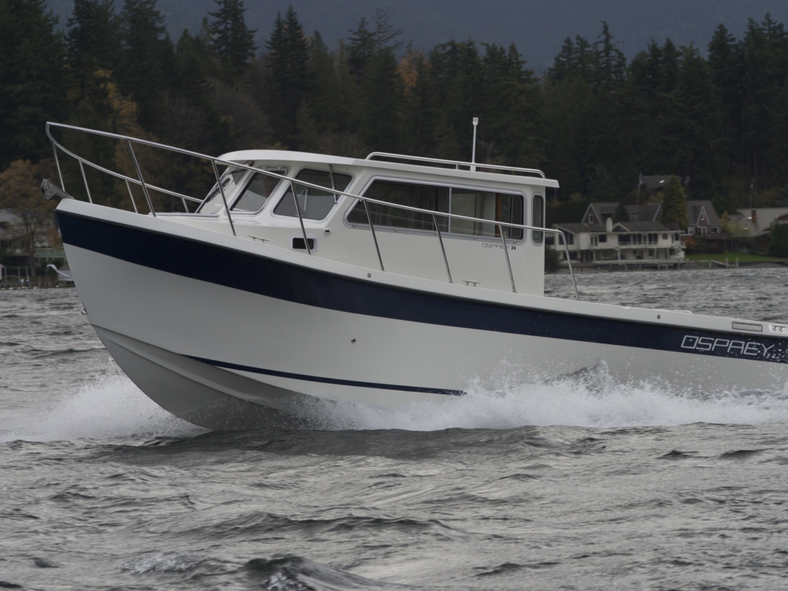 The Osprey 26′ Legend gives greater livability for families while offering the high performance and quality you’ve come to expect from Osprey. Standard features are fabric upholstery, shower, CD player, and full galley with extra deep sink for the chef in the family. Shore power is also standard, as well as a seawater wash-down system, a substantial radar arch, transom door, and swim step. Additional options include a full stand-up head and flip-flop cabin seat that allows you to face forward or turn around to join the party in the spacious dinette. If you have a big family, or just need the extra room, with two layouts to choose from the 26′ Legend is the ideal choice – combining extra comfort with the performance you’d expect from a power fishing cruiser.