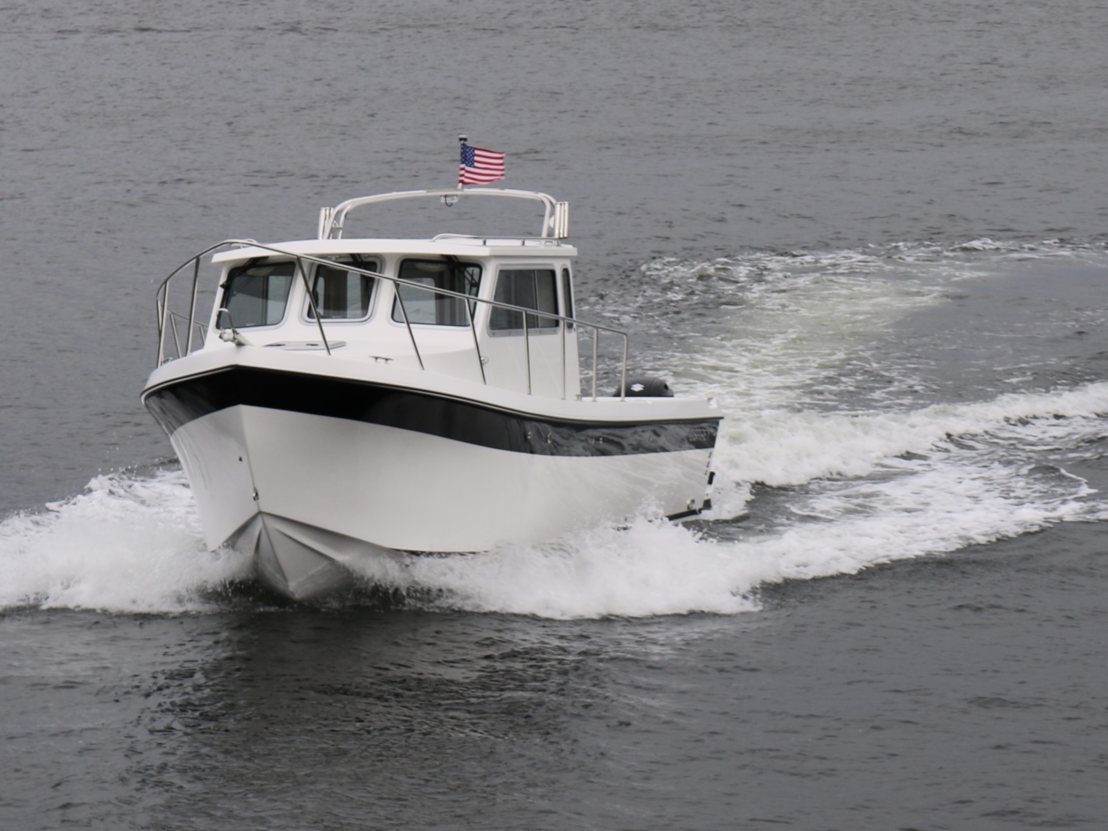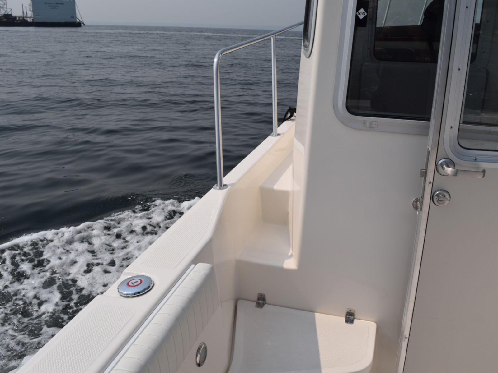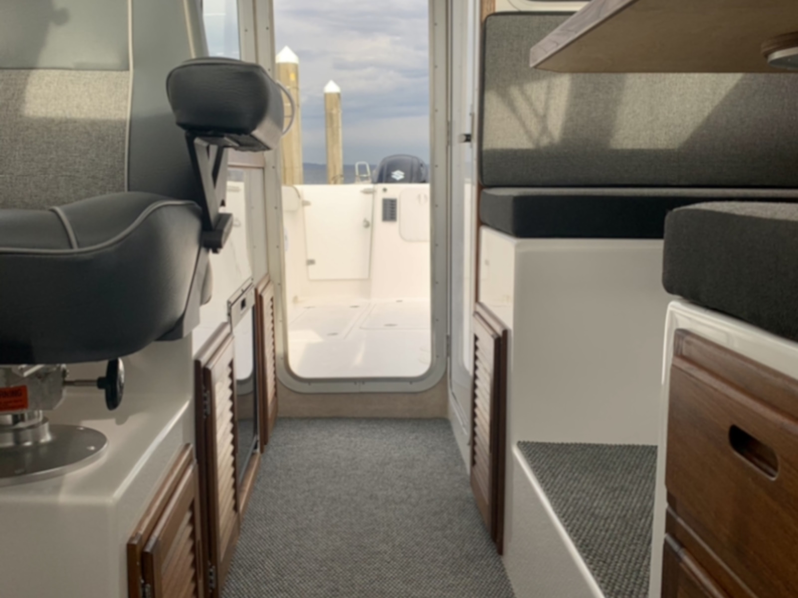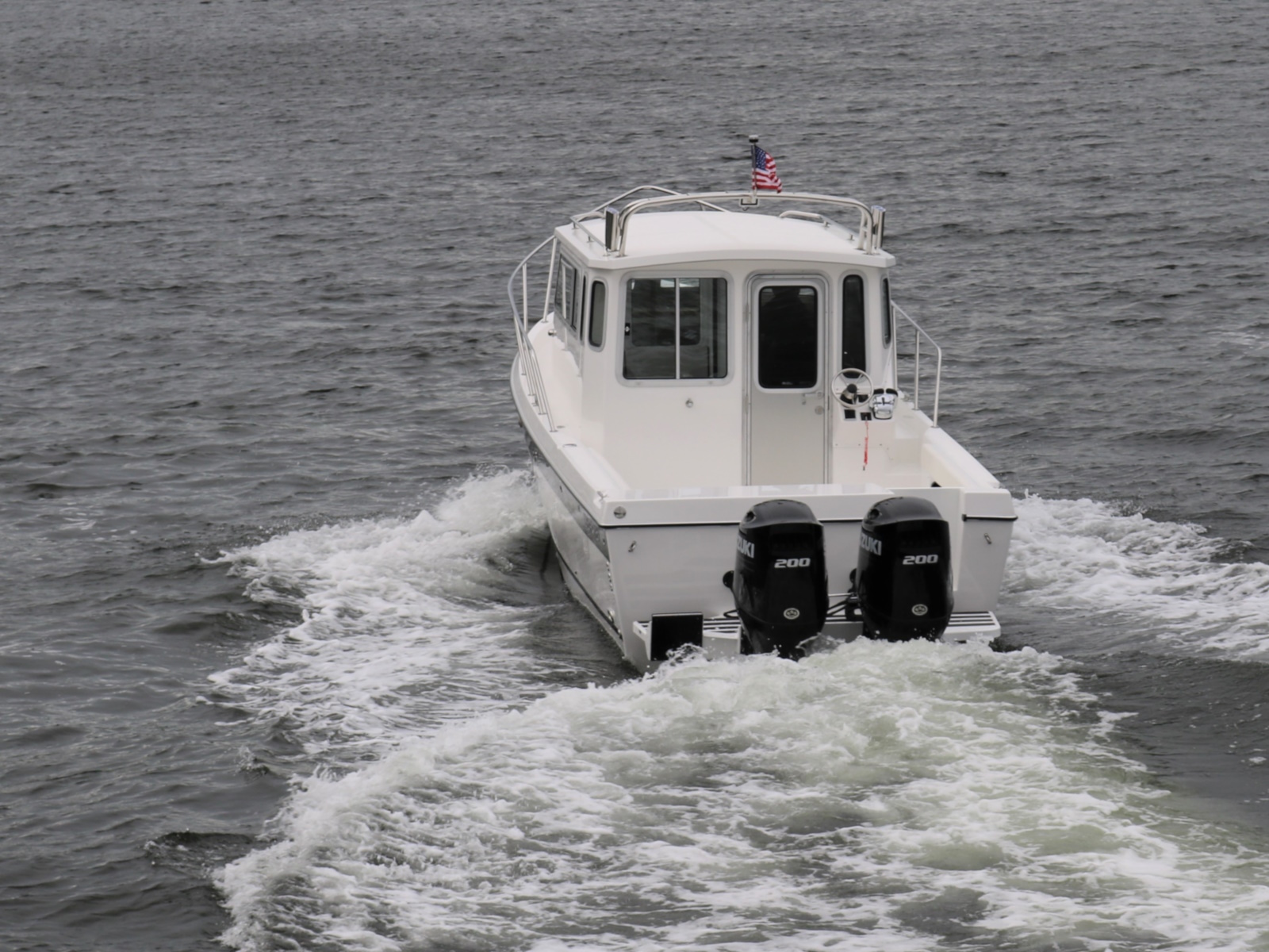 The Osprey 26′ Legend gives greater livability for families while offering the high performance and quality you’ve come to expect from Osprey. Standard features are fabric upholstery, shower, CD player, and full galley with extra deep sink for the chef in the family. Shore power is also standard, as well as a seawater wash-down system, a substantial radar arch, transom door, and swim step. Additional options include a full stand-up head and flip-flop cabin seat that allows you to face forward or turn around to join the party in the spacious dinette. If you have a big family, or just need the extra room, with two layouts to choose from the 26′ Legend is the ideal choice – combining extra comfort with the performance you’d expect from a power fishing cruiser.