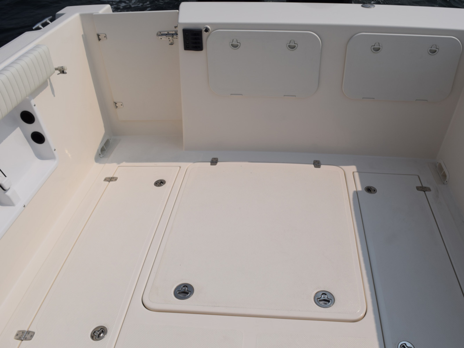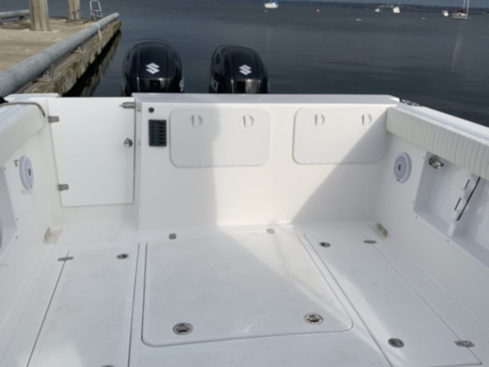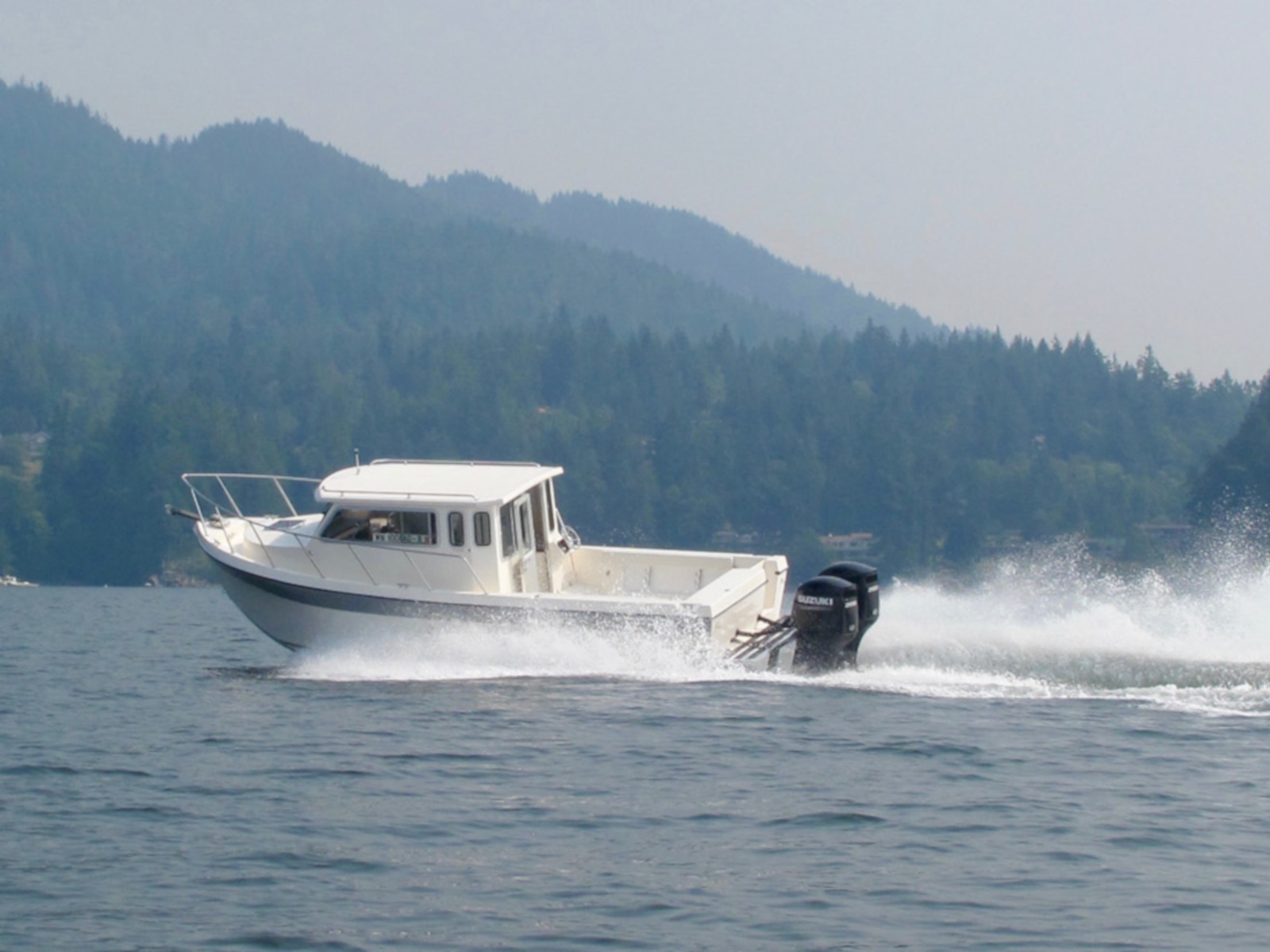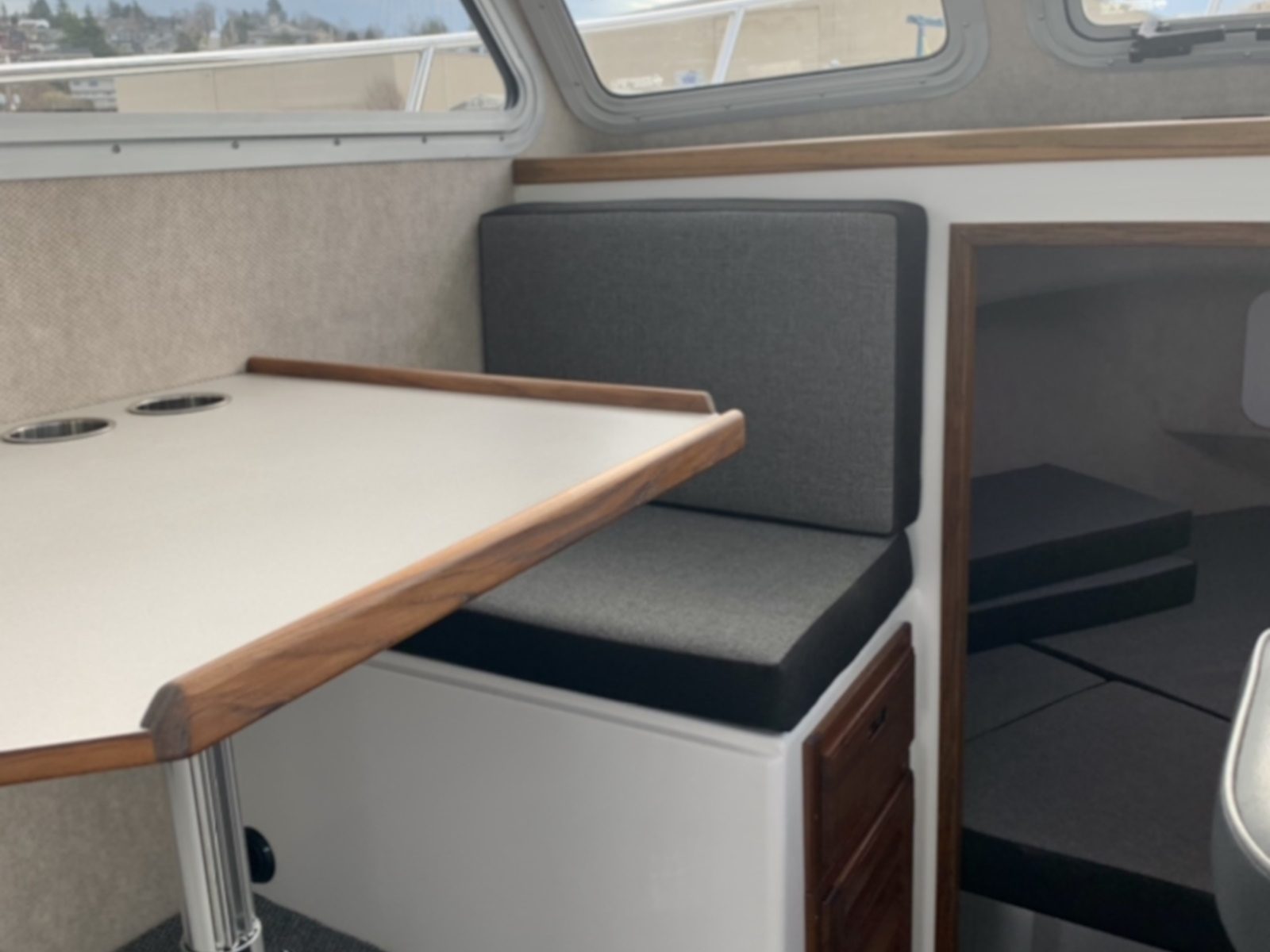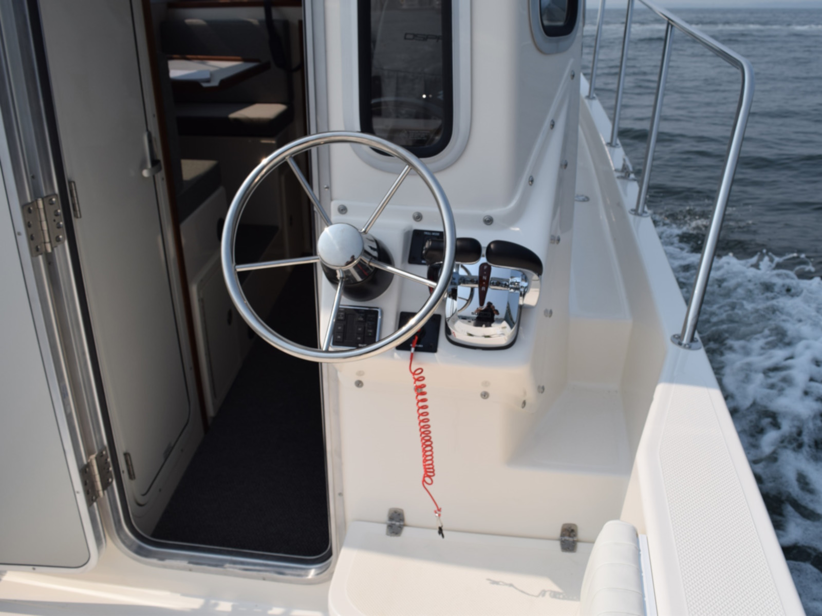 The Osprey 26′ Legend gives greater livability for families while offering the high performance and quality you’ve come to expect from Osprey. Standard features are fabric upholstery, shower, CD player, and full galley with extra deep sink for the chef in the family. Shore power is also standard, as well as a seawater wash-down system, a substantial radar arch, transom door, and swim step. Additional options include a full stand-up head and flip-flop cabin seat that allows you to face forward or turn around to join the party in the spacious dinette. If you have a big family, or just need the extra room, with two layouts to choose from the 26′ Legend is the ideal choice – combining extra comfort with the performance you’d expect from a power fishing cruiser.
