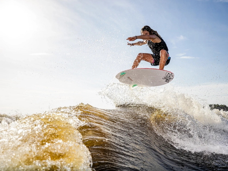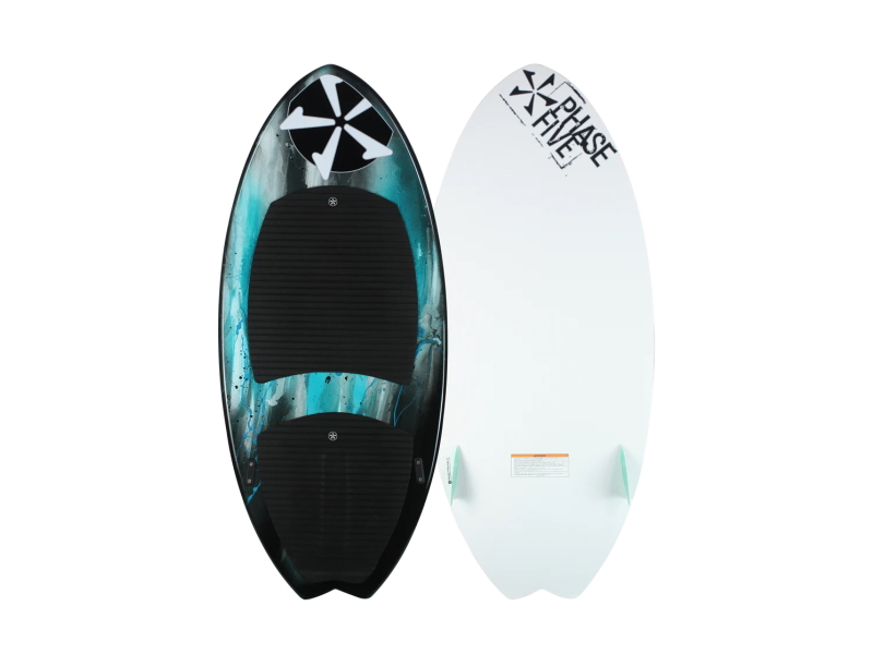 The Phase Five Fish Wakesurfer is for riders who want to try something new. The fish tailed full nose outline makes the Fish a super compact, playful board. It is built with a twin fin setup and loaded with 2” Skim Fins that help it break loose and spin around. The clean rail line helps maintain speed and hold in the face of the wave. The Fish has our ultra grippy EVA traction pads installed for ultimate board control. Get ready for a fun new ride on the Phase Five Fish Wakesurfer.