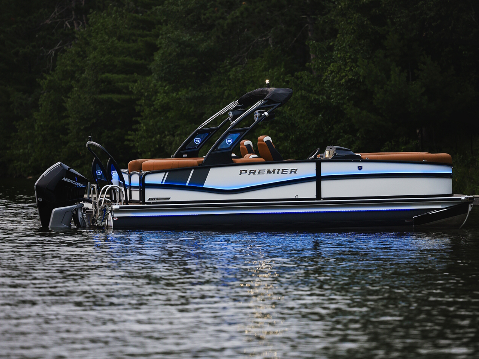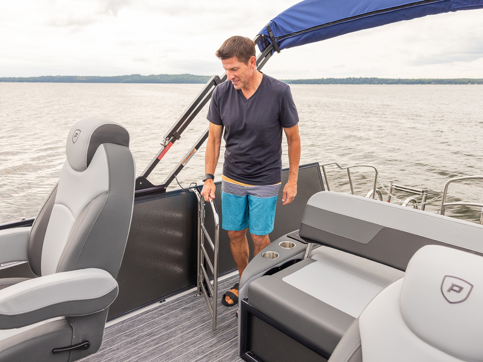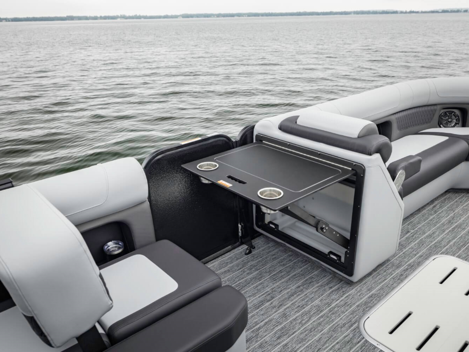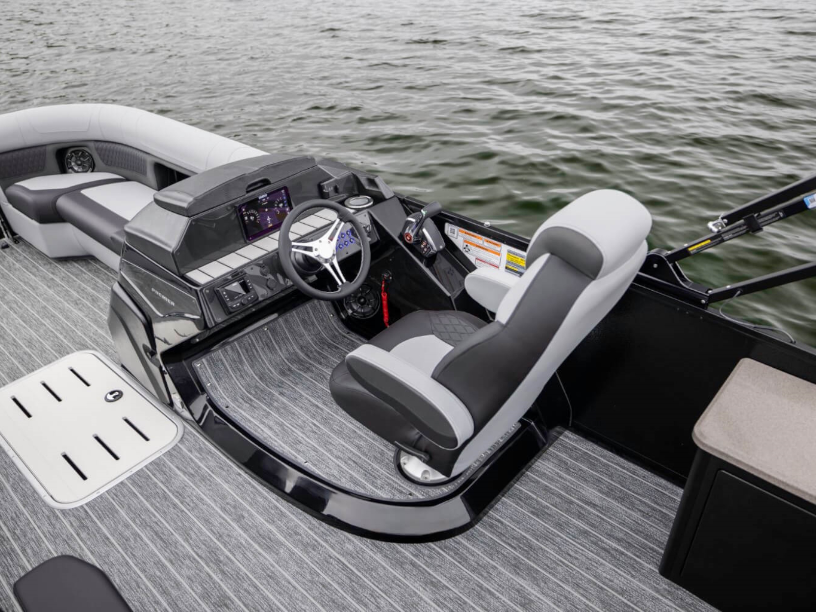 You’ll have the coolest pontoon on the water when you choose the modern luxury and performance of Solaris. Featuring exclusive Premier Cool-Touch fabric technology and new modern color choices, Solaris beats the heat with furniture that’s cooler to the touch, even in direct sunlight. You’ll also experience the best ride in the industry thanks to the supercharged PTX chassis. Plus the added comfort and convenience of the Captain-First helm; signature styling of a transparent bow gate, and award winning innovations like our Revolution Booth and Ricochet Ladder combine to make Solaris the best heart-of-the-market pontoon.
