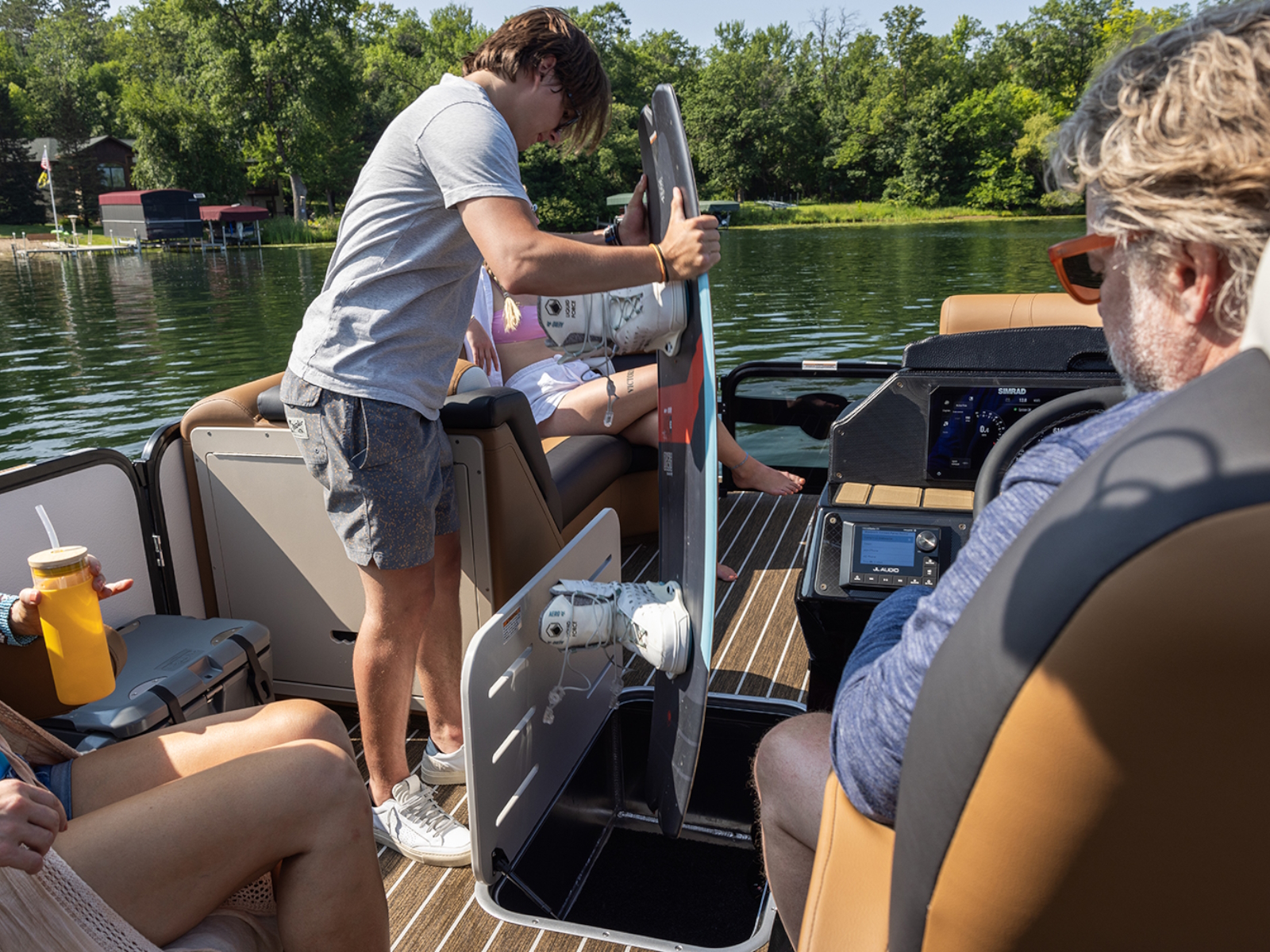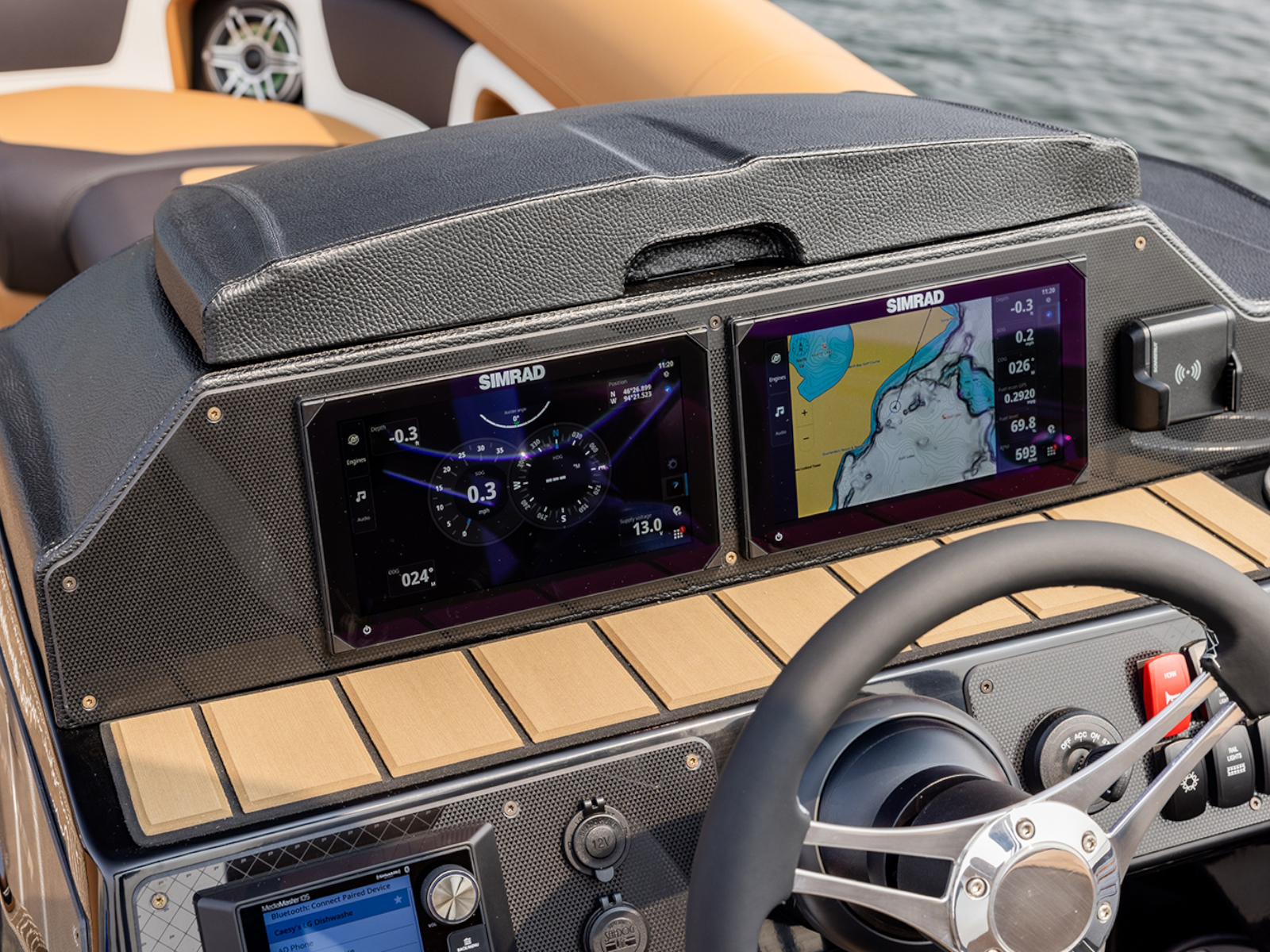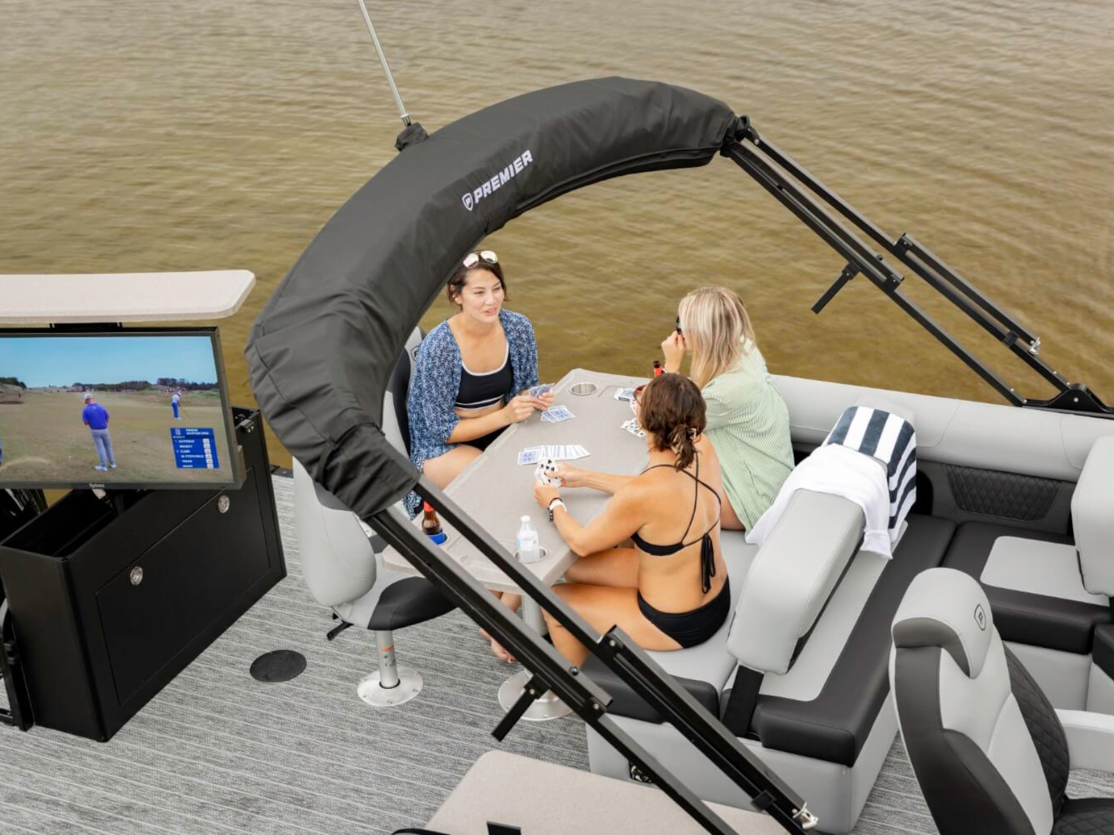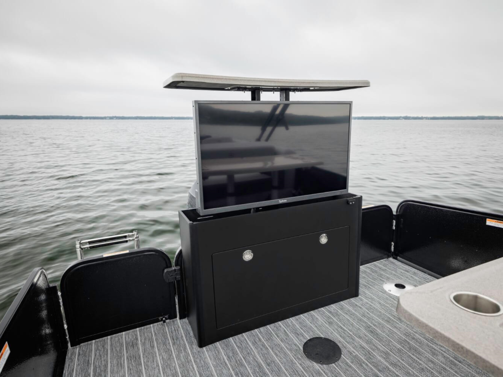 You’ll have the coolest pontoon on the water when you choose the modern luxury and performance of Solaris. Featuring exclusive Premier Cool-Touch fabric technology and new modern color choices, Solaris beats the heat with furniture that’s cooler to the touch, even in direct sunlight. You’ll also experience the best ride in the industry thanks to the supercharged PTX chassis. Plus the added comfort and convenience of the Captain-First helm; signature styling of a transparent bow gate, and award winning innovations like our Revolution Booth and Ricochet Ladder combine to make Solaris the best heart-of-the-market pontoon.