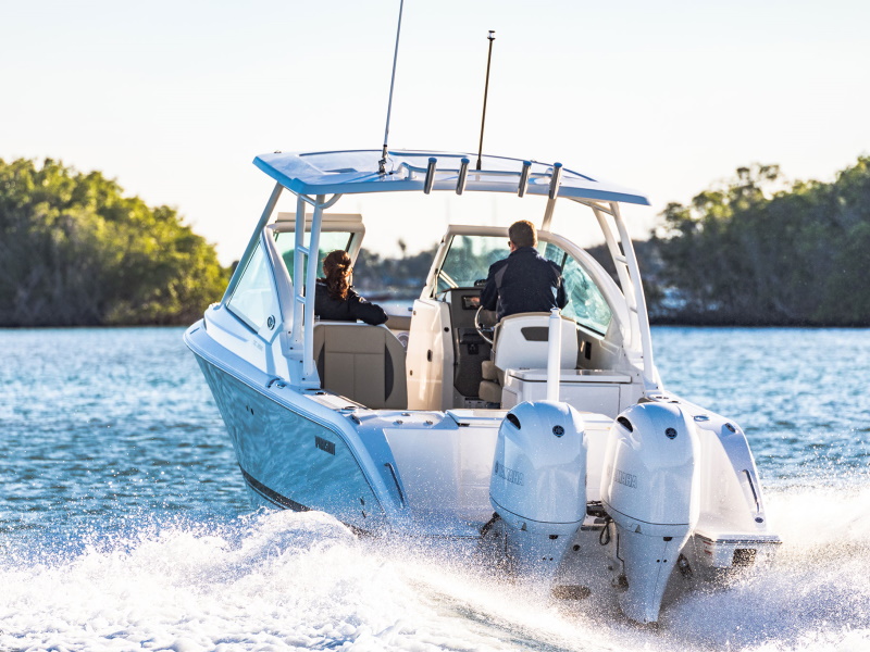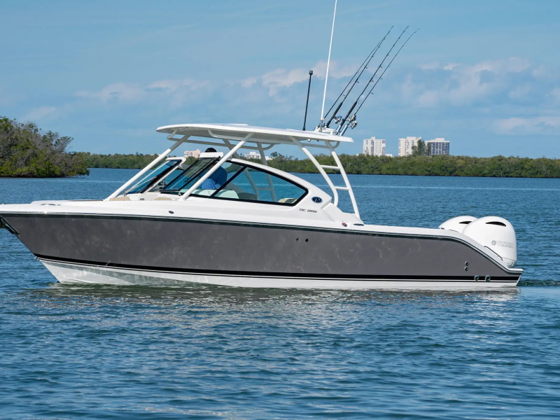 Featuring a fiberglass hardtop, tempered glass windshield engineered with a vacuum infused fiberglass frame with roomy walkthrough and plenty of storage, the DC 266 dual console boat has an LOA of 27' and is powered by dependable twin Yamaha Outboards. The adjustable helm seat allows for excellent access to the instrumentation and controls as well as the optional Garmin electronics.