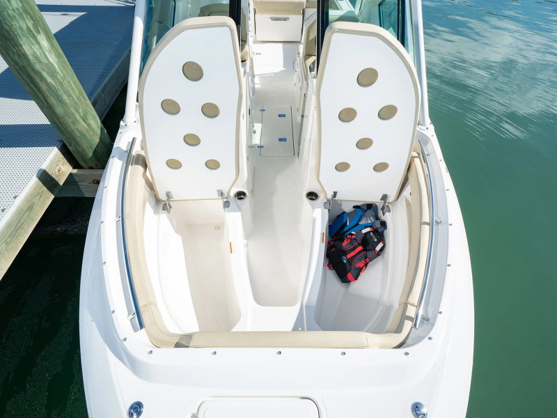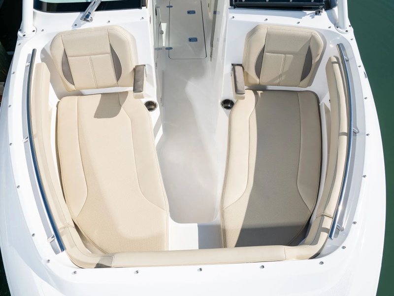 The exterior seating is complemented by the open bow design that has full wrap around seating with plenty of room for family and friends. Add the sunpad option and the social zone quickly converts to a private oasis. A head and sink allow for freshening up dockside.
