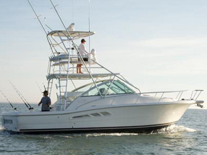 The 34 Express is all business - with lots of pleasure mixed in. Shes got a Carolina flared hull which gives her a soft, dry, head sea ride, yet still provides a lot of space below. There are several options to choose from to allow you to put the storage where you want. For example, a lockable tackle center optioon with slide-out storage drawers, dividers, and a fiberglass sink with spray nozzle and cooler boxes, giving you everything you need for a serious fishing trip.