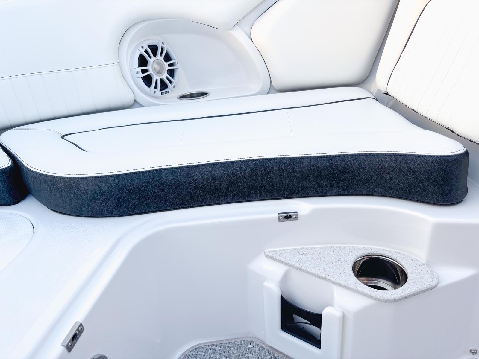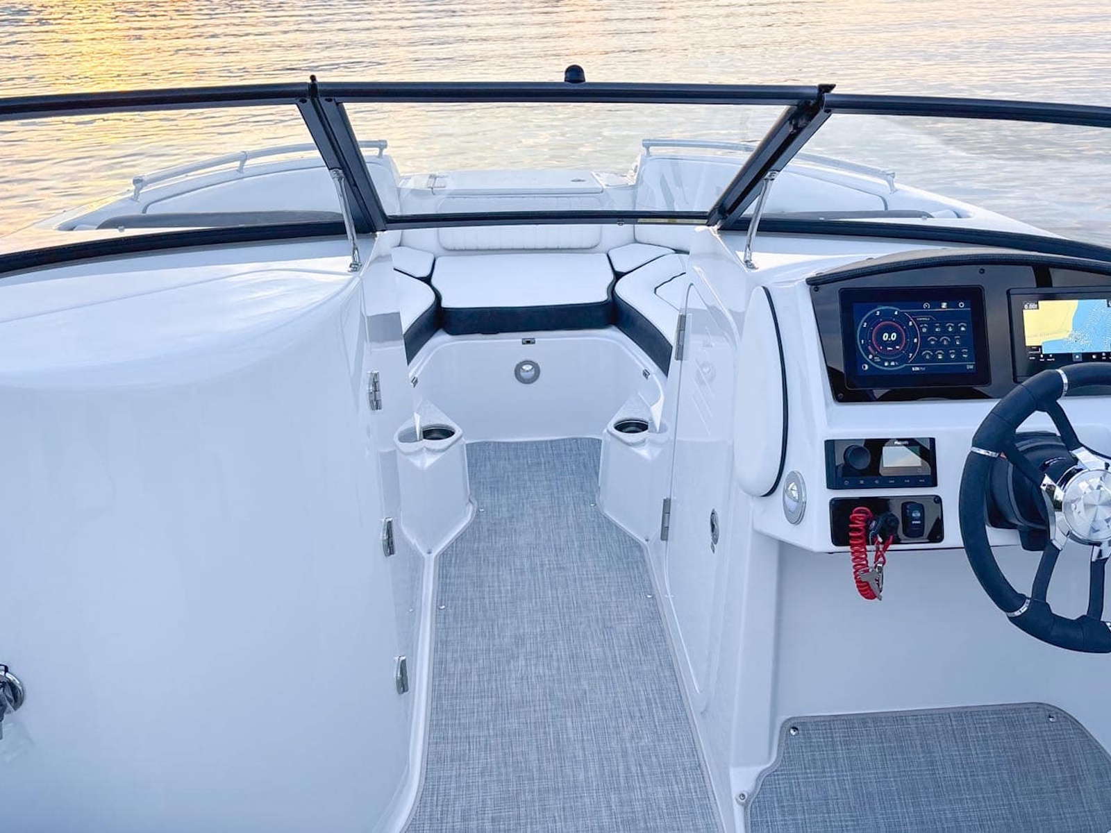 The 211DC is a delightful dual console dayboat that has magnificent comfort, exceptional versatility and thrilling performance in a sporty yet elegant design. The wide, sport deck design creates plenty of interior space, with a large bow and aft seating with filler options, a freshwater sink in the head compartment and a cockpit table with side mounts to make a day on the water with your crew a breeze. We will see you on the water!