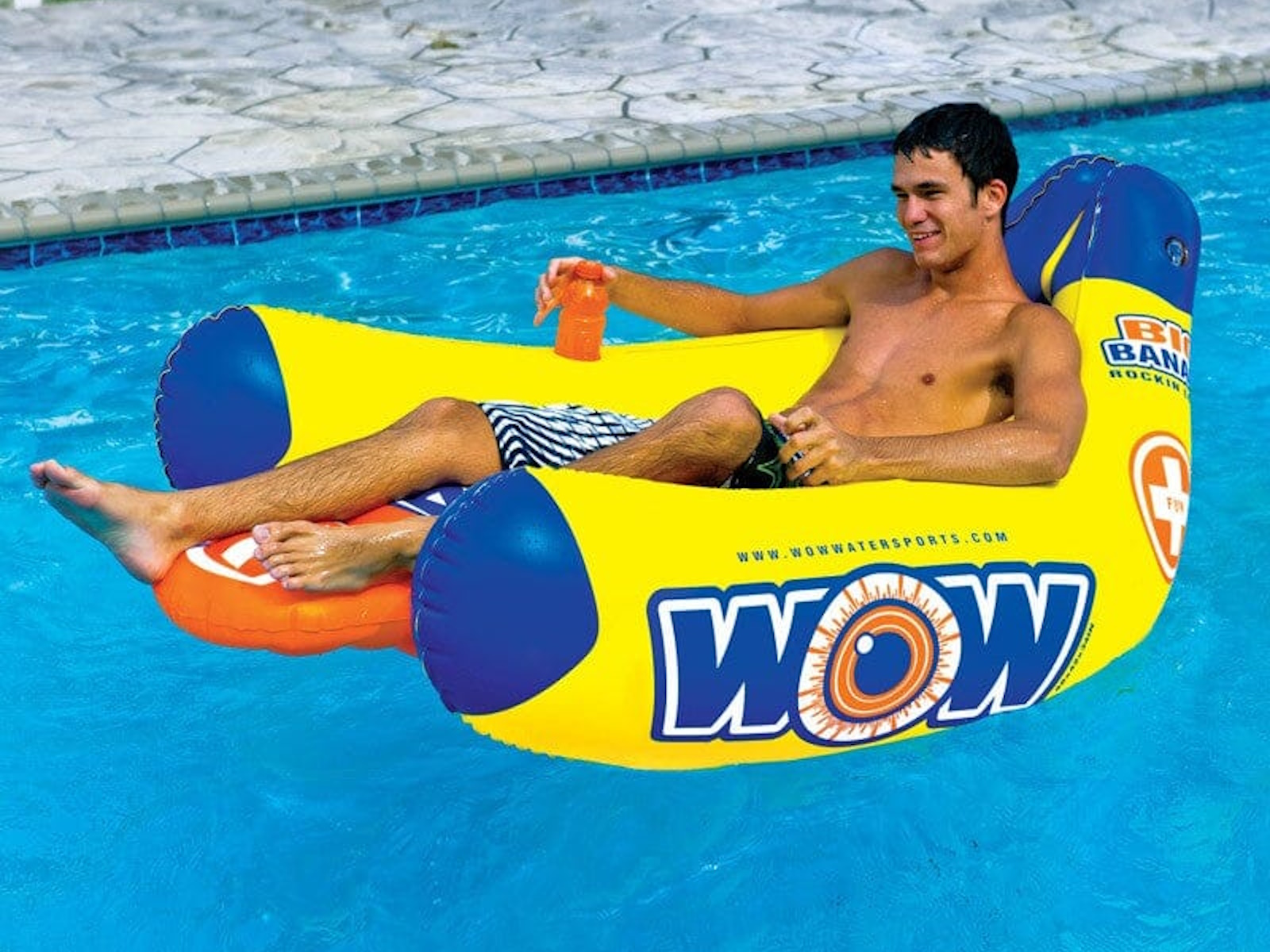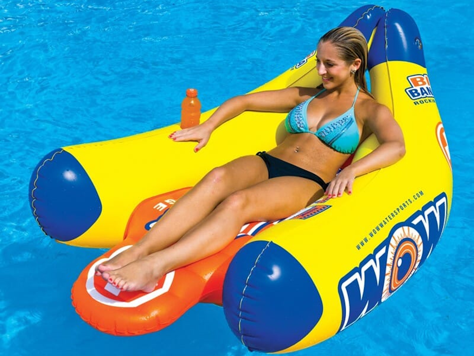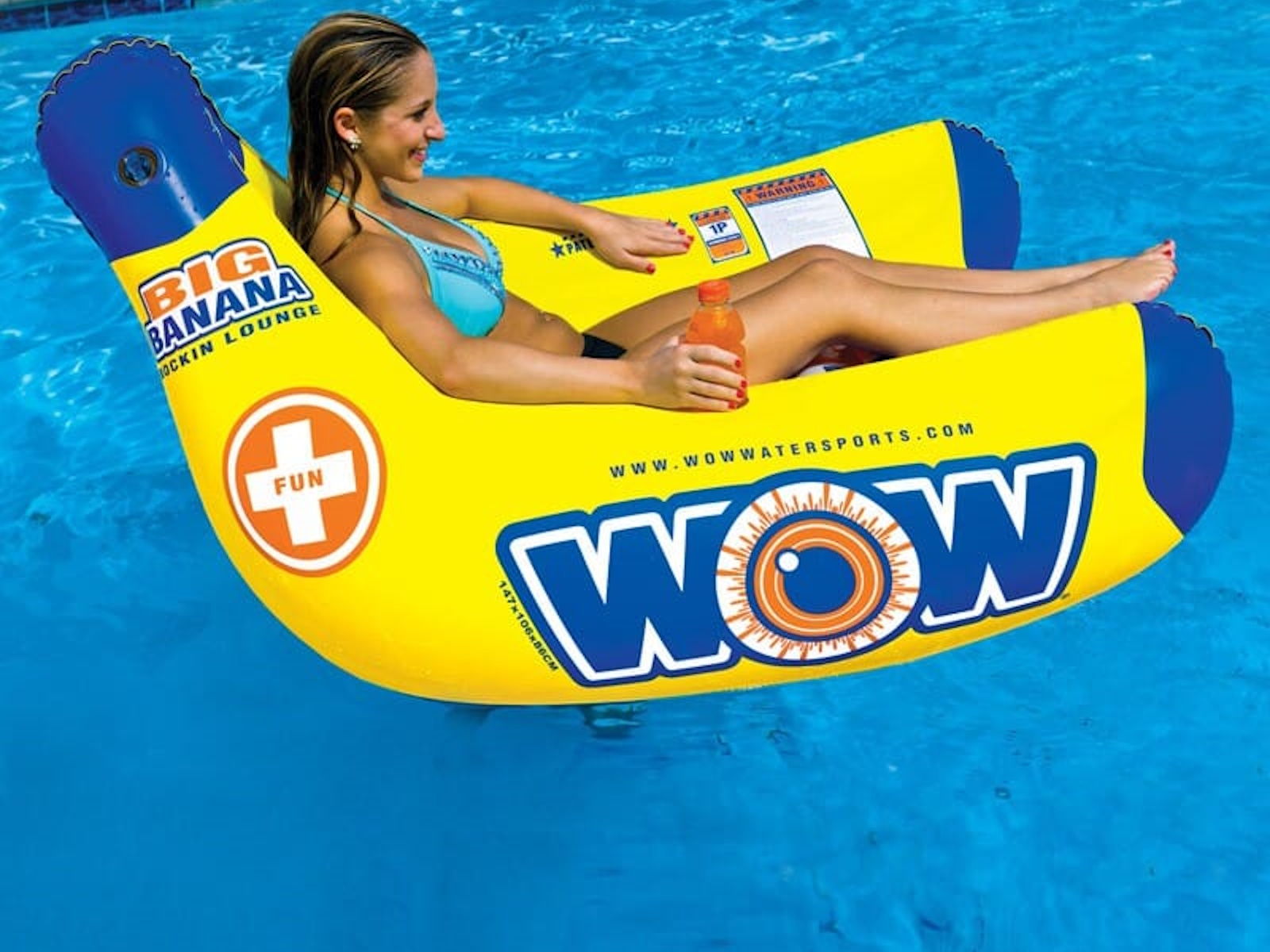 The Big Banana Lounge is exactly what it sounds like. A big lounge shaped like a couple of bananas. WOW never wants to be like everyone else and either should you. How about a lounge with a little personality. With its high profile, the Big Banana lounge will definitely stick out on the water. And with its fine ergonomic shape you will be comfortable while everyone watches you. The Big Banana lounge comes with 2 cup holders, a high backrest, and extended leg rest. A great way to relax on the water.