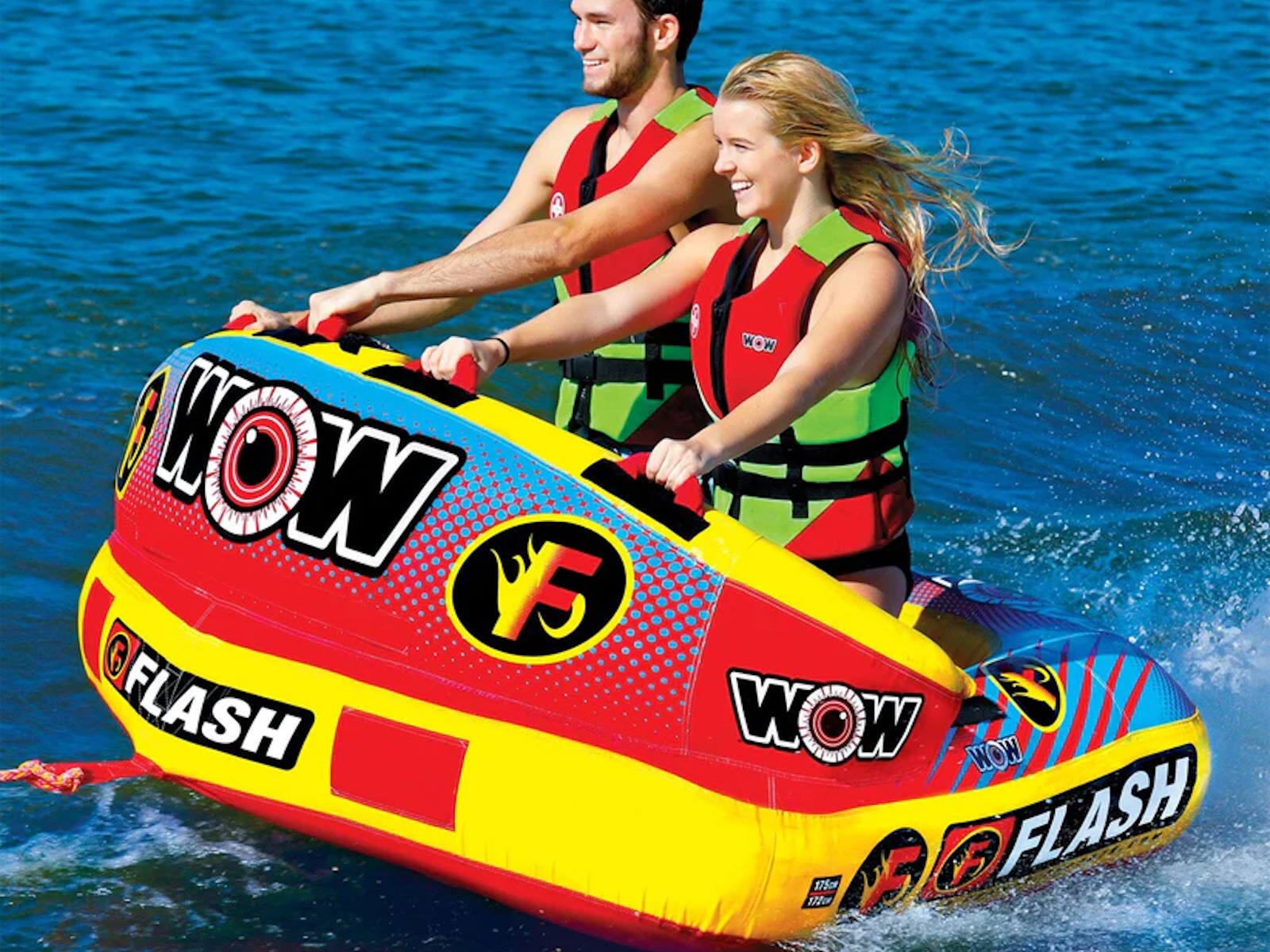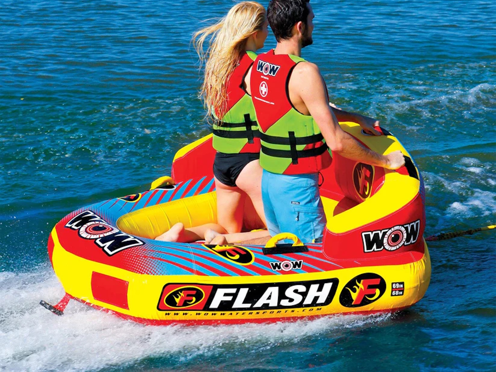 The Flash towable from WOW is a great way to enhance your outdoor lifestyle and add some excitement to your time on the water. Designed with family fun in mind, the Flash offers two rides for the price of one, with reinforced front and back tow points that allow you to switch between cockpit style and chariot style rides. One of the key benefits of using the Flash towable to enhance your outdoor lifestyle is that it provides a fun and active way to enjoy the water. Whether you're an experienced rider or just looking to try something new, the Flash is a great choice for anyone looking to add some excitement to their time on the water. It's also a great way to get exercise and enjoy the beauty of nature, making it a healthy and enjoyable way to spend your time outdoors. In addition to providing a fun and active way to enjoy the water, the Flash towable is also designed with convenience and safety in mind. It features a heavy-duty EZ Tow Connector, a full nylon cover, and deep cockpit seating with a high backrest riser for secure and extreme riding. Its new speed bottom construction also helps reduce drag on the boat, making it more fuel efficient and easier to tow. Overall, the Flash towable from WOW is a great way to enhance your outdoor lifestyle and add some excitement to your time on the water. Whether you're an experienced rider or just looking to try something new, the Flash is sure to provide an enjoyable and memorable experience for the whole family. Buying the Flash towable from WOW can enhance your lake lifestyle in several ways. First and foremost, it provides a fun and exciting way to enjoy the water and spend time outdoors. Towables are a popular activity on the water, and the Flash's dual tow points and versatile design make it a great choice for riders of all ages. This can help encourage you and your family to get outside and enjoy the water together, which can help promote a healthy, active lifestyle. Share your #wowmoments with us by writing about them or sharing pictures or videos on social media or with friends and family. Your #wowmoments inspire the outdoor lifestyle that we innovate and design for you and your family. It is a special way to reflect on and appreciate the special moments in your life with your family so everyday feels like Summer. We love to see your #wowmoments!