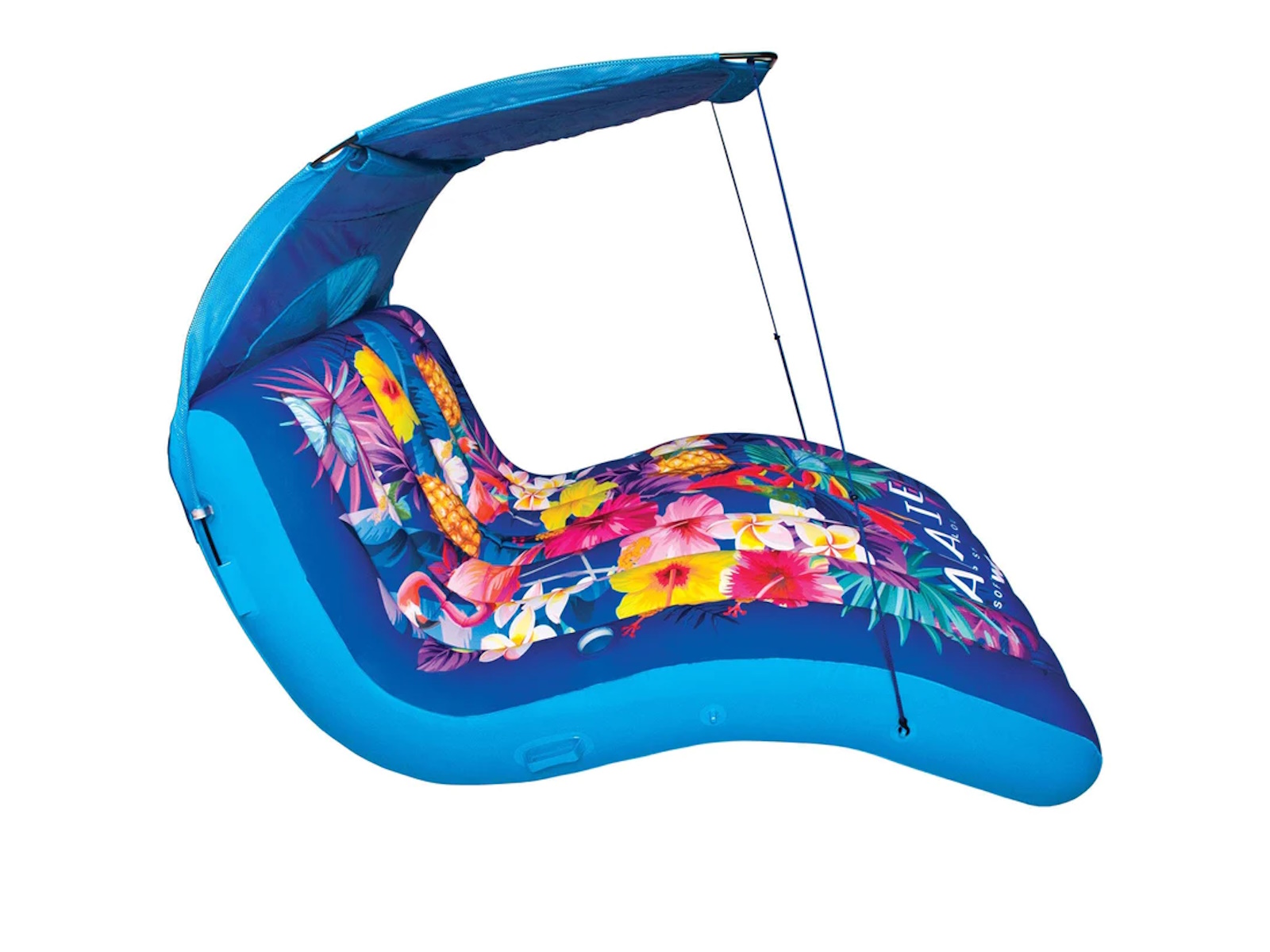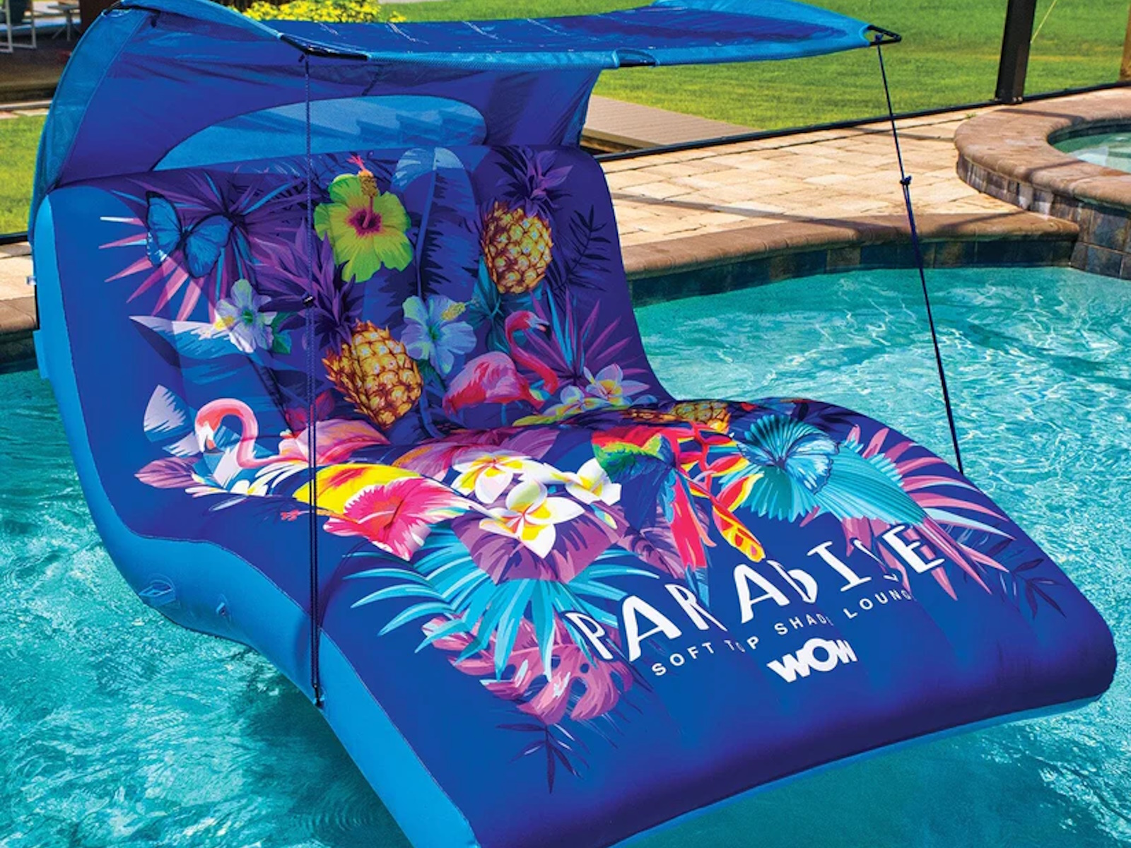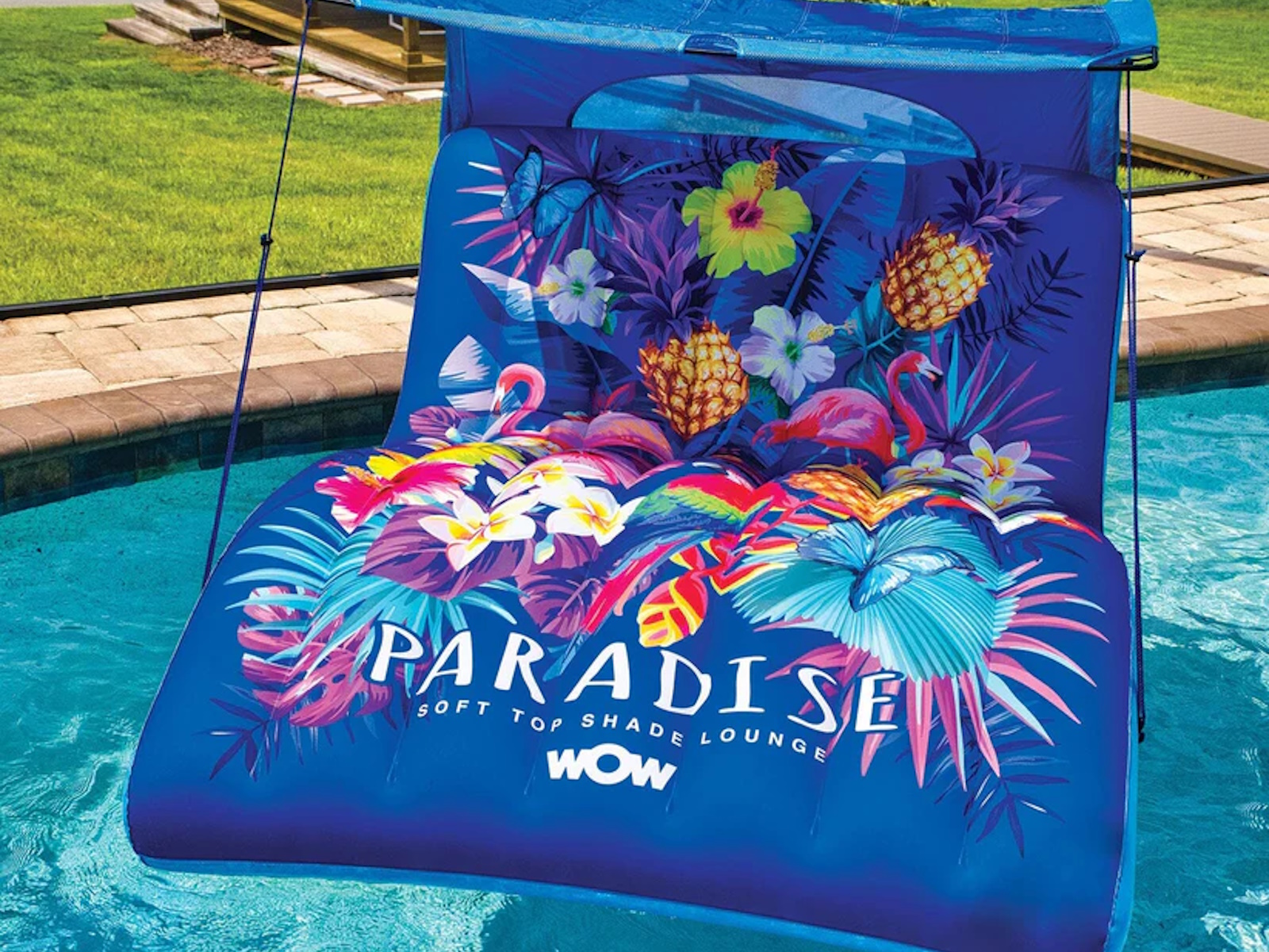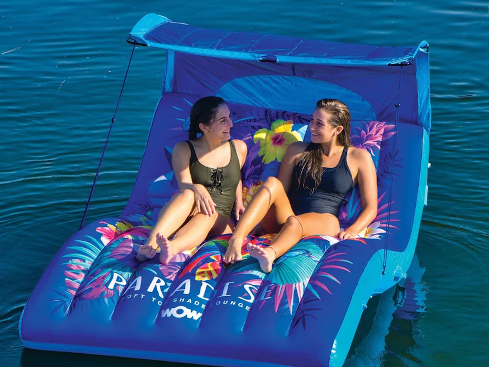 The Paradise Lounger by WOW combines style and comfort like no other inflatable lounge on the market. Designed with ULTRA SOFT TOP fabric overlay on HEAVY-DUTY PVC, the Adjustable Mesh Canopy and 2 molded cupholders. This isnÕt only an attractive, useful float, but also made with quality top of mind and backed by the 1-year WOW Warranty. The Paradise Lounger will be the envy of your friends and neighbors. Not only does it look good, but the ergonomic design provides one of the most comfortable lounge you will find for the water.