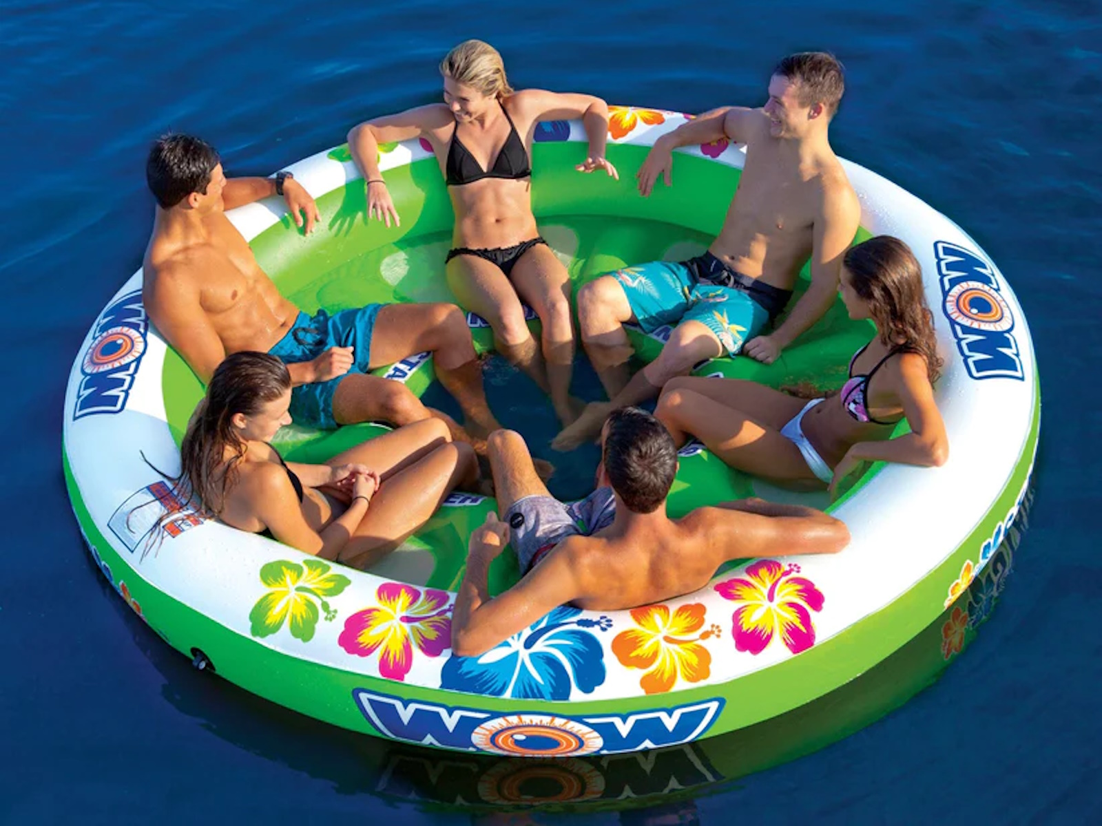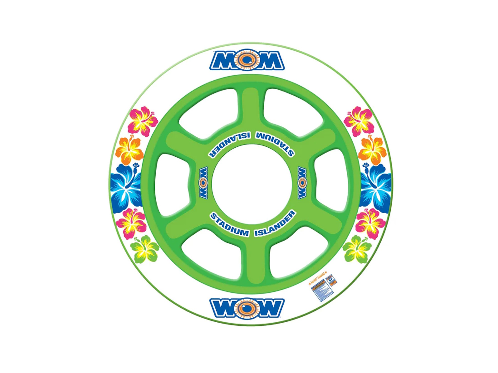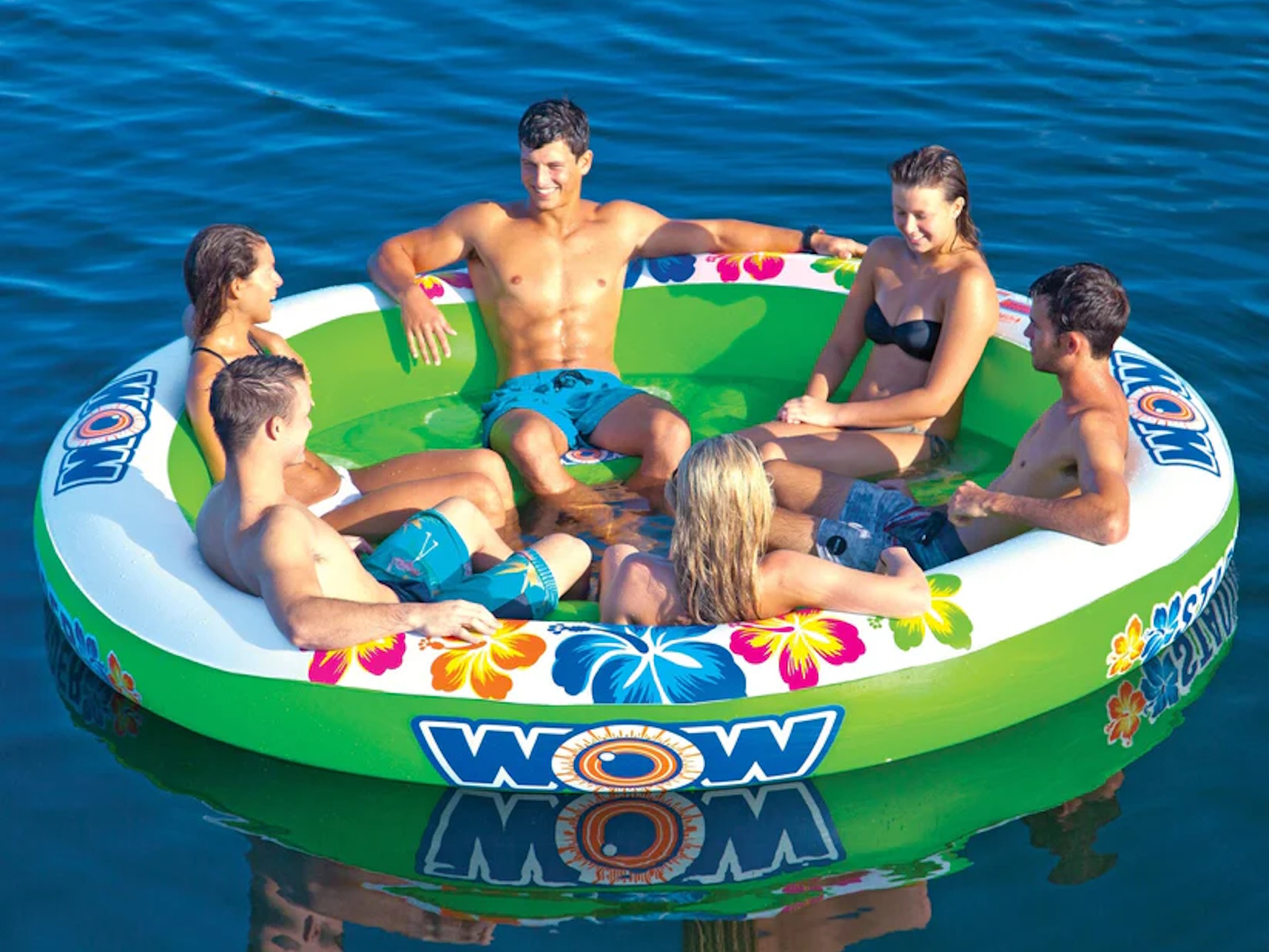 The 6 person Stadium Islander from WOW is an awesome value! It is over 8.5 feet in diameter and seats up to 6 adults very comfortably. The outer ring is 14 inches high and acts as a great backrest for chillaxing with your favorite people on your favorite body of water. Each seat has a mesh bottom to keep you cool during those hot summer days. The open center makes it easy to get on and off for the kids and the grandparents. The whole family can join in the fun! And to top it all off, it looks great. The Stadium Islander is exactly what you need for a great day at the lake.