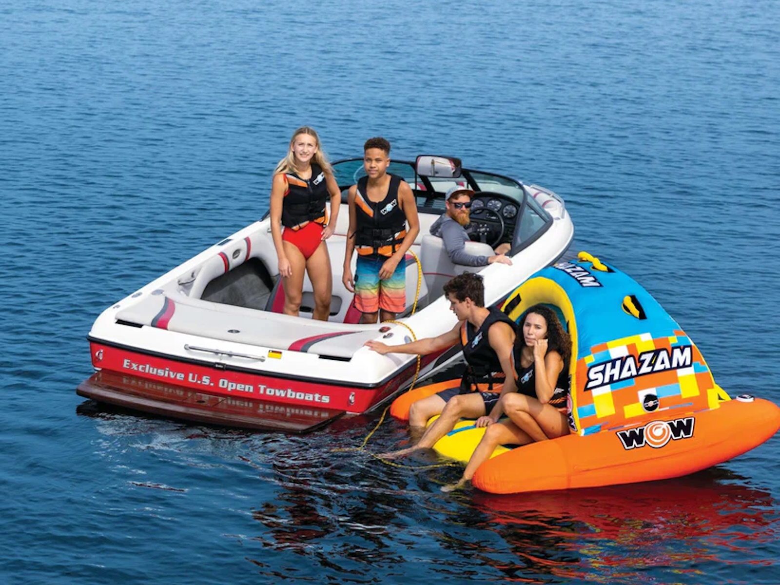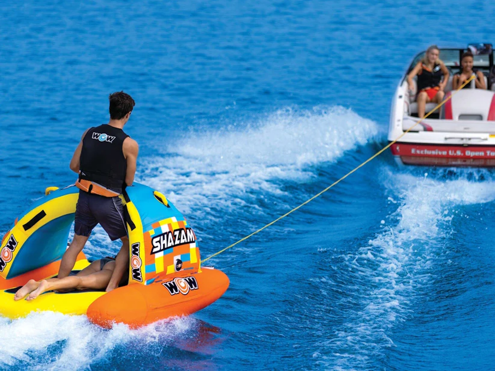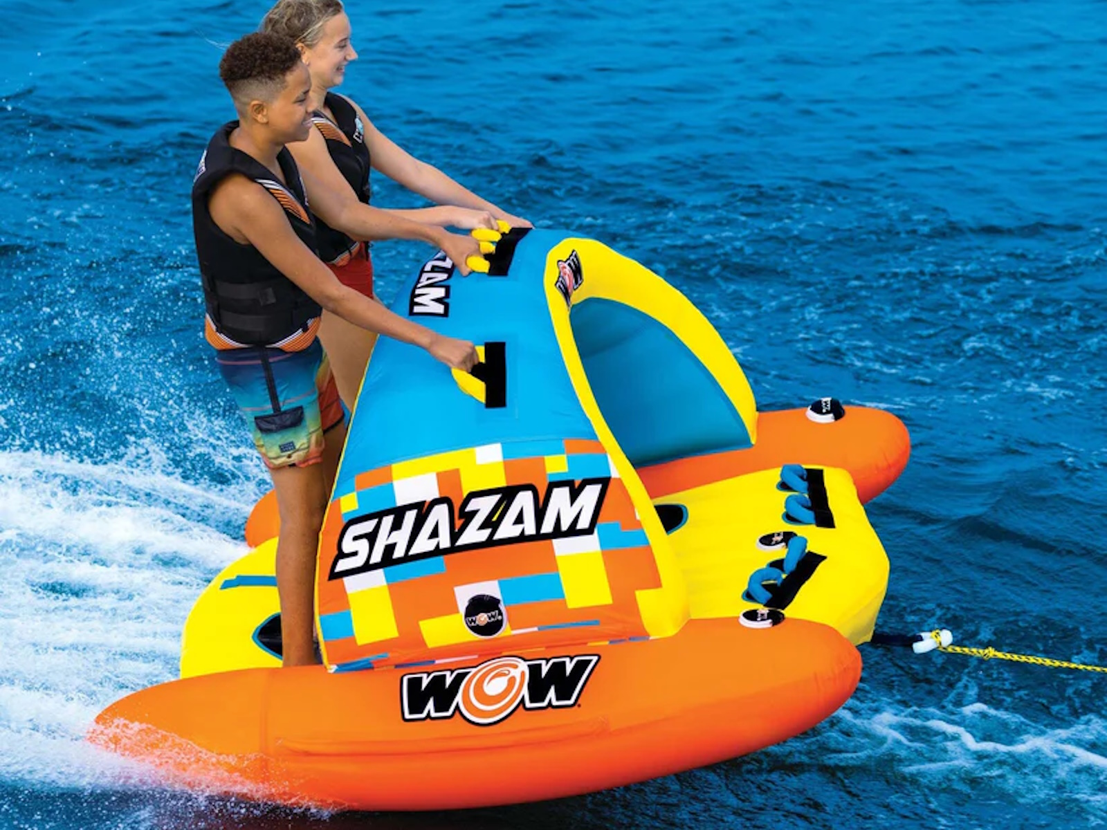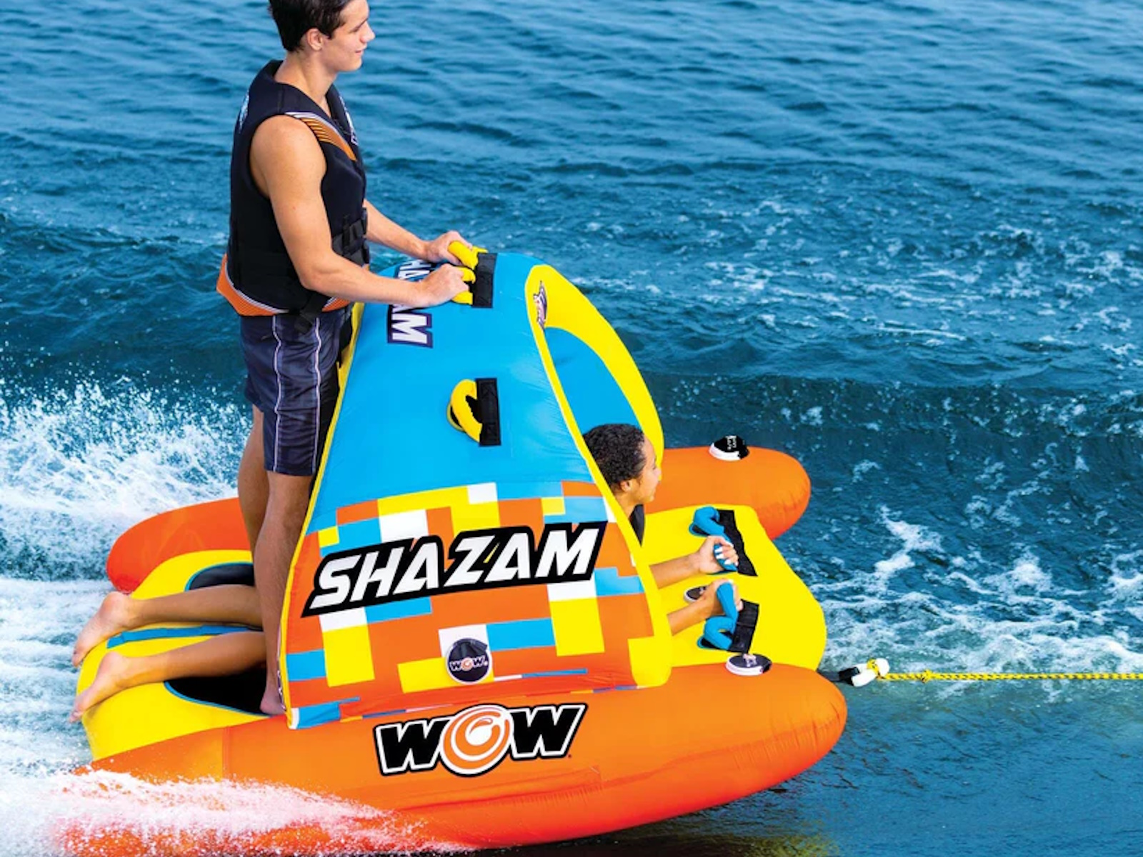 The Shazam 2 towable offers a unique and exciting water experience for those seeking adventure on the lake. As a top choice for water sports enthusiasts, this 1-2 person towable provides versatility with the option to stand, lay down, or steer. With its durable design and thrilling ride capabilities, the Shazam 2 is the ultimate solution for those looking to enhance their time on the water. Whether you're in search of a high-speed thrill or a relaxing float, the Shazam 2 towable has got you covered, making it a must-have accessory for your next boating trip.