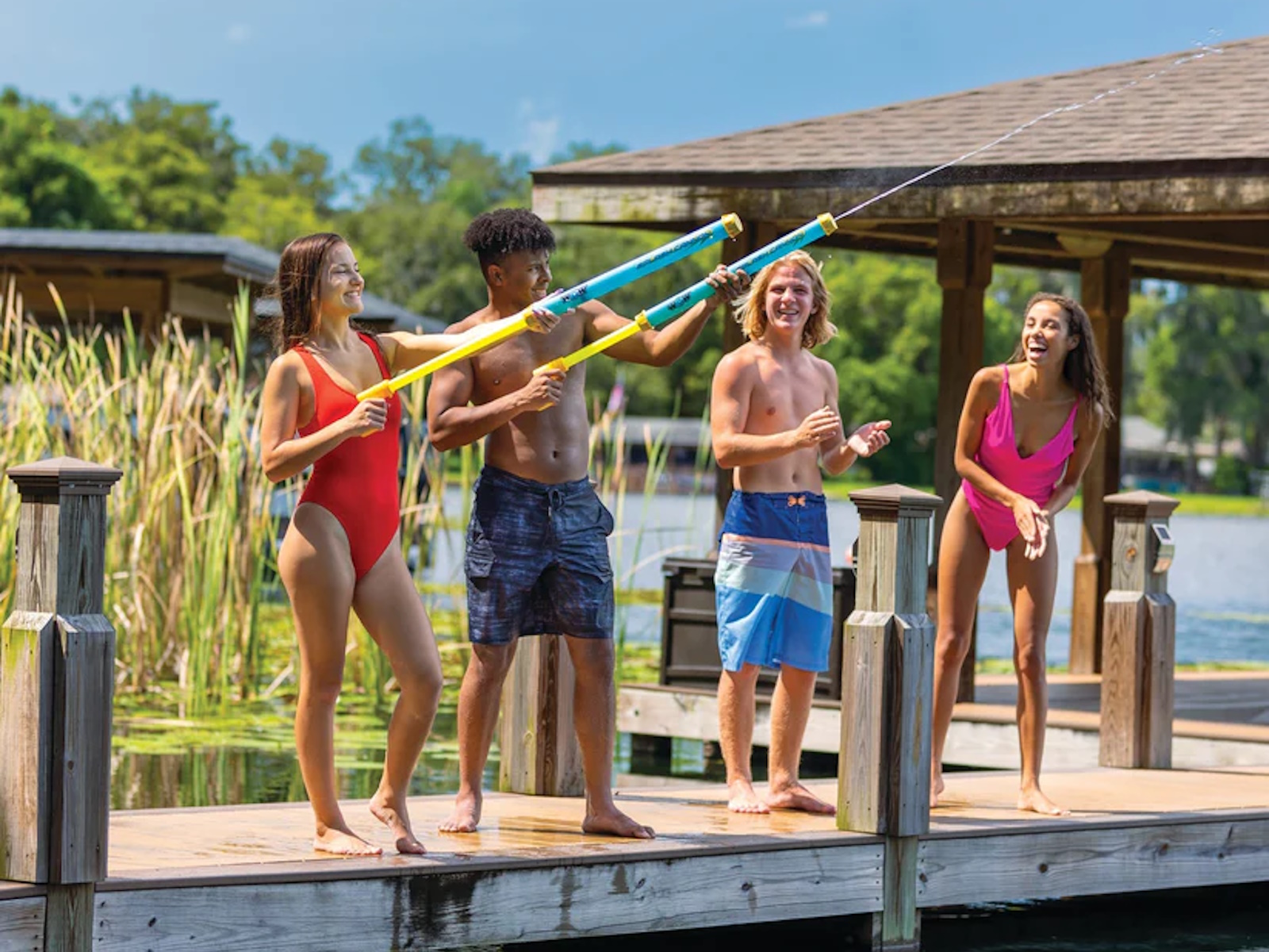 Splash Cannon is a lightweight water gun for kids of all ages. Fill it up with water from the hose, pool, or lake, then stash it behind your back as you dart from hiding spot to hiding spot, ready to douse your target in a fresh blast of water. This water toy is designed for serious water fights, as the long nozzle delivers a long stream. It's also easy to reload and get back in the game, so you never run out of ammunition with this silly splash toy.