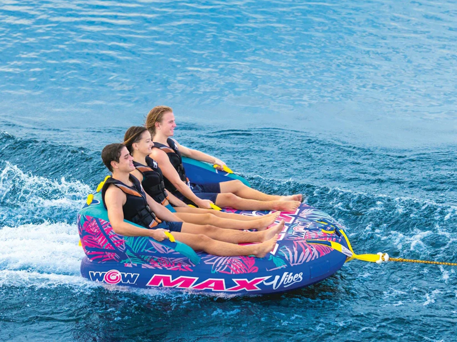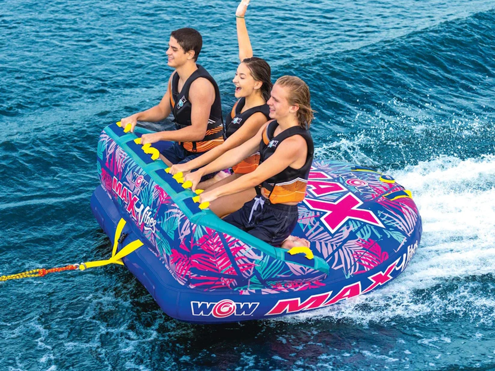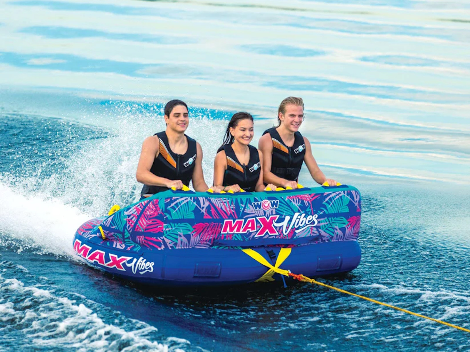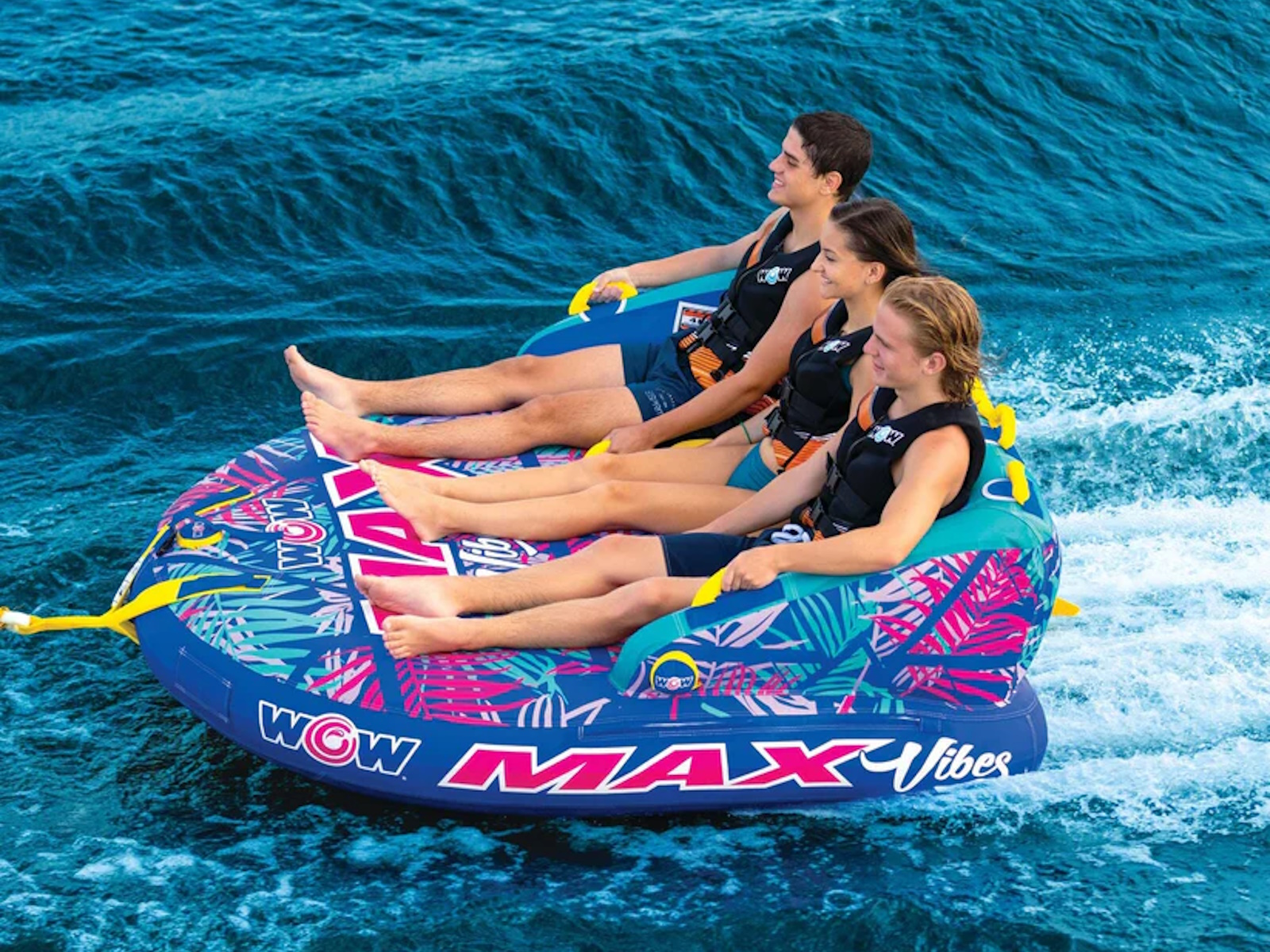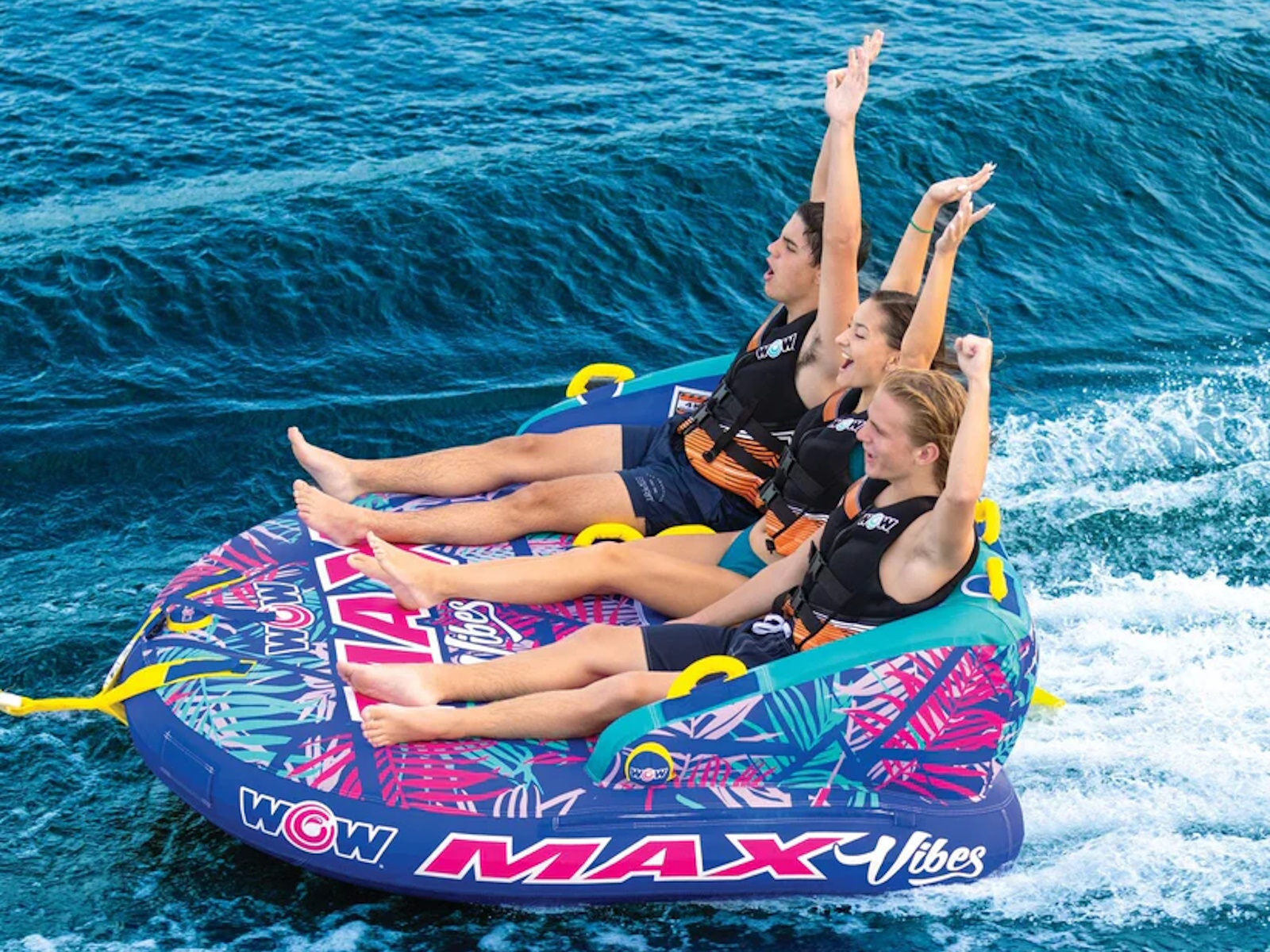 The WOW Max Tropical three-person towable is a great option for those looking to enjoy an exciting ride on the water with friends. The different riding positions allow for versatility and cater to riders of different skill levels, making it a good choice for both beginners and more experienced riders. The couch-style position is safer for those who are new to inflatable rides, while the chariot-style option allows for a more adventurous ride for those who want to try something more challenging. It's important to always follow safety guidelines and wear appropriate safety equipment when participating in water sports to ensure a fun and enjoyable experience for all. Get the party started with the WOW Max Tropical towable! This fun raft is ready to transport you and your friends on the lake. It's always great to have options for different riding positions and being able to switch between them can add variety and excitement to the ride. It's also good to know that there is a safer option available for beginners. Inflatable towables can be a great way to enjoy the water with friends and family. Just be sure to follow all safety instructions and guidelines to ensure a safe and enjoyable ride for all. With 2 unique styles only found at Sams Club, the WOW Max Vibes and the WOW Max Tropical designs with their bold colors will be a ‘stand out’ towable in the water this Summer. Be sure to follow the manufacturer's instructions for use, and make sure that the towable is properly inflated and attached to the boat before use. It's also a good idea to wear a personal flotation device (PFD) or life jacket while using a towable, and to stay within a safe distance of the boat at all times. Finally, be sure to take breaks and switch riders regularly to prevent fatigue. Have fun and be safe! And to encourage an outdoor lifestyle, we are launching a campaign to share your favorite moments with us by using #wowmoments. Share the moments that make you happy, bring out the kid in you, or are just plain awe-worthy. Share your #wowmoments with us by writing about them or sharing pictures or videos on social media or with friends and family. Your #wowmoments inspire the outdoor lifestyle that we innovate and design for you and your family. It is a special way to reflect on and appreciate the special moments in your life with your family so everyday feels like Summer. We love to see your #wowmoments!