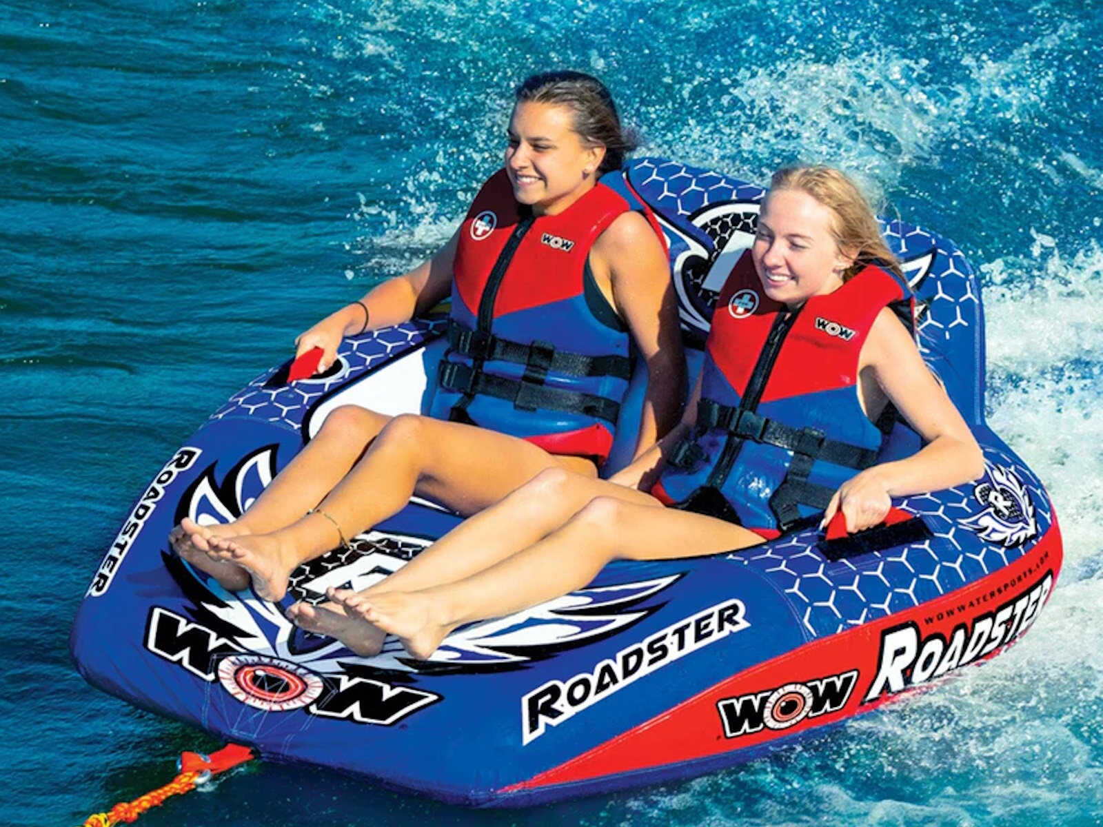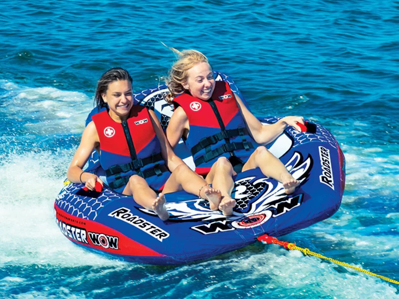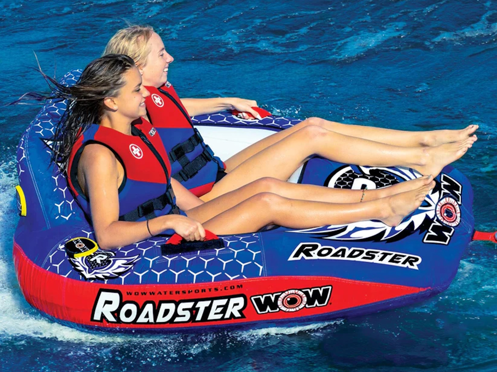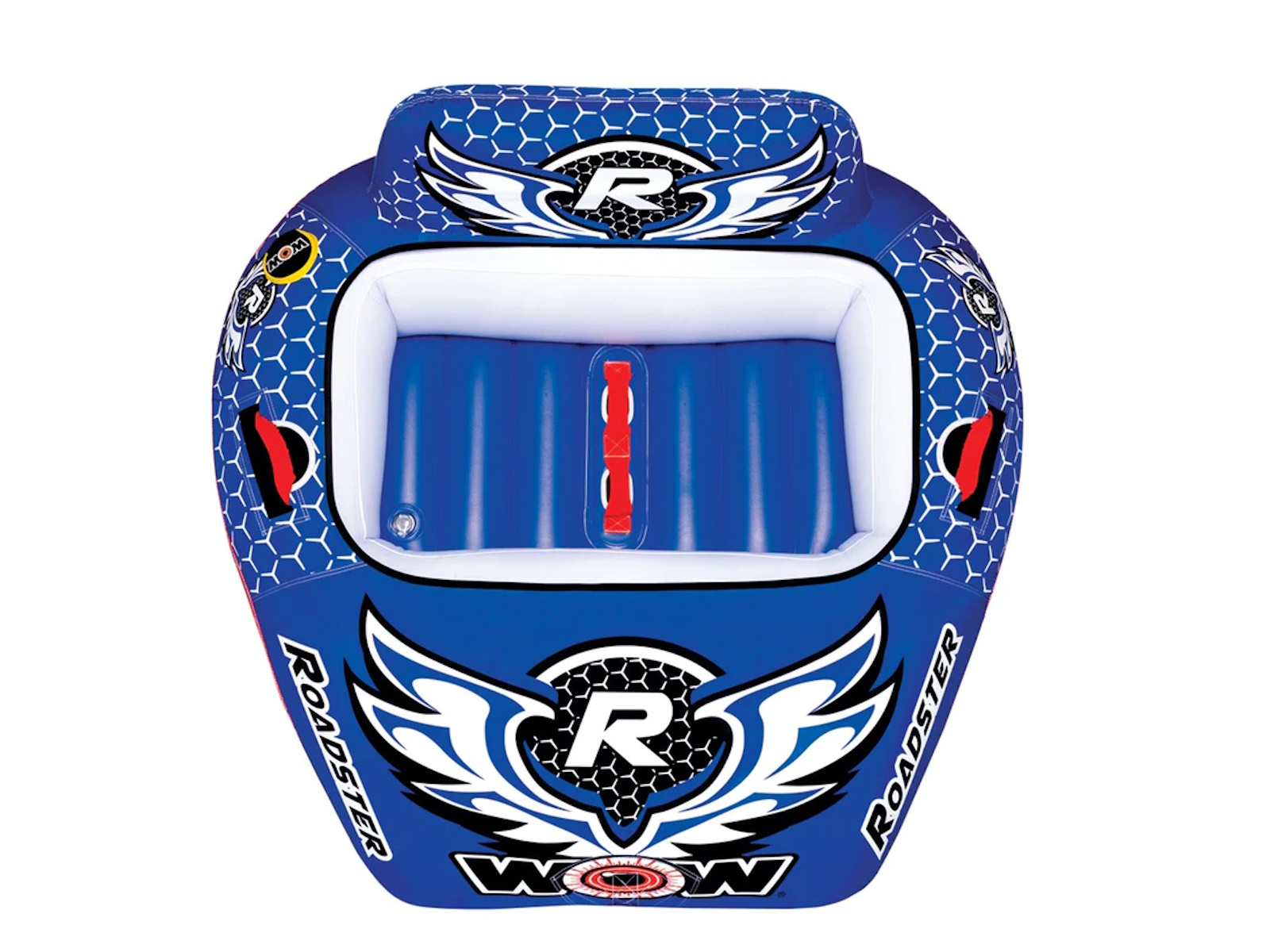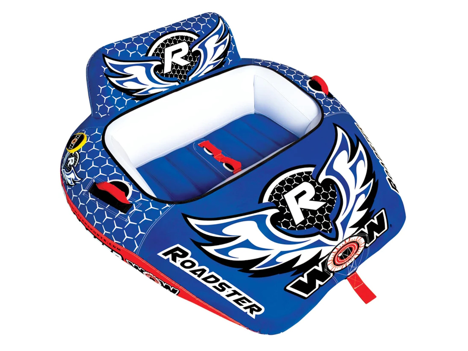 The WOW Sports 2P Roadster Towable is a must-have for any water sports enthusiast. This two-person towable features a unique design that allows for a thrilling ride on the water. With its heavy-duty construction and reinforced tow system, you can trust that it will last for many summers of fun. Its ergonomic backrests and multiple grab handles provide comfort and safety for riders, while the quick-connect tow system makes it easy to hook up to your boat. Whether you are looking for an exciting ride or just a relaxing float, the WOW Sports 2P Roadster Towable is the perfect choice.