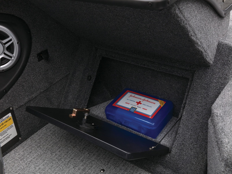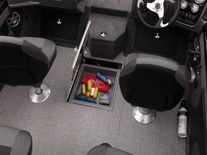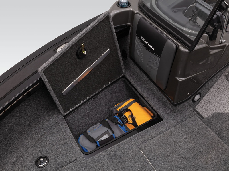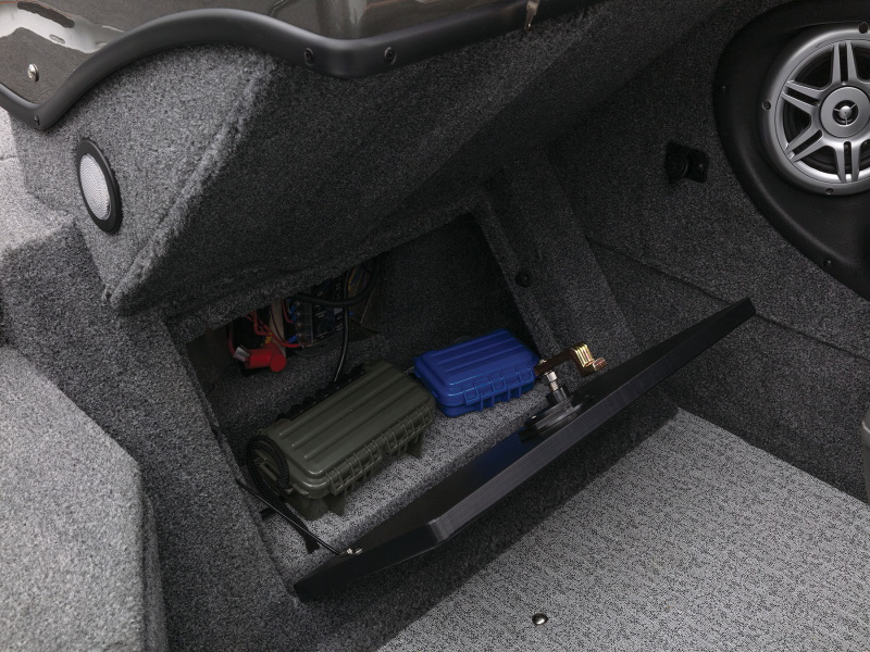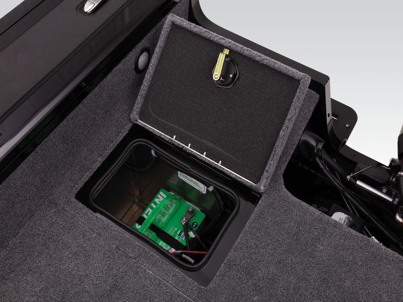 - In-floor center trolling battery storage compartment for up to 3 batteries
