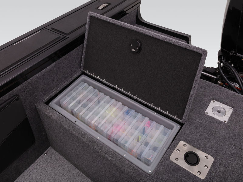 - Aft deck starboard rotomolded storage for fourteen 3700-series tackle boxes