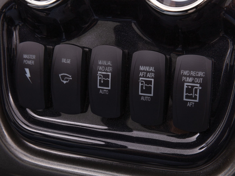 - Bow panel w/trolling motor receptacle, 12V outlet, bow aerator switch & trim switch