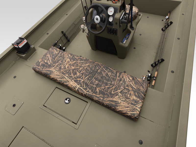 - 9-gal. (34.07 L) molded & aerated livewell at front of center console w/padded cushion-top seat & padded backrest