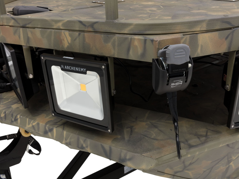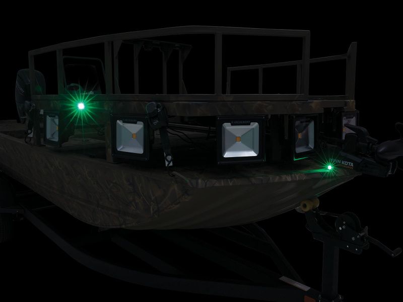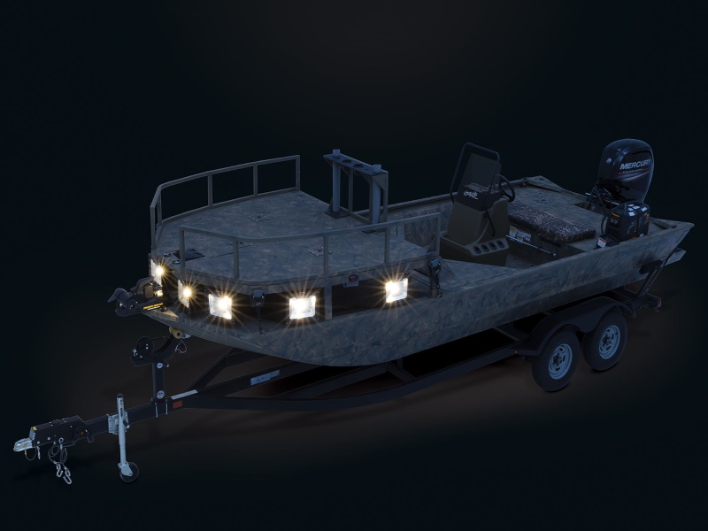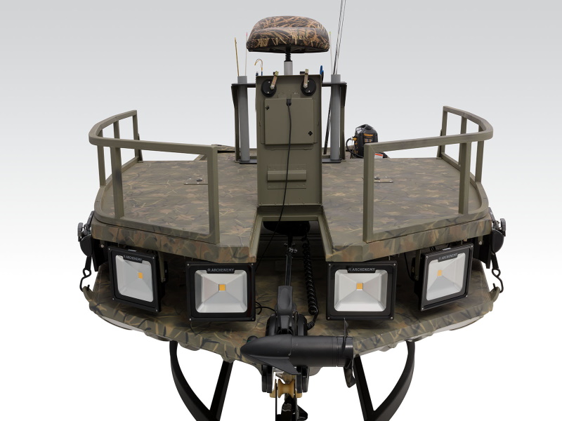 - Eight 50W, 5,000-lumen 120V A/C LED lights around the front deck to navigate & illuminate your prey