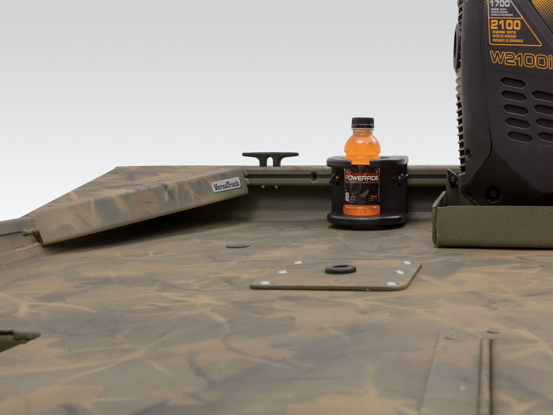 - Rail-mounted utility tray w/arrow, tool & drink holders