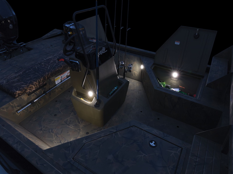 - Eight 50W, 5,000-lumen 120V A/C LED lights around the front deck to navigate & illuminate your prey