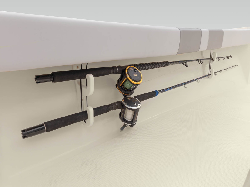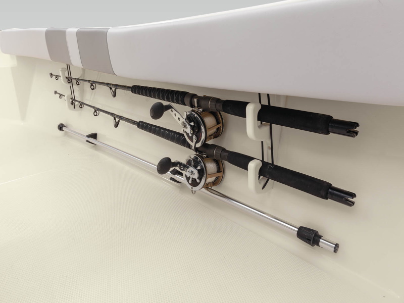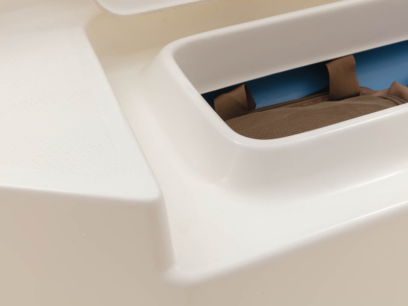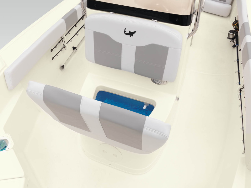 - Port & starboard forward seats w/64-qt. (60.57 L) insulated storage below w/gravity overboard drainage