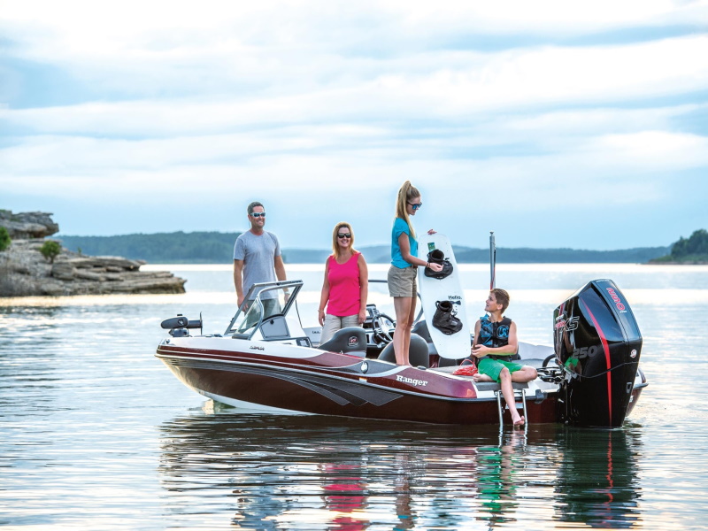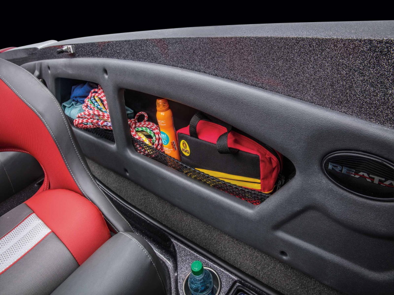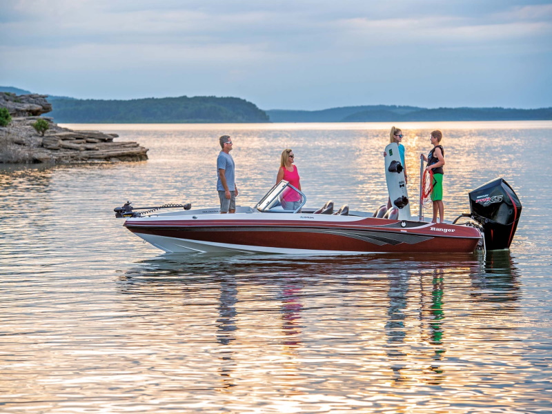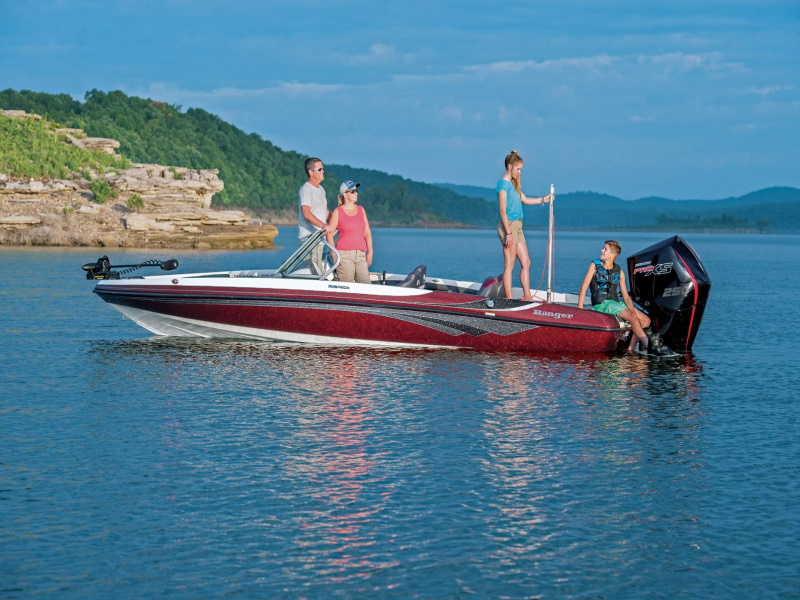 The Ranger® 212LS is a comfortable cruiser with an aggressive, sporty side. A 250-horsepower rating melds with a nimble, streamlined hull and supple, handcrafted seating that delivers comfort at all speeds. The layout boasts capability for fishing, chilling and skiing. The well-appointed interior is highlighted by rich marine-grade carpet, handmade seating and a wealth of storage for every undertaking. A custom ski box resides in the floor just aft of the 8-foot rod box, and is flanked by an insulated in-deck cooler and three massive storages. At the stern, a retractable stainless-steel boarding ladder, rope stowage, livewell and twin dry boxes make things convenient and accessible. Underneath all of this are legendary Ranger construction protocols for unparalleled peace of mind. Whatever you’re up to, the Ranger Reata 212LS is equipped to make memories every time you hit the water.
