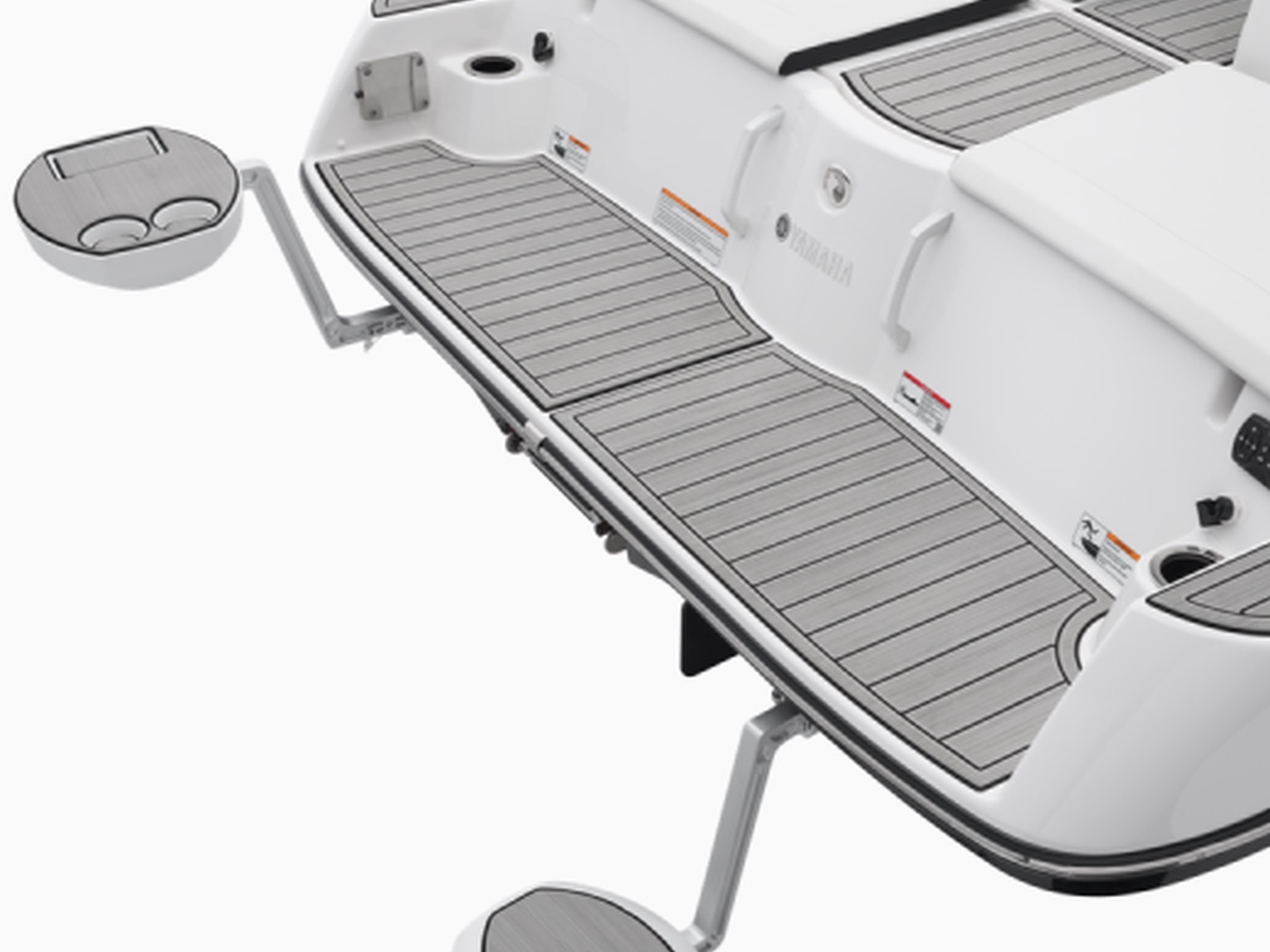 Yamaha's innovative swim-up seating transforms the stern into a comfortable lounge area that includes beverage mounts, plush backrest cushions, and easy access to the patented jet pump cleanout ports.