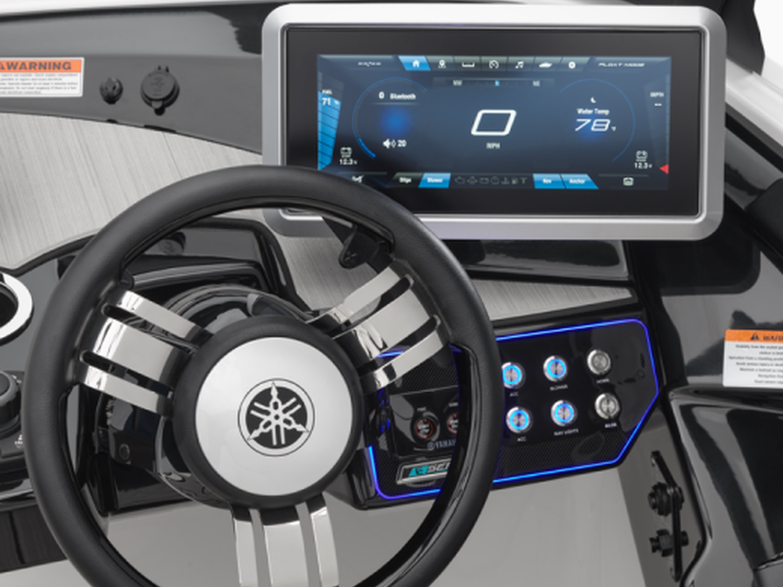 Features a vibrant 12.3-inch multi-color Connext touchscreen, centralizing entertainment functions, GPS mapping, and vital boat system data.