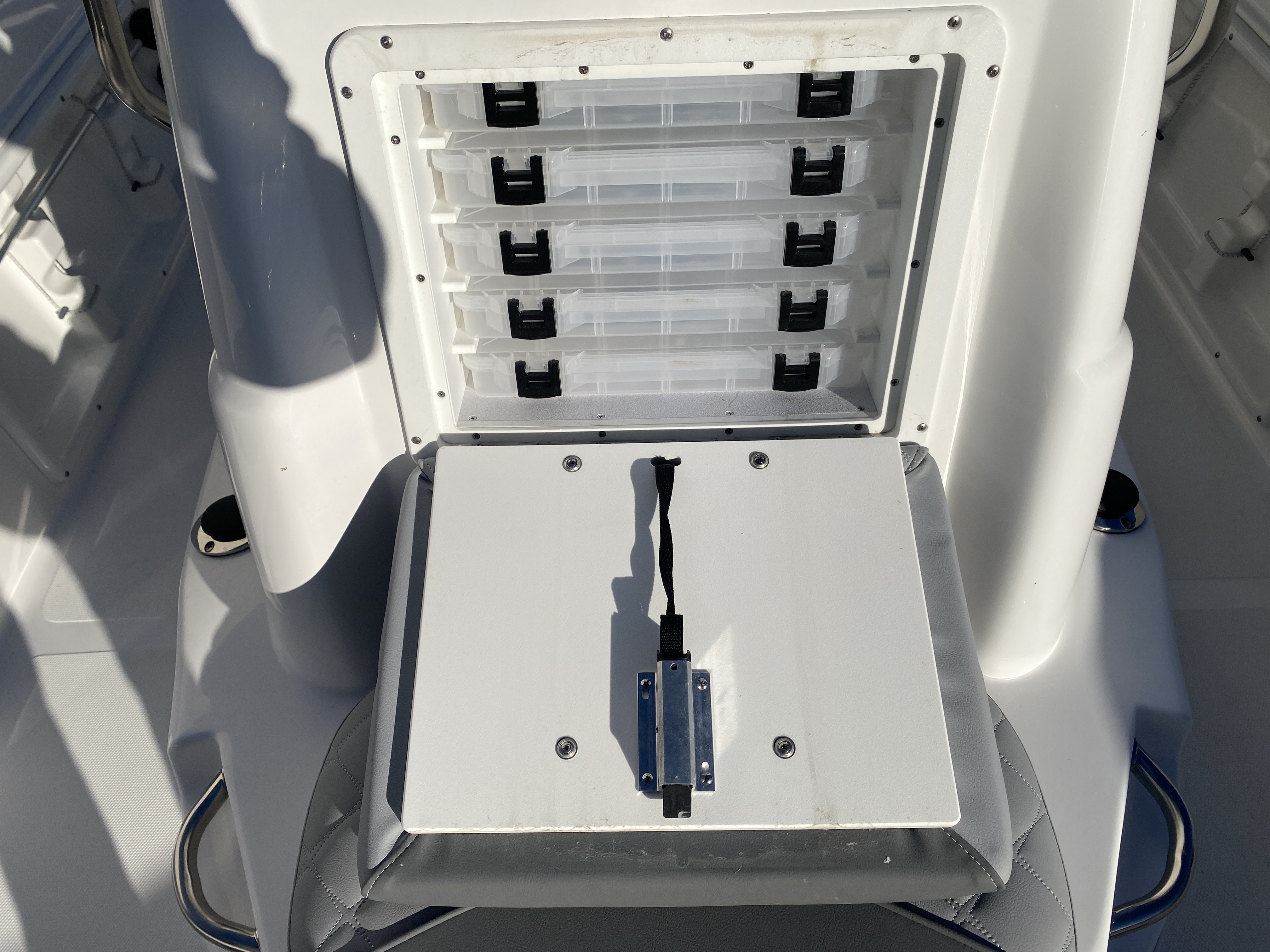 - 3-Across Floding Aft Jump Seats w/ Cast Net under Port Seat, Livewell Under Center Jump Seat, & Battery Storage under Starboard Seat