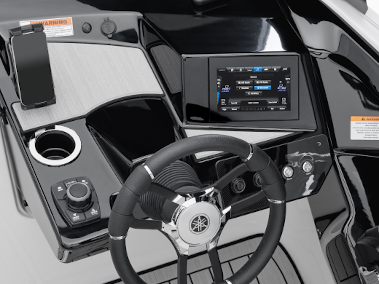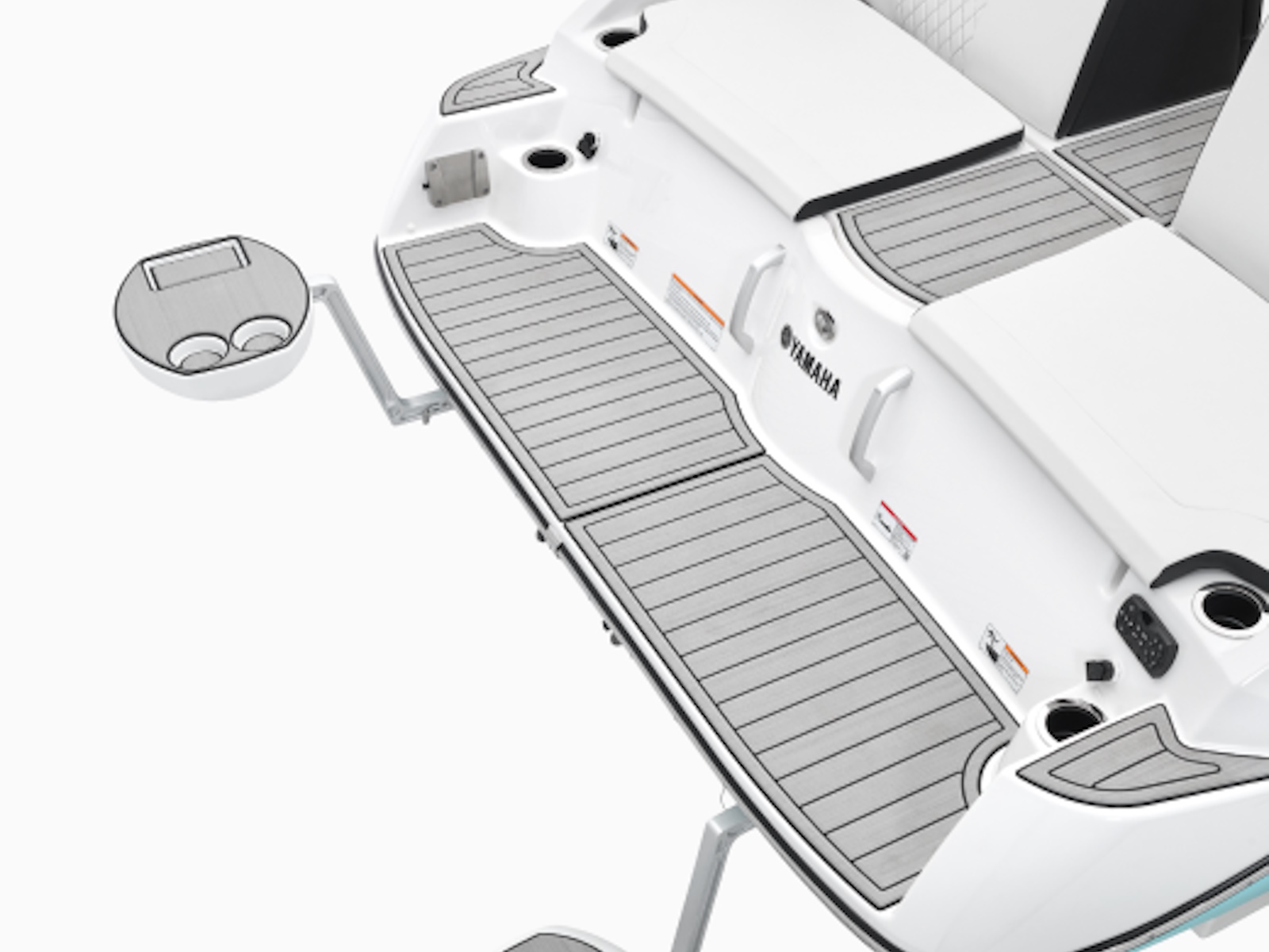 - Yamaha's innovative swim-up seating transforms the stern into a comfortable lounge area that includes beverage mounts, plush backrest cushions, and easy access to the patented jet pump cleanout ports.